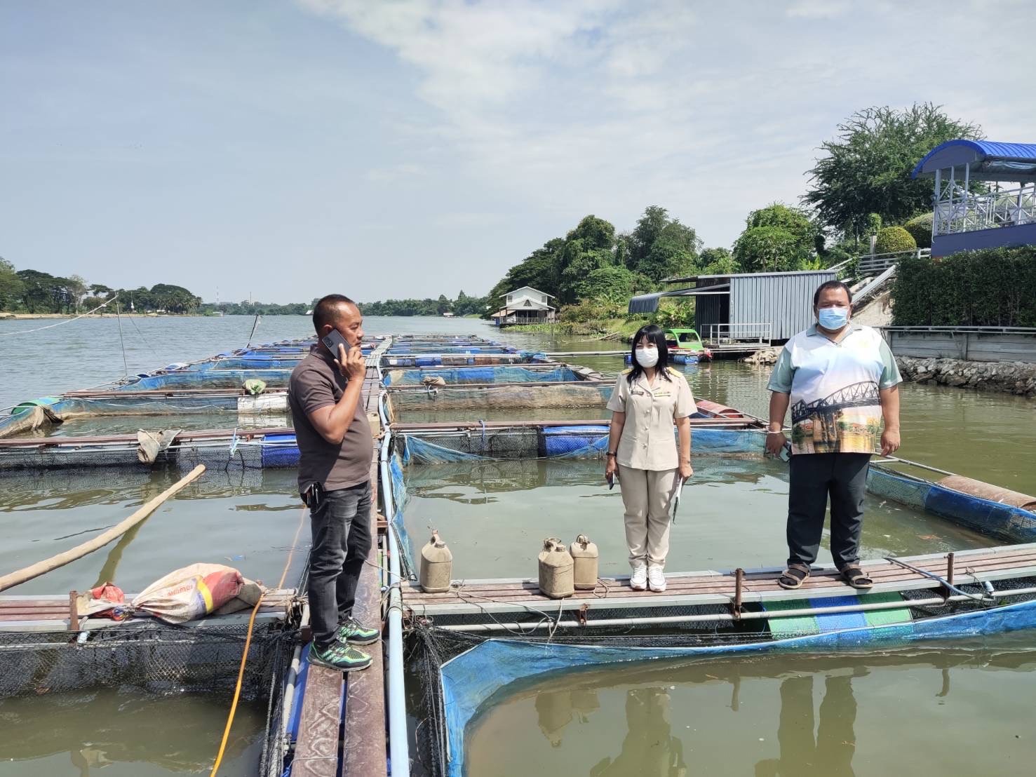 สำนักงานประมงจังหวัดกาญจนบุรี โดยนายวรรณนัฑ หิรัญชุฬหะ ประมงจังหวัดกาญจนบุรี ได้มอบหมายนายนฤนาท เผือกจีน ประมงอำเภอสังขละบุรีรับผิดชอบอำเภอเมืองกาญจนบุรี และนายอภิศักดิ์ สงวนธรรม นักวิชาการประมง ได้เข้าดำเนินการตรวจสอบเกษตรกรที่ขอช่วยเหลือภัยน้ำท่วมในพื้นที่ ตำบลเกาะสำโรง จำนวน  14 ราย ซึ่งมีเกษตรกรไม่ผ่านคุณสมบัติ 3 ราย