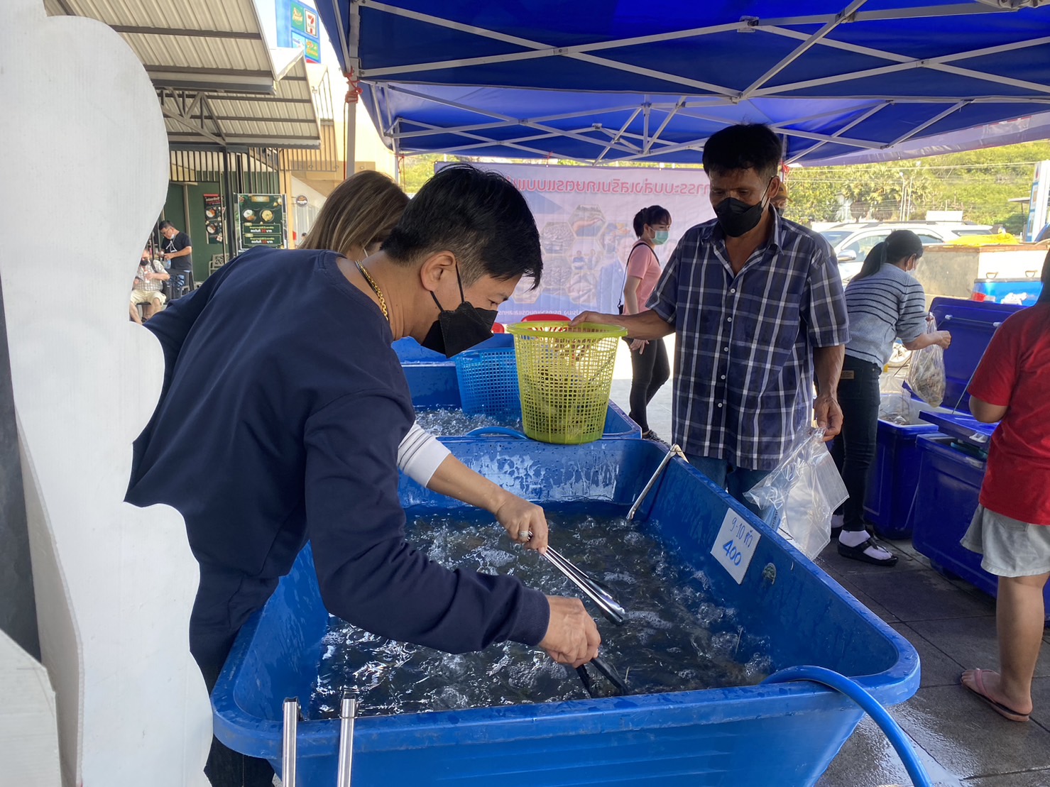 ตามที่ สำนักงานประมงจังหวัดกาญจนบุรี โดยนายวรรณนัฑ หิรัญชุฬหะ ประมงจังหวัดกาญจนบุรี ร่วมกับแปลงใหญ่กุ้งก้ามกรามอำเภอพนมทวน จัดจำหน่าย กุ้งก้ามกราม กุ้งขาวแวนนาไม จากเกษตรกรผู้เลี้ยงแปลงใหญ่สัตว์น้ำ และจากร้าน FISHERMANSHOP @ KANCHANABURI  ที่มีมาตรการสนับสนุนให้เกษตรกร นำผลผลิตมาจำหน่ายเพื่อสร้างรายได้และเพิ่มช่องทางการจำหน่ายได้อย่างหลากหลายโดยขายตั้งแต่วันที่ 30 ธันวาคม2565- 1 มกราคม 2566 ณ ปั้ม แก้วมณีกาญจน์ปิโตรเลี่ยม (ปตท.บายพาส กาญจนบุรี ) มีผลการจำหน่ายรวม 750 กิโลกรัม ราคากิโลกรัมละ 400 บาท รวมเป็นรายได้ 300,000 บาท
