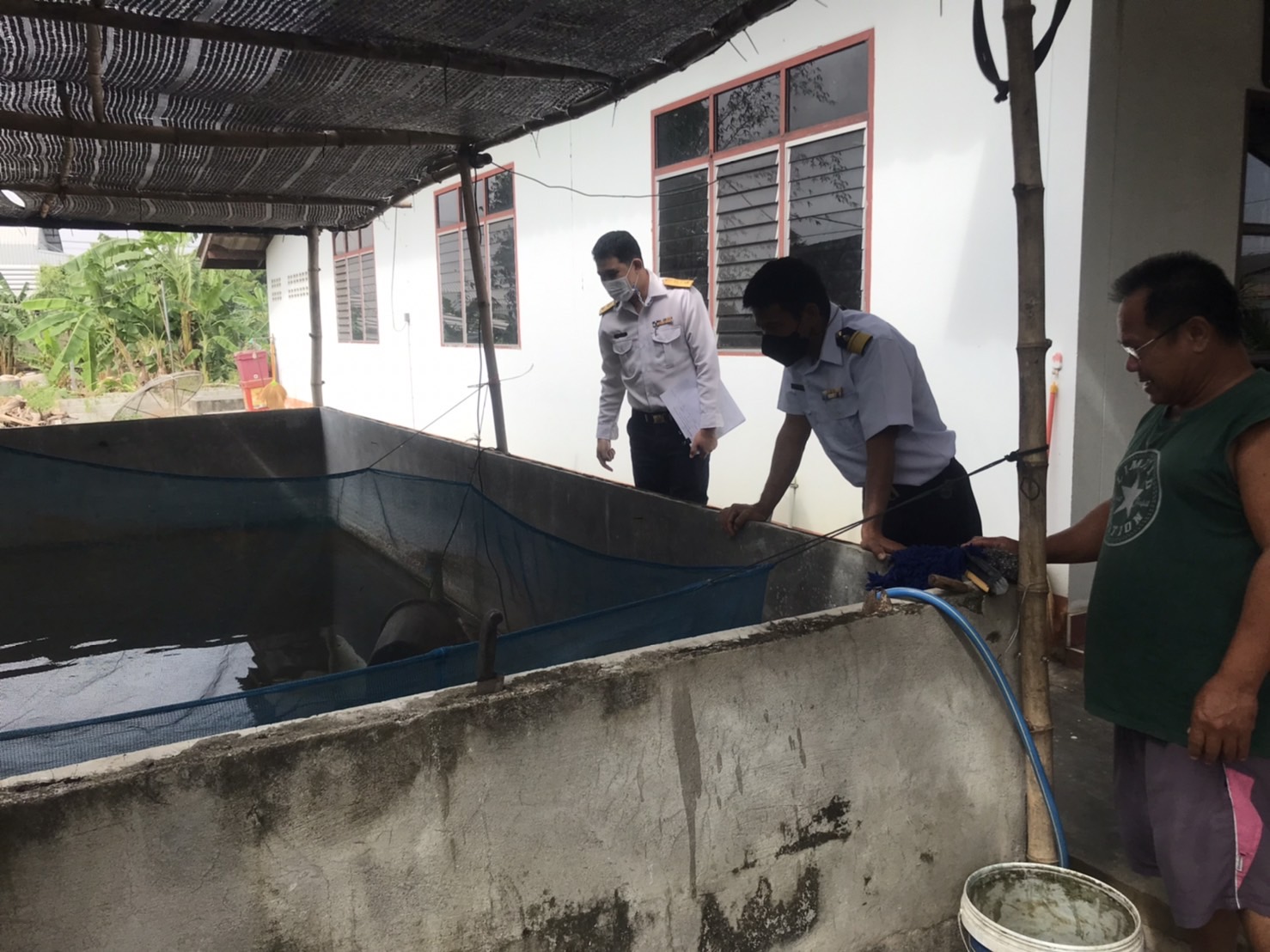 วันที่ ๙ มกราคม ๒๕๖๖ นายวรรณนัฑ หิรัญชุฬหะ ประมงจังหวัดกาญจนบุรี มอบหมายให้นายเติมศักดิ์ คงสำราญ นักวิชาการประมงชำนาญการ นายโชคชัย วงษ์อู่ทอง นักวิชาการประมงปฏิบัติการ และนารัชนีกร รัตนา ประมงอำเภอไทรโยค ลงพื้นที่ติดตามเกษตรกรที่เข้าร่วมโครงการพัฒนาเกษตรอินทรีย์ เพื่อติดตามผลการดำเนินงานของเกษตรกรตามกิจกรรมพัฒนาเกษตรอินทรีย์ด้านการเพาะเลี้ยงสัตว์น้ำจืดในพื้นที่อำเภอไทรโยค อำเภอเมืองกาญจนบุรี จำนวน ๓ ราย