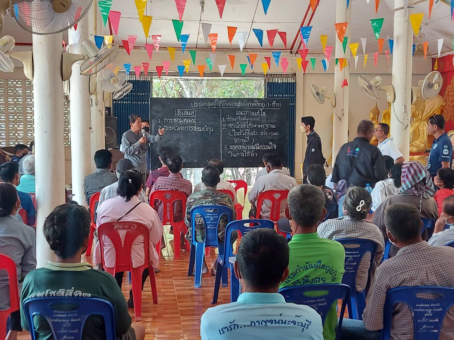 เมื่อวันที่ 17 มกราคม 2566   เวลา 09.30 น. สำนักงานประมงจังหวัดกาญจนบุรีโดย นายวรรนัฑ หิรัญชุฬหะ ประมงจังหวัดกาญจนบุรี พร้อมด้วย นางสาวศิวพร ราชสุวรรณ ประมงอำเภอพนมทวน นายเติมศักดิ์ คงสำราญ นักวิชาการประมงชำนาญการ และนายโชคชัย วงษ์อู่ทอง นักวิชาการประมงปฏิบัติการ จัดการประชุมคณะทำงาน แก้ไขปัญหาการเลี้ยงกุ้งทะเลจังหวัดกาญจนบุรี ครั้งที่ 1/2566 ณ วัดโกช้าย ม. 8 ต.รางหวาย อ.พนมทวน จ.กาญจนบุรี เพื่อร่วมระดมความคิดเห็น หาแนวทางแก้ไขปัญหาที่สืบเนื่องจากการประชุมครั้งที่ 5/2565 กรณีการปิดคลองประปาเพื่อซ่อมแซมผนังคลอง ส่งน้ำ ประจำปีอันส่งผลให้ขาดน้ำในการ เพิ่มเติมเปลี่ยนถ่ายสำหรับบ่อเลี้ยงกุ้ง โดยได้เชิญหน่วยงานและบุคคลที่เกี่ยวข้องได้แก่ โครงการส่งน้ำและบำรุงรักษาเขื่อนแม่กลอง   โครงการส่งน้ำและบำรุงรักษาพนมทวน และกลุ่มผู้ใช้น้ำอำเภอท่าม่วง  อำเภอพนมทวน  อำเภอห้วยกระเจา ซึ่งประกอบด้วยกลุ่มผู้ปลูกข้าว  ผู้ปลูกอ้อย กลุ่มเกษตรทฤษฎีใหม่ กลุ่มผู้เลี้ยงปลา กลุ่มผู้เลี้ยงกุ้ง  ในพื้นที่อำเภอท่าม่วง  อำเภอพนมทวน และอำเภอห้วยกระเจา  เพื่อหาข้อสรุปในการวางแผนการจัดการน้ำในการทำการเกษตรต่างๆ  และการซ่อมบำรุงคลองส่งน้ำในเขตอำเภอพนมทวน ให้สามารถดำเนินการได้ตามแผนและส่งผลกระทบต่อเกษตรกรทุกกลุ่มให้น้อยที่สุด โดยที่ประชุมมีข้อสรุป ให้บริหารจัดการน้ำโดยคำนึงถึงประโยชน์อันจะเกิดขึ้นกับทุกฝ่าย และได้มอบหมายให้ประมงอำเภอพนมทวนสำรวจ แผนการใช้น้ำของฟาร์มเพาะเลี้ยงสัตว์น้ำในพื้นที่ แล้วส่งผลให้โครงการส่งน้ำและบำรุงรักษาเขื่อนแม่กลองเพื่อวางแผนบริหารจัดการทรัพยากรน้ำต่อไป