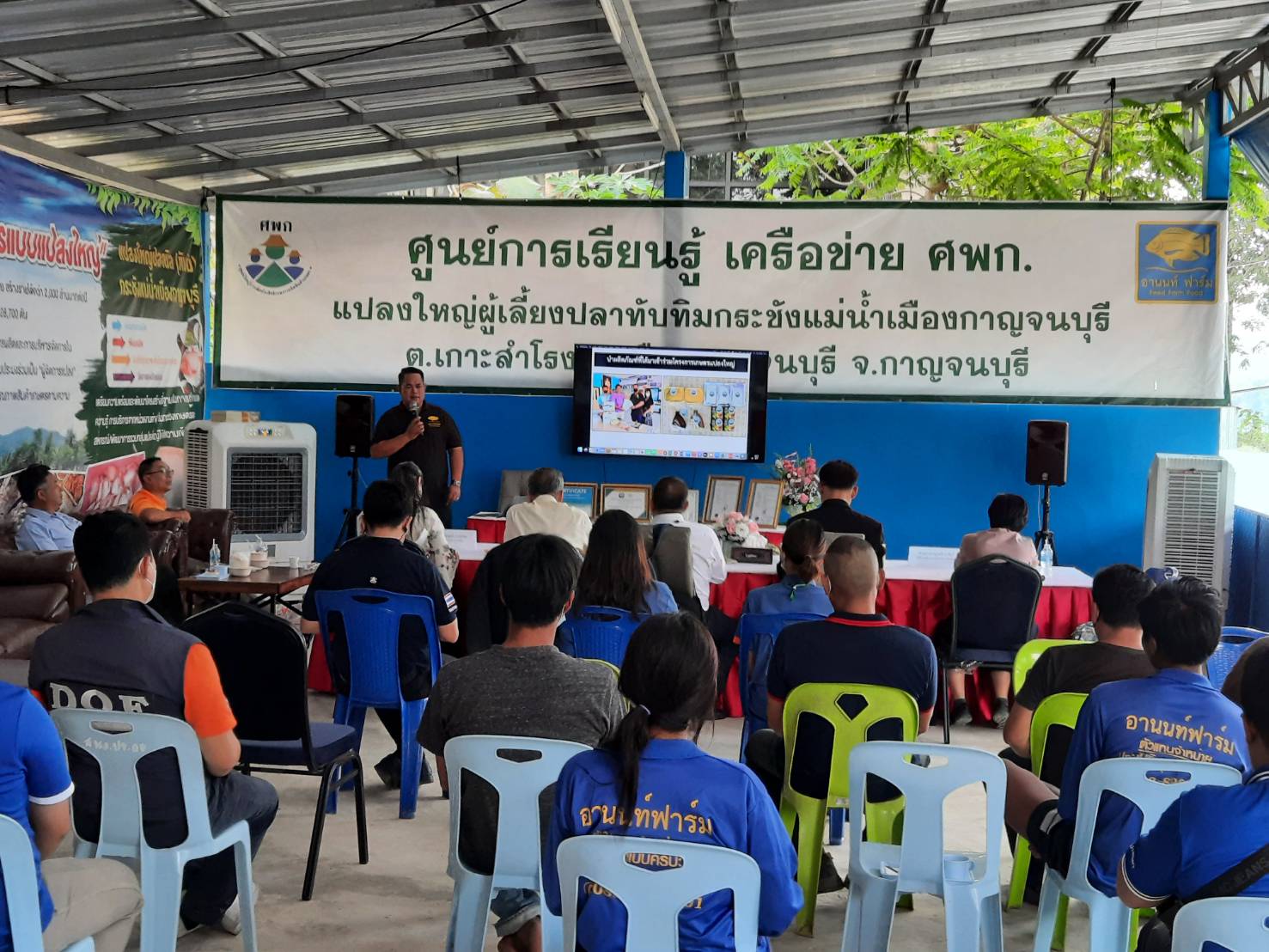 วันที่ 18 มกราคม  2566  สำนักงานประมงจังหวัดกาญจนบุรีโดยนายวรรณนัฑ หิรัญชุฬหะ ประมงจังหวัดกาญจนบุรี พร้อมด้วยเจ้าหน้าที่สำนักงานประมงจังหวัดกาญจนบุรี ร่วมต้อนรับคณะทำงานตัดสินเกษตรกรดีเด่นระดับประเทศ โดยมีนายธเนศ  พุ่มทอง ผู้อำนวยการกองวิจัยและพัฒนาการเพาะเลี้ยงสัตว์น้ำจืดเป็นประธานในการคัดเลือกและตัดสินเกษตรกรที่จะได้รับรางวัลเกษตรกรดีเด่นด้านอาชีพการประมงระดับประเทศต่อไป
