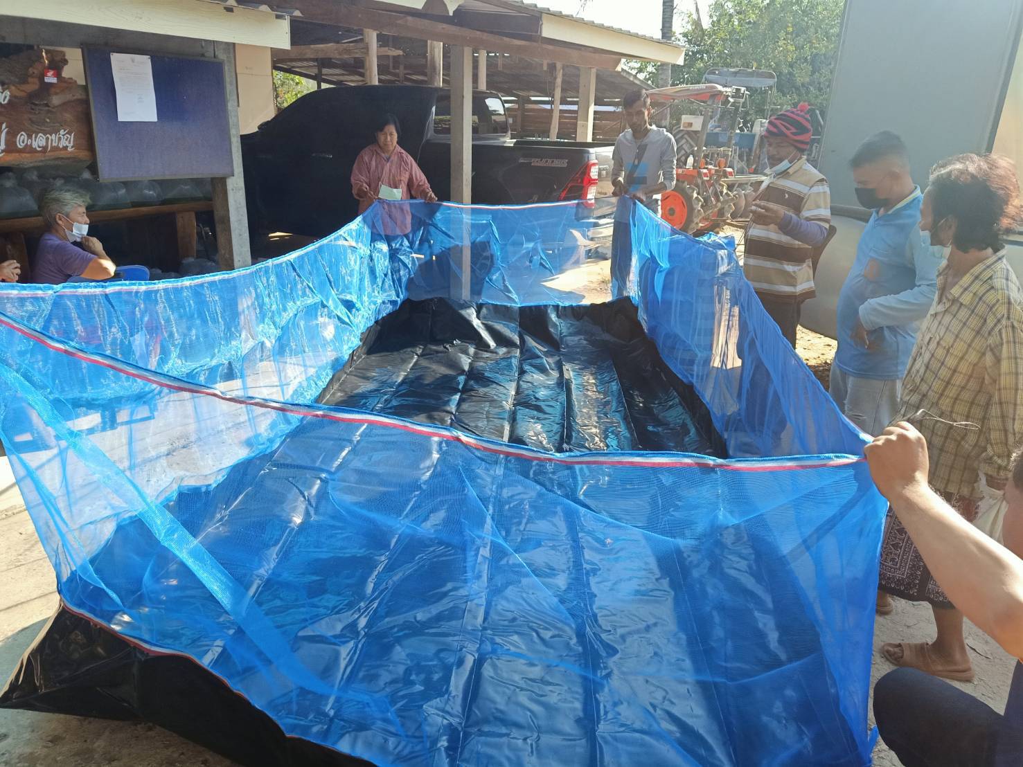 #ในการมอบปัจจัยการผลิตครั้งนี้ได้ให้คำแนะนำในการติดตั้งกระชังบกที่ถูกวิธี/การใส่น้ำ/การปล่อยปลาลงเลี้ยง และการให้อาหารปลา/การจดบันทึกตลอดจนการติดตามประเมินผลของเจ้าหน้าที่ต่อไป#