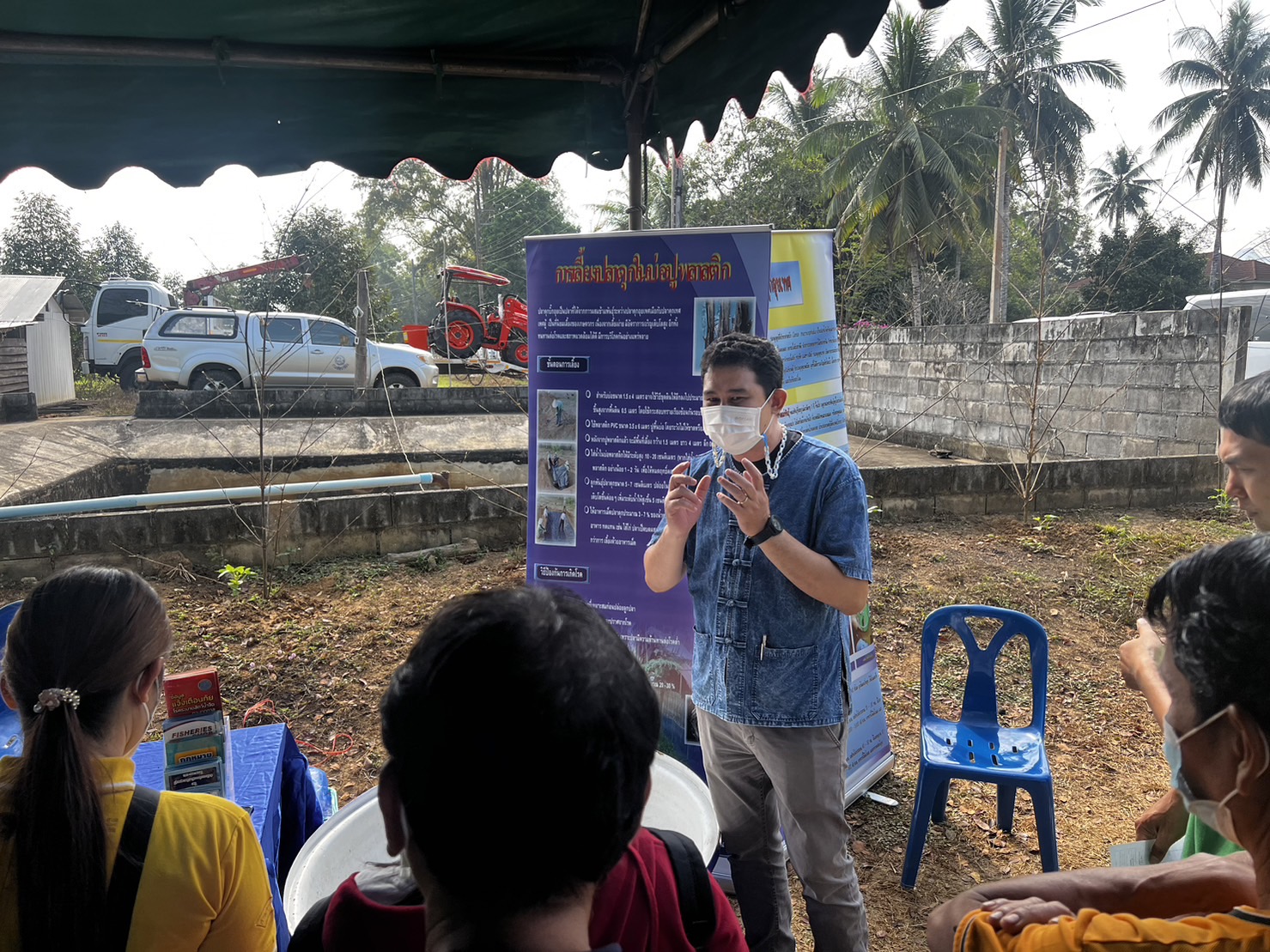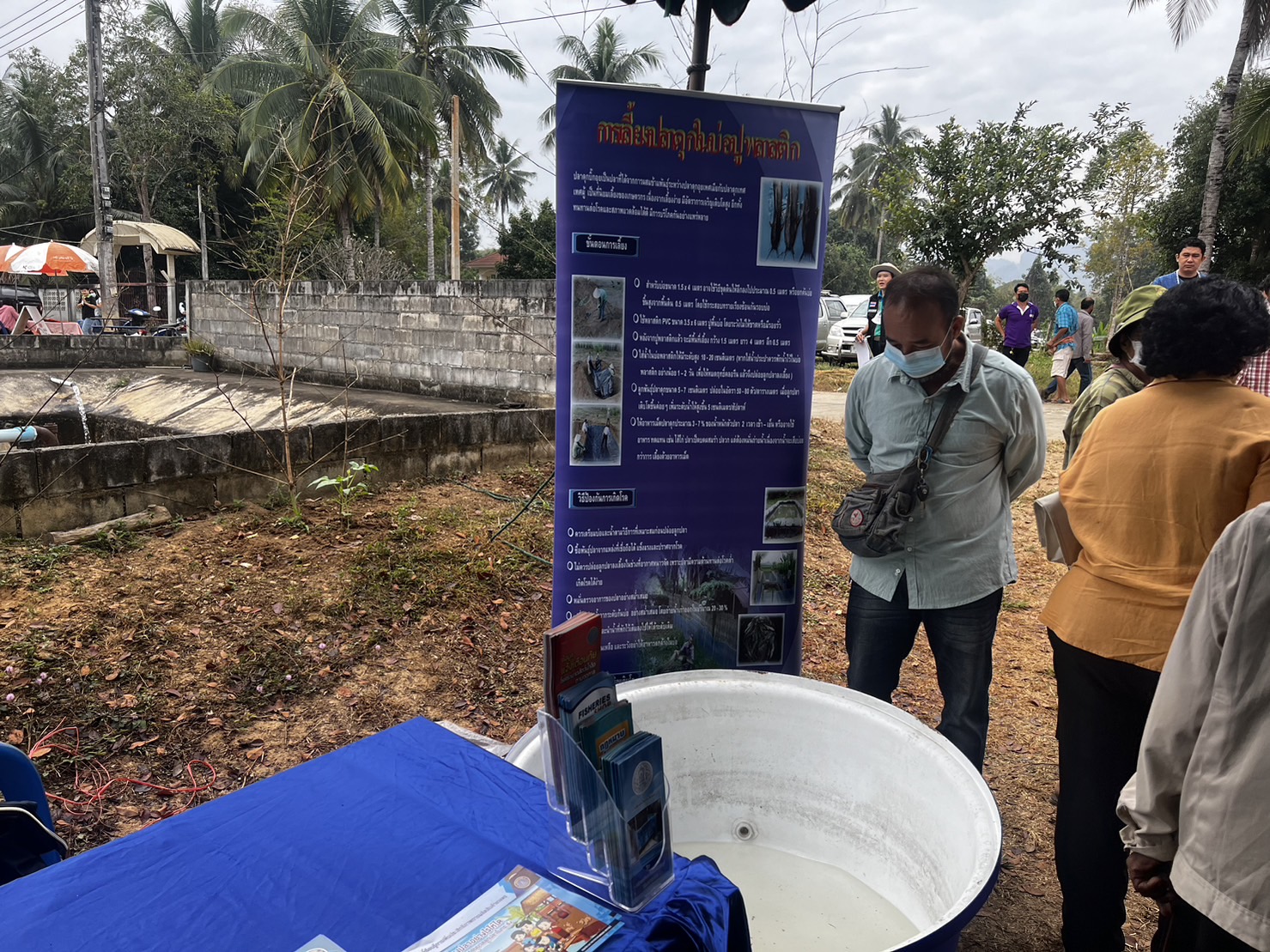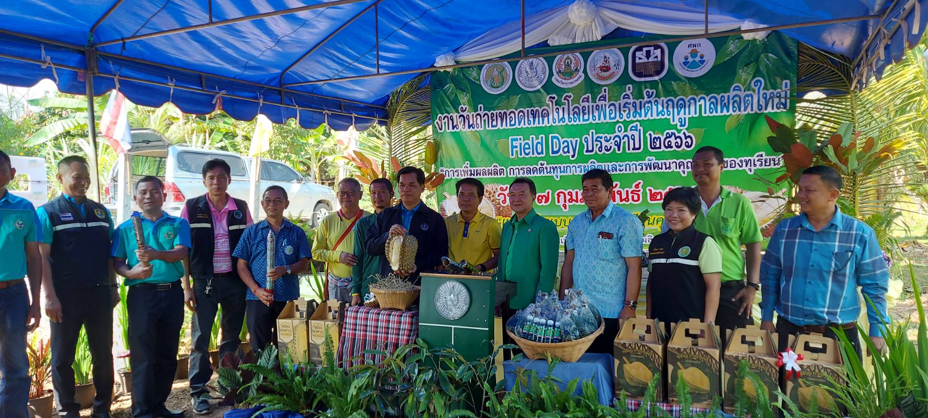 วันที่ 7 กุมภาพันธ์  2566 นายวรรณนัฑ หิรัญชุฬหะ ประมงจังหวัดกาญจนบุรี พร้อมด้วยนายนฤนาท เผือกจีน ประมงอำเภอสังขละบุรี นายเติมศักดิ์ คงสำราญ หัวหน้ากลุ่มพัฒนาและส่งเสริมอาชีพการประมง นายกรกวี ศรีอินทร์ นักวิชาการประมง นายสุรสิทธิ์ กุลชาติ นักวิชาการประมง ร่วมจัดฐานเรียนรู้ด้านการเพาะเลี้ยงสัตว์น้ำ ในการจัดงานวันถ่ายทอดเทคโนโลยีเพื่อเริ่มต้นฤดูกาลผลิตใหม่ (Field Day) ปี 2566 ณ แปลงต้นแบบการผลิตทุเรียนคุณภาพ  อำเภอทองผาภูมิ จังหวัดกาญจนบุรี ซึ่งเป็นแปลงของสมาชิก ศูนย์เรียนรู้การเพิ่มประสิทธิภาพ การผลิตสินค้าเกษตร อำเภอเผาภูมิ จังหวัดกาญจนบุรี เป็นแปลงต้นแบบการผลิตทุเรียนคุณภาพ โดยมีนายประสาน ปานคง เกษตรจังหวัดกาญจนบุรี เป็นประธานในพิธี พร้อมด้วยหัวหน้าส่วนสังกัดกระทรวงเกษตรและสหกรณ์ ร่วมกิจกรรมดังกล่าว