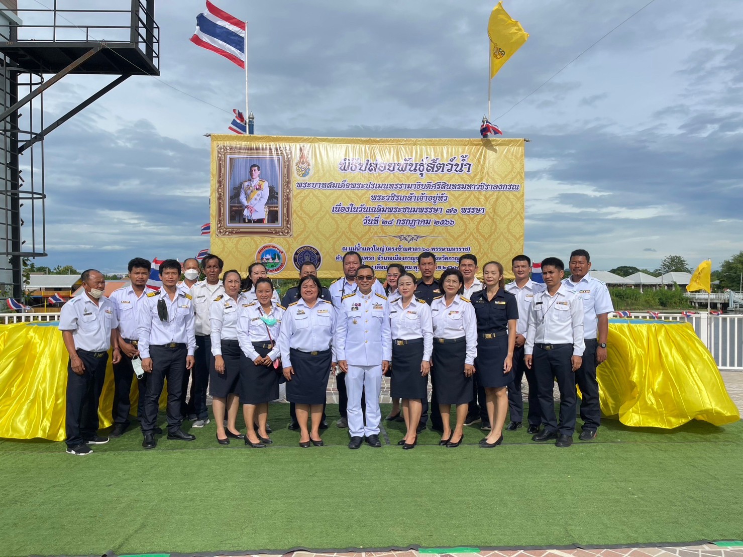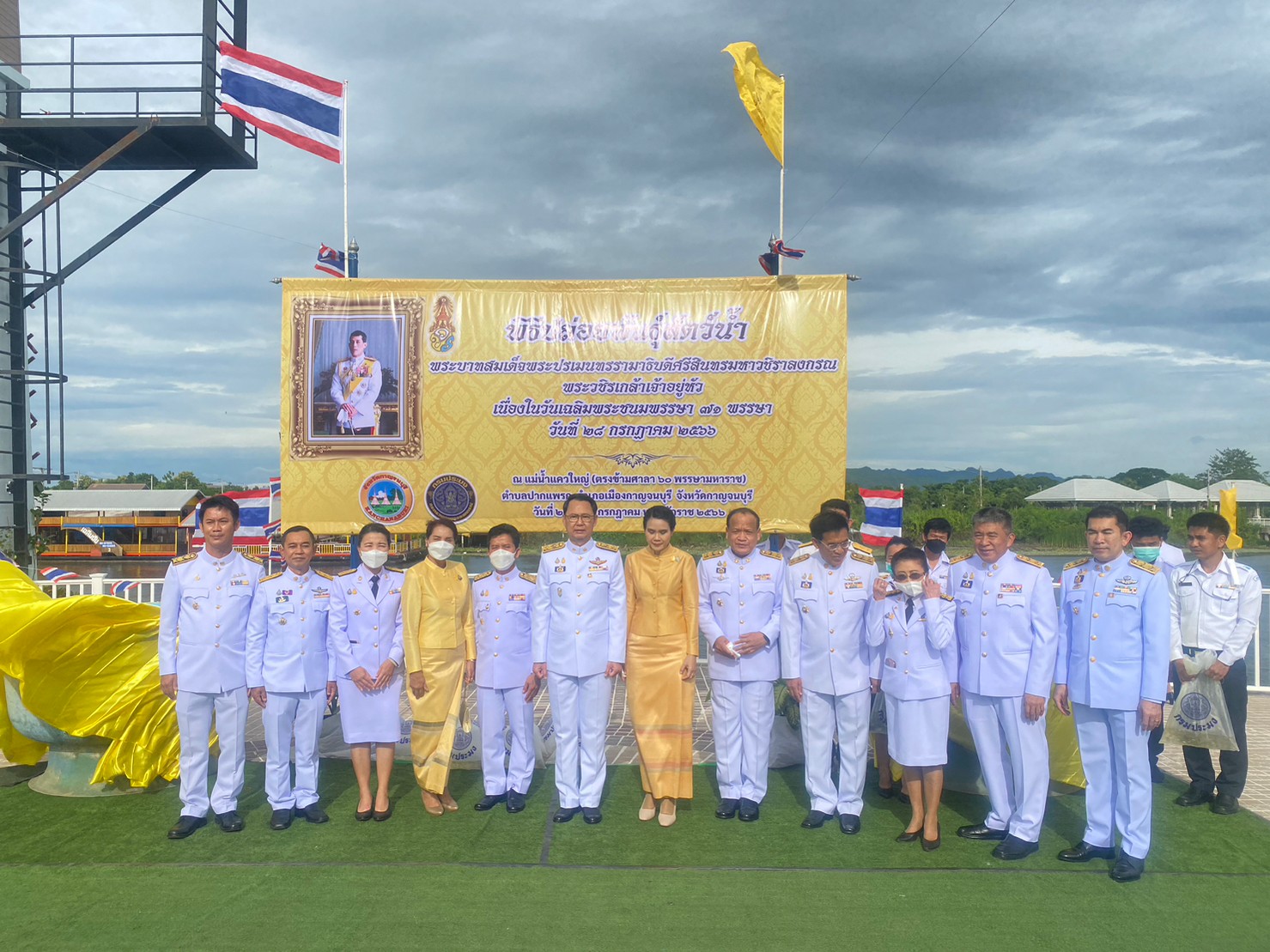วันที่ 28 กรกฏาคม 2566  นายวรรณนัฑ หิรัญชุฬหะ ประมงจังหวัดกาญจนบุรี พร้อมด้วยเจ้าหน้าที่สังกัดกรมประมงในจังหวัดกาญจนบุรี ร่วมทำบุญตักบาตรและจัดพิธีปล่อยพันธุ์สัตว์น้ำ เพื่อถวายเป็นพระราชกุศล เนื่องในวันเฉลิมพระชนมพรรษาพระบาทสมเด็จพระปรเมนทรรามาธิบดีศรีสินทรมหาวชิราลงกรณ พระวชิรเกล้าเจ้าอยู่หัว  ณ แม่น้ำแควใหญ่ (ตรงข้ามศาลา 60 พรรษามหาราช) อ.เมืองกาญจนบุรี จังหวัดกาญจนบุรี โดยมีร้อยโททศพล ไชยโกมินทร์ ผู้ว่าราชการจังหวัดกาญจนบุรี เป็นประธาน  มีหัวหน้าส่วนราชการ หัวหน้าหน่วยงานและเจ้าหน้าที่ในจังหวัดกาญจนบุรี เข้าร่วมพิธีเป็นจำนวนมาก ได้รับการสนับสนุนพันธุ์ปลาจากศูนย์วิจัยและพัฒนาประมงน้ำจืดกาญจนบุรี