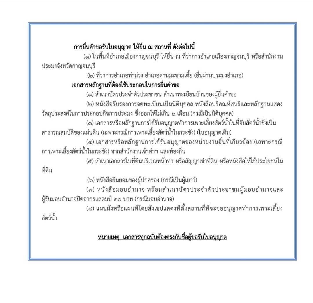 สงวนลิขสิทธิ์ พ.ศ.2569 สำนักงานประมงจังหวัดกาญจนบุรี