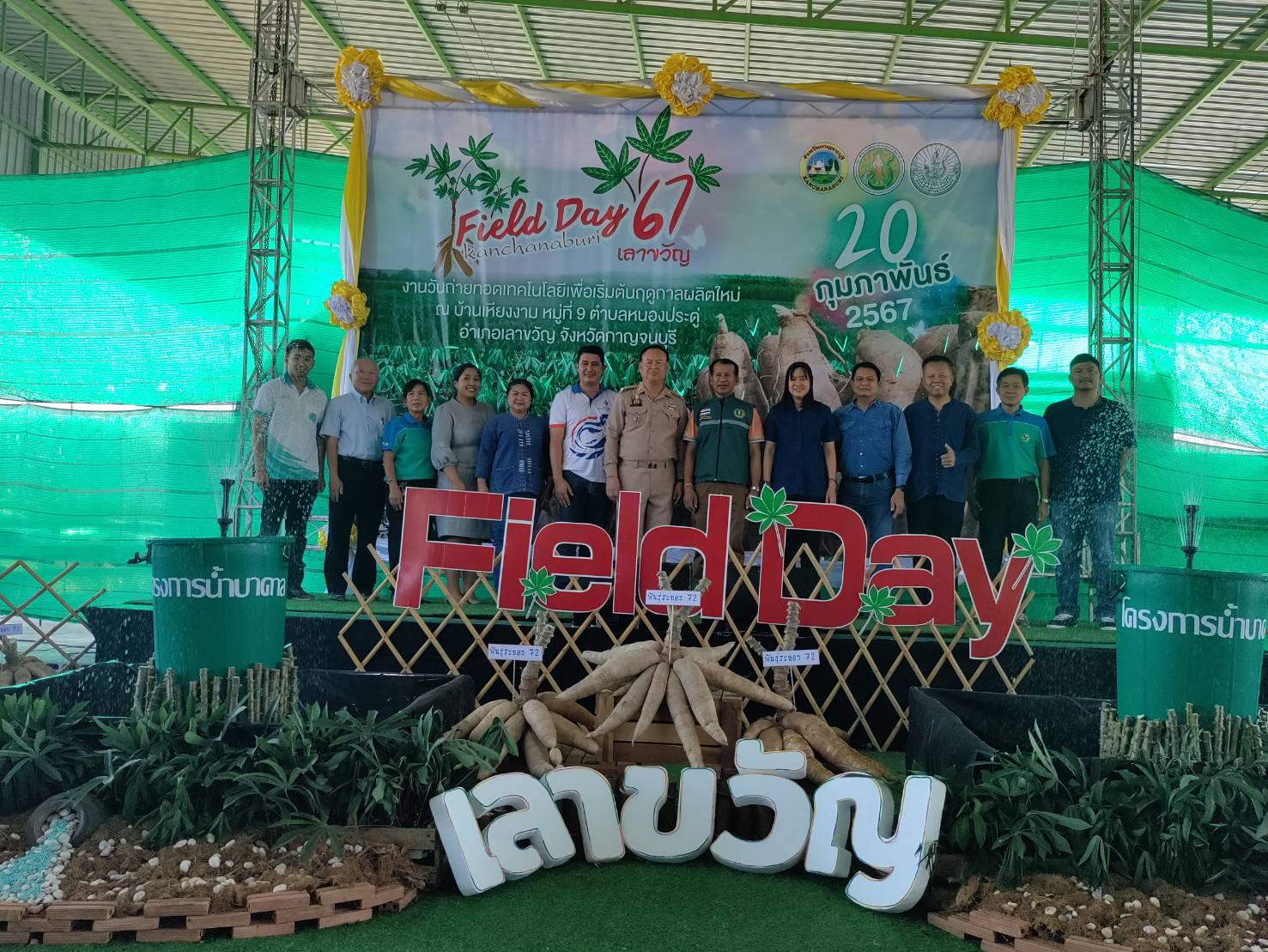 เมื่อวันที่ 20 กุมภาพันธ์ 2567 สำนักงานประมงจังหวัดกาญจนบุรี  โดยนางสาวธิดาวรรณ  โพธิ์เพ็ชร หัวหน้ากลุ่มบริหารจัดการด้านการประมง รักษาราชการแทน ประมงจังหวัดกาญจนบุรี มอบหมายให้ นายเติมศักดิ์  คงสำราญ หัวหน้ากลุ่มพัฒนาและส่งเสริมอาชีพการประมง และนายจักรกฤษ์  ธรรมฤทธิ์ นักวิชาการประมง เข้าร่วมงานวันถ่ายทอดเทคโนโลยีเพื่อเริ่มต้นฤดูกาลผลิตใหม่ (Field Day) ประจำปีงบประมาณ พ.ศ. 2567 โดยมีวัตถุประสงค์เพื่อเป็นการกระตุ้นให้เกษตรกรเริ่มต้นการผลิตในปีการเพาะปลูกใหม่ โดยใช้เทคโนโลยีและภูมิปัญญาที่เหมาะสมกับพื้นที่ การบริหารจัดการน้ำด้วยเกษตรอัจฉริยะ ณ แปลงใหญ่มันสำปะหลัง บ้านเหียงงาม หทู่ที่ 9 ตำบลหนองประดู่ อำเภอเลาขวัญ จังหวัดกาญจนบุรี โดยมีนายวีระศักดิ์  สุขทอง เกษตรจังหวัดกาญจนบุรี เป็นประธานในพิธีฯ