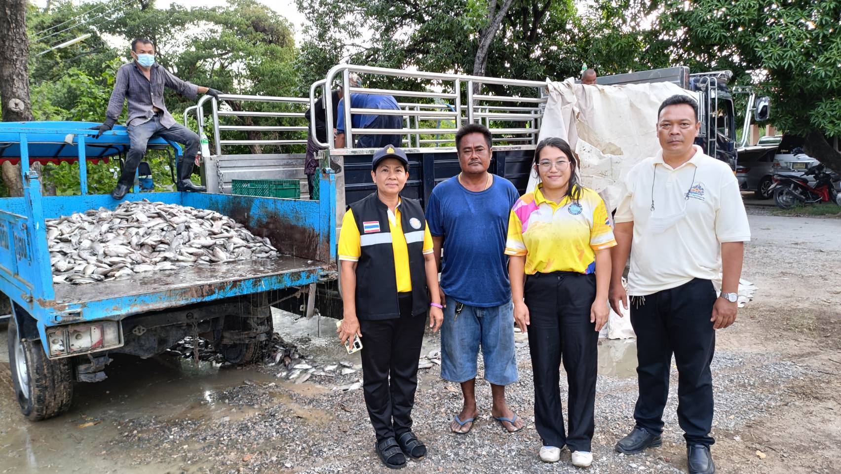 นางสาวธิดาวรรณ โพธิ์เพ็ชร หัวหน้ากลุ่มบริหารจัดการด้านการประมง ติดตามการส่งมอบปลาหมอคางดำจากจังหวัดสมุทรสงครามให้กับสถานีพัฒนาที่ดินจังหวัดกาญจนบุรี