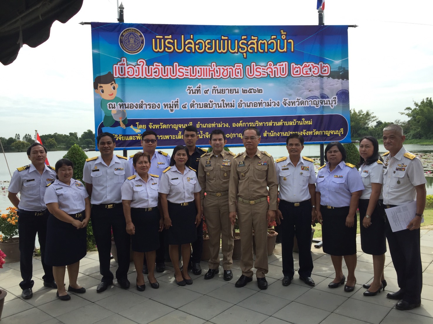 จังหวัดกาญจนบุรี ได้กำหนดจัดพิธีปล่อยพันธุ์สัตว์น้ำเนื่องในวันประมงแห่งชาติ ในวันจันทร์ที่ 9  กันยายน 2562 ณ หนองสำรอง ตำบลบ้านใหม่ อำเภอท่าม่วง จังหวัดกาญจนบุรี โดยความร่วมมือระหว่างจังหวัดกาญจนบุรี, อำเภอท่าม่วง, องค์การบริหารส่วนตำบลบ้านใหม่, ศูนย์วิจัยและพัฒนาสัตว์น้ำจืดเขต 10 (กาญจนบุรี) ชาวตำบลบ้านใหม่ และสำนักงานประมงจังหวัดกาญจนบุรี