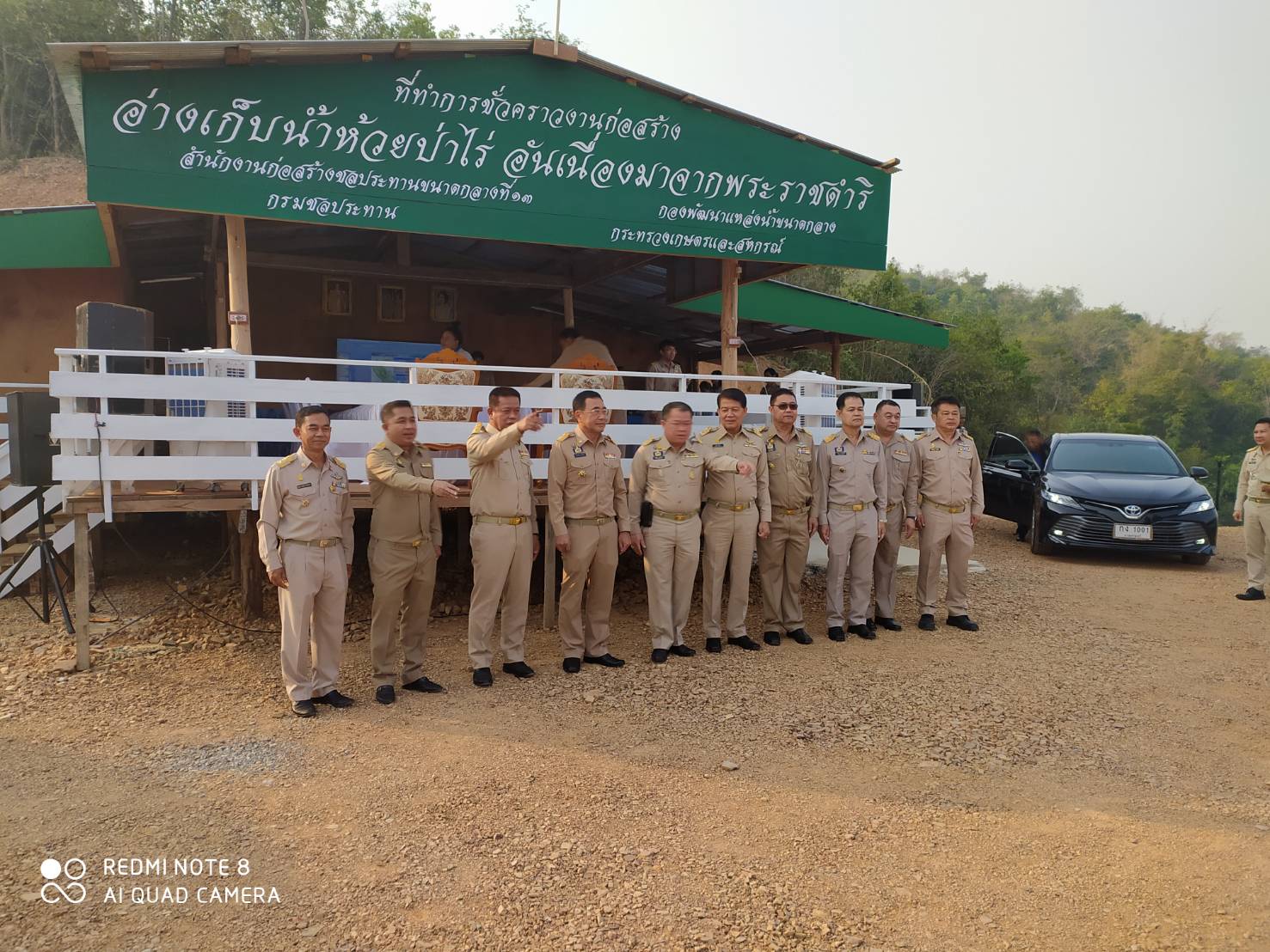 พระราชดำริพื้นที่ภาคกลาง ณ ที่ทำการชั่วคราวงานก่อสร้าง อ่างเก็บน้ำห้วยป่าไร่อันเนื่องมาจากพระราชดำริ ตำบลหนองปรือ อำเภอหนองปรือ จังหวัดกาญจนบุรี