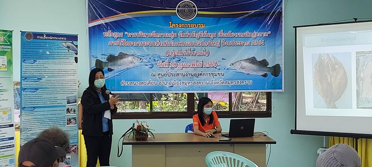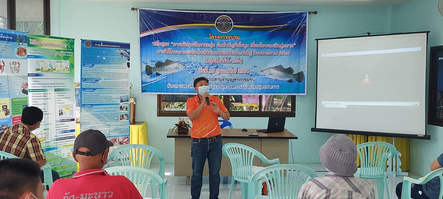 วันที่ 18 กุมภาพันธ์ 2564 สำนักงานประมงจังหวัดสมุทรสงคราม ดำเนินการจัดอบรมเกษตรกรผู้เพาะเลี้ยงสัตว์น้ำกลุ่มชายฝั่ง ประจำปีงบปมาณ 2564 ณ ตำบลบางตะเคียน อำเภอเมือง จังหวัดสมุทรสงคราม