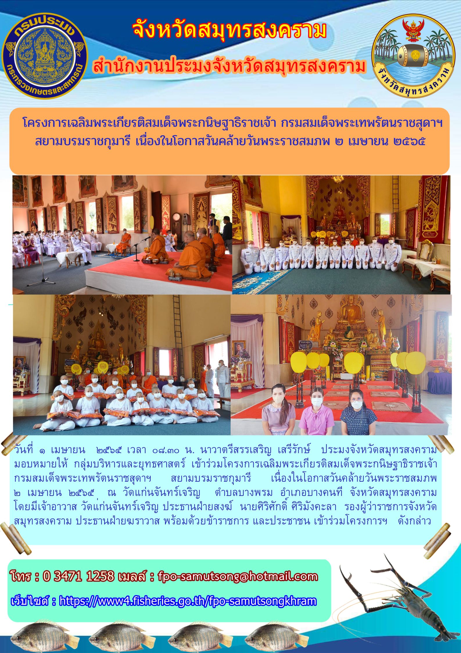 โครงการเฉลิมพระเกียรติสมเด็จพระกนิษฐาธิราชเจ้า กรมสมเด็จพระเทพรัตนราชสุดา สยามบรมราชกุมารี เนื่องในโอกาสวันคล้ายวันพระราชสมภพ ๒ เมษายน ๒๕๖๕..คลิก
