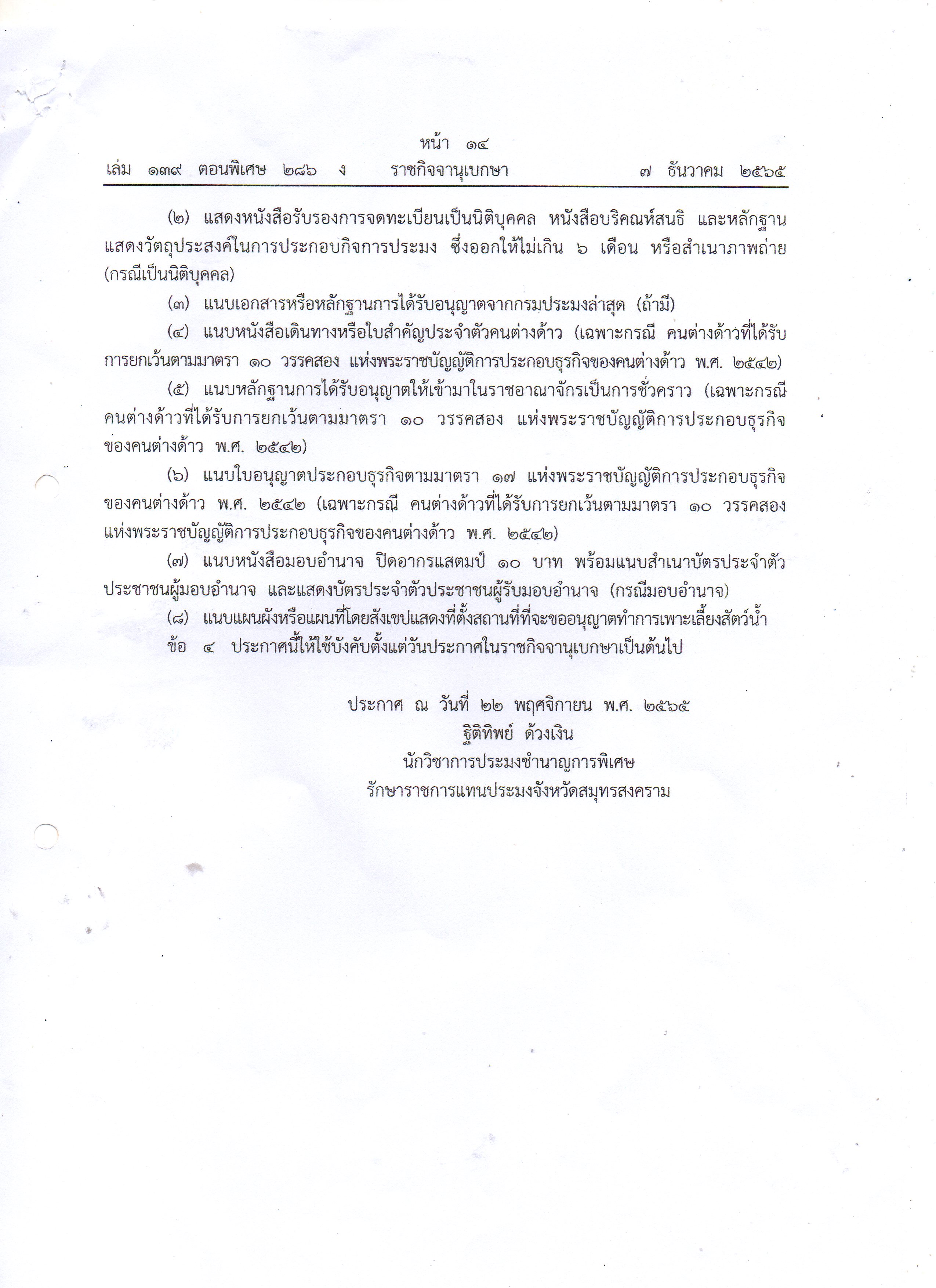ประกาศสำนักงานประมงจังหวัดสมุทรสงคราม เรื่อง กำหนดห้องเวลาให้ผู้ประสงค์จะทำการเพาะเลี้ยงสัตว์น้ำในที่จับสัตว์น้ำซึ่งเป็นสาธารณสมบัติของแผ่นดิน ประเภท การเพาะเลี้ยงหอยทะเล มายื่นคำขอรับใบอนุญาต..คลิก