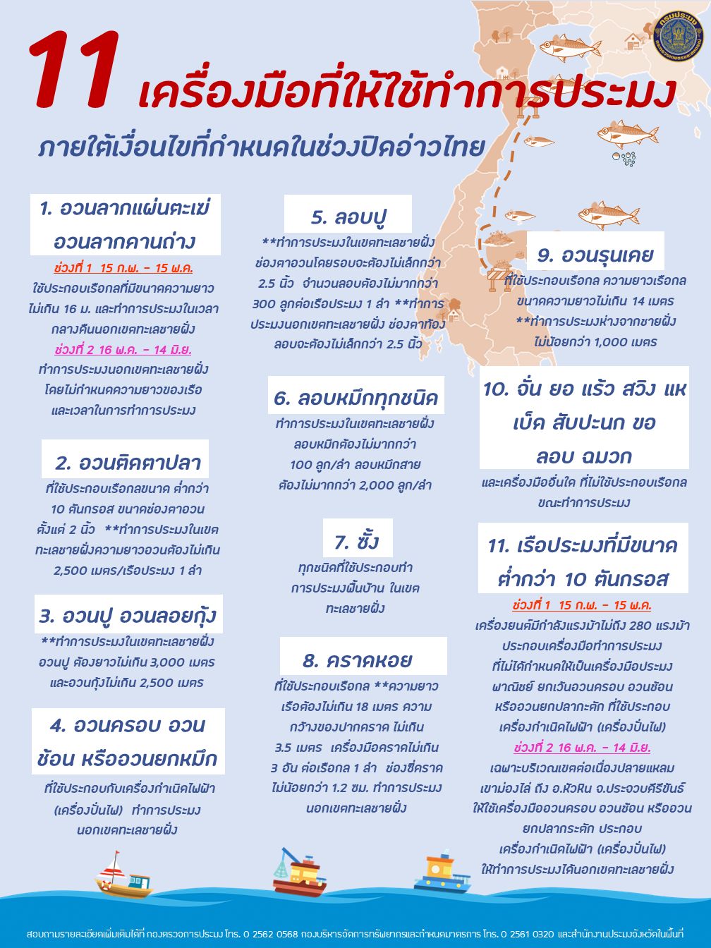 กรมประมง ประกาศใช้มาตรการบริหารจัดการทรัพยากรสัตว์น้ำมีไข่ วางไข่ เลี้ยงตัวอ่อน บริเวณอ่าวไทยตอนกลาง (มาตรการปิดอ่าว)..คลิก