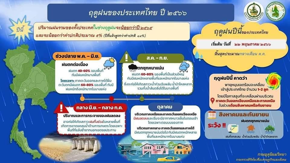 ประกาศการเริ่มเข้าสู่ฤดูฝนประเทศไทย ปี 2566..คลิก