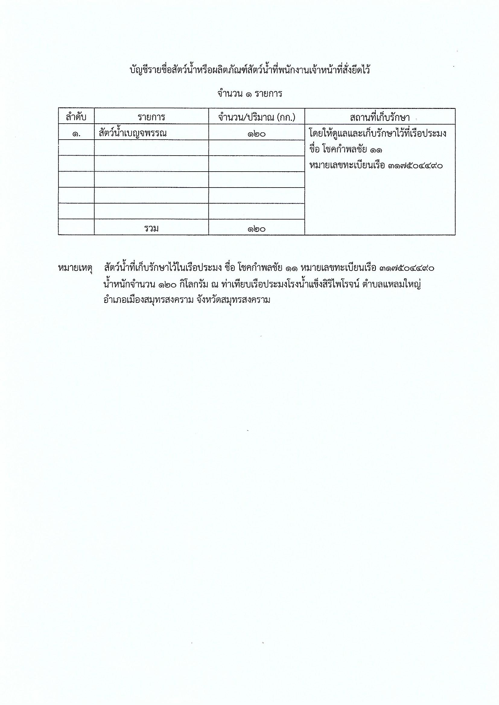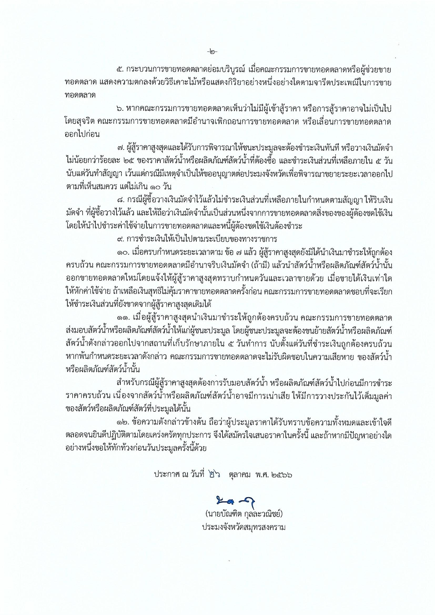 ประกาศสำนักงานประมงจังหวัดสมุทรสงคราม ที่ 4/2566 เรื่อง การขายทอดตลาดสัตว์น้ำหรือผลิตภัณฑ์สัตว์น้ำที่พนักงานเจ้าหน้าที่สั่งยึดไว้