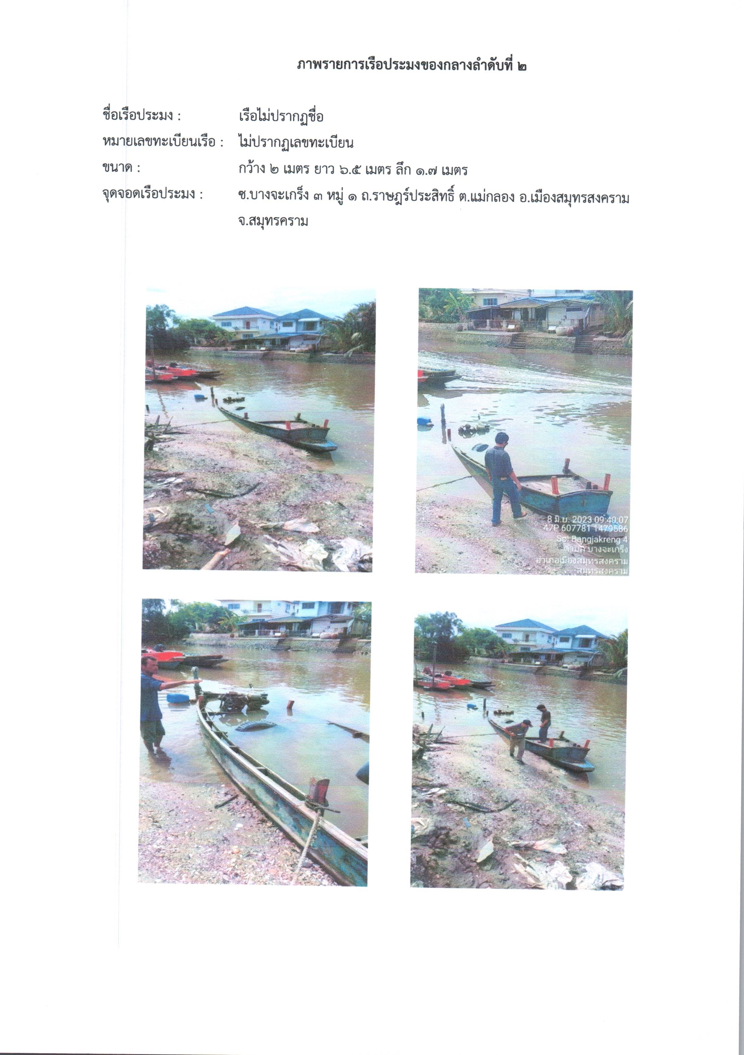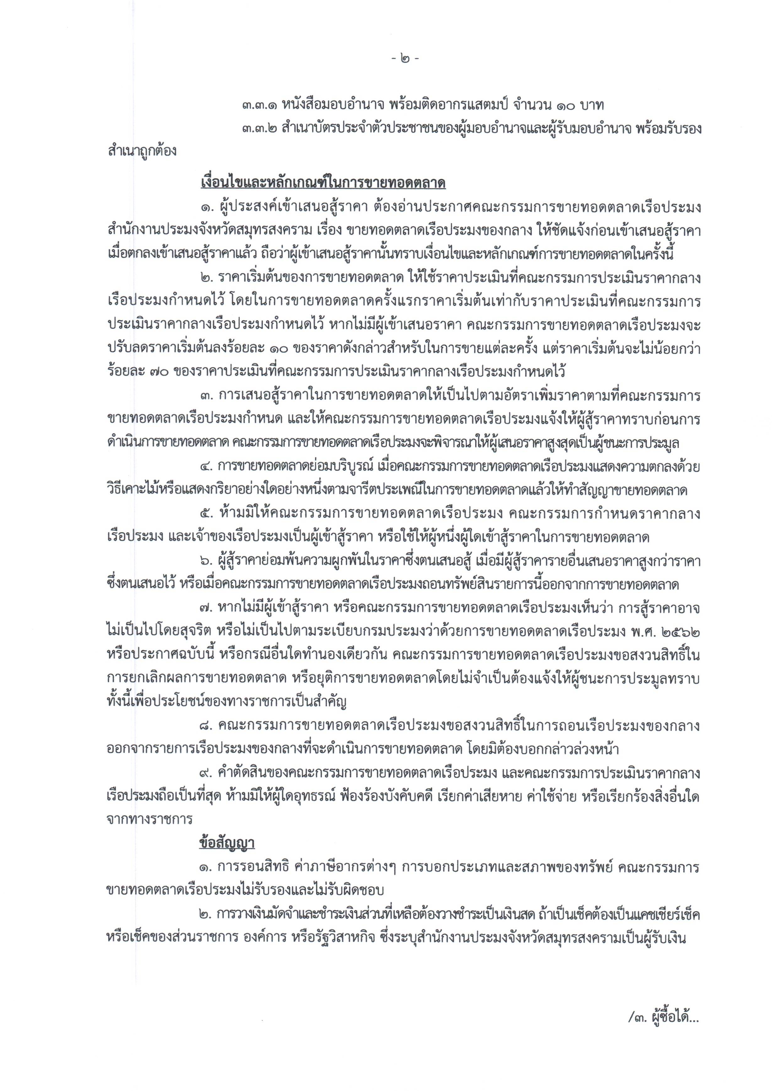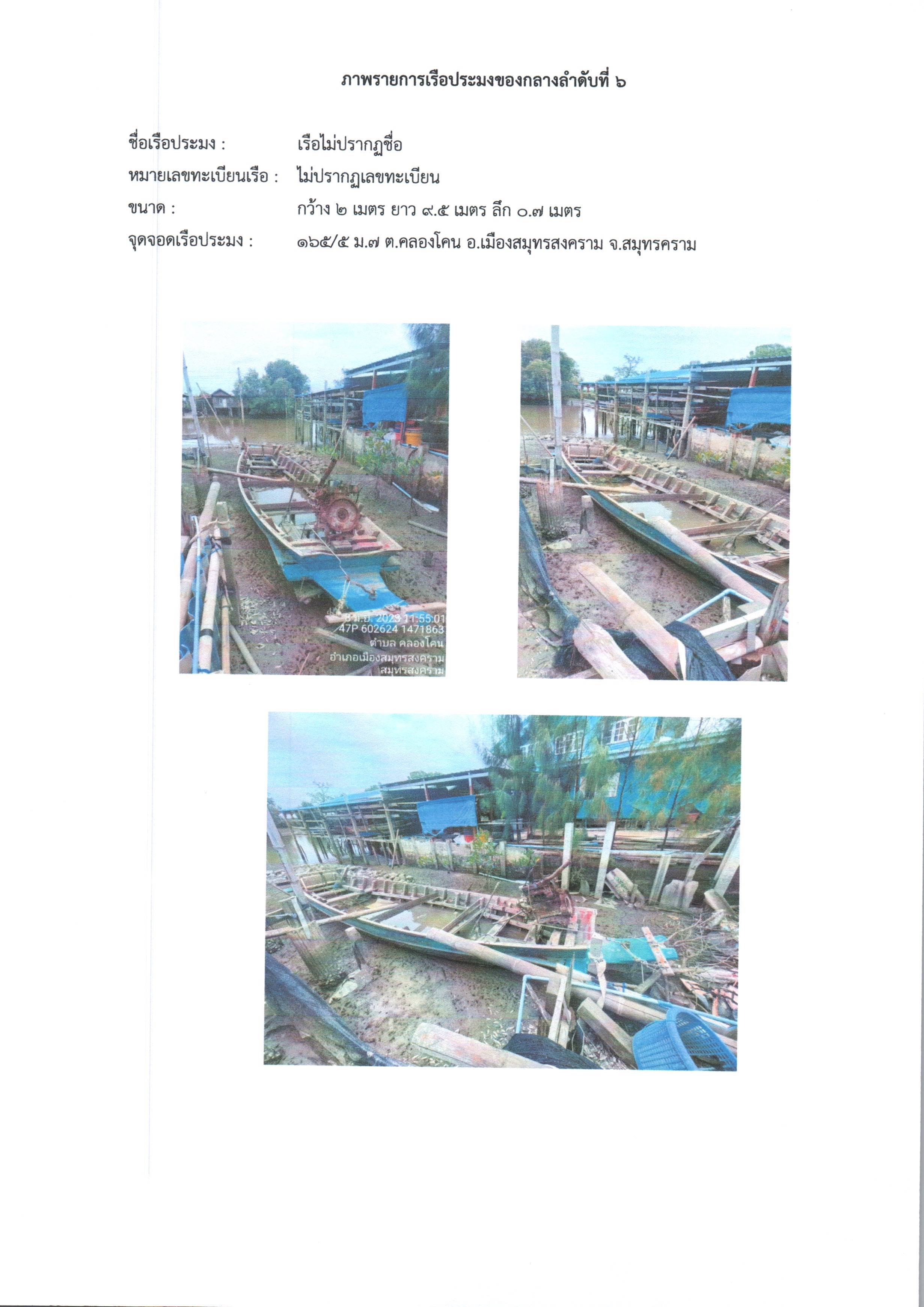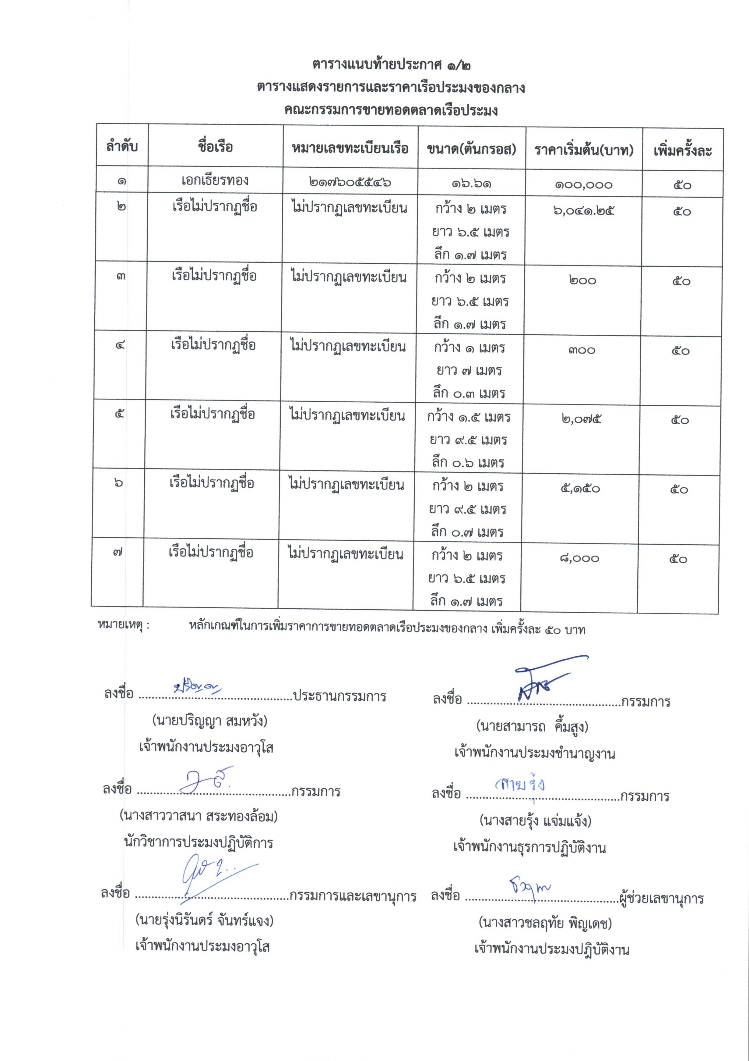 ประกาศคณะกรรมการขายทอดตลาดเรือประมง สำนักงานประมงจังหวัดสมุทรสงคราม เรื่อง ขายทอดตลาดเรือประมง จำนวน 7 รายการ