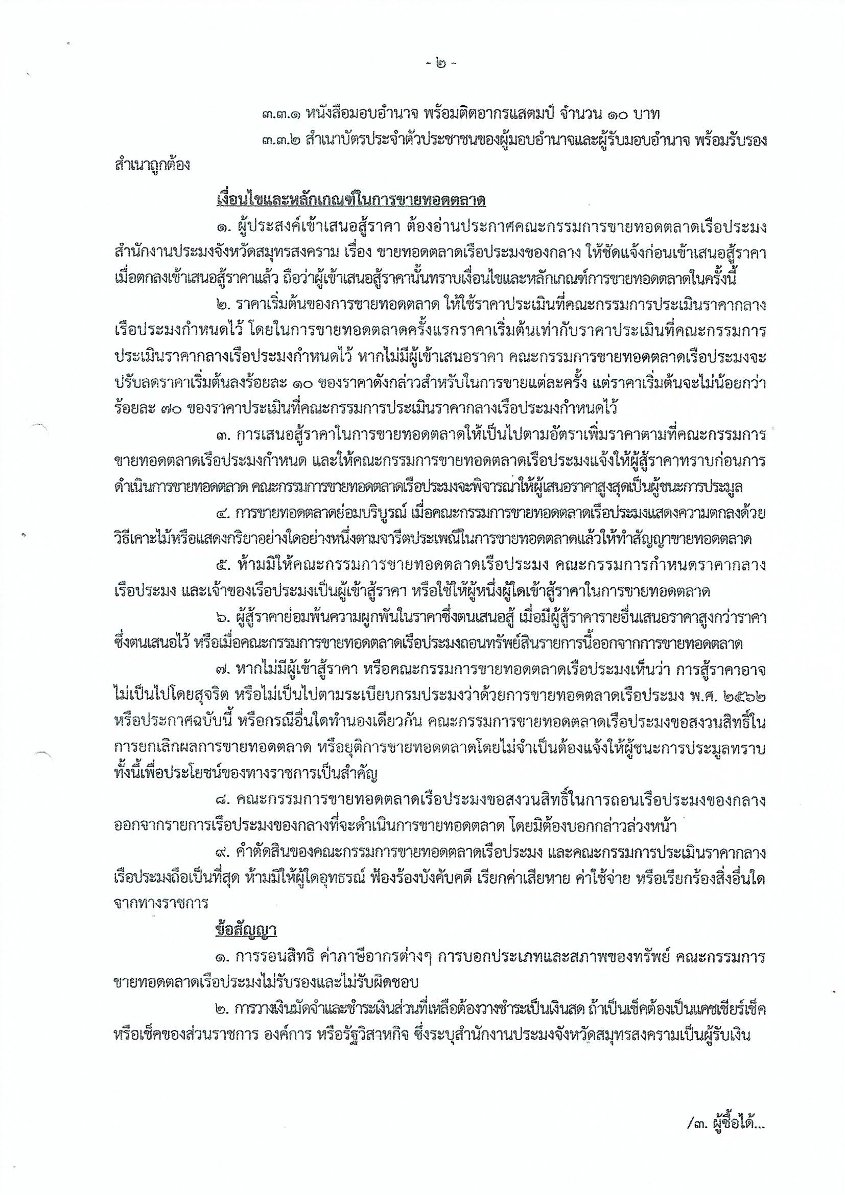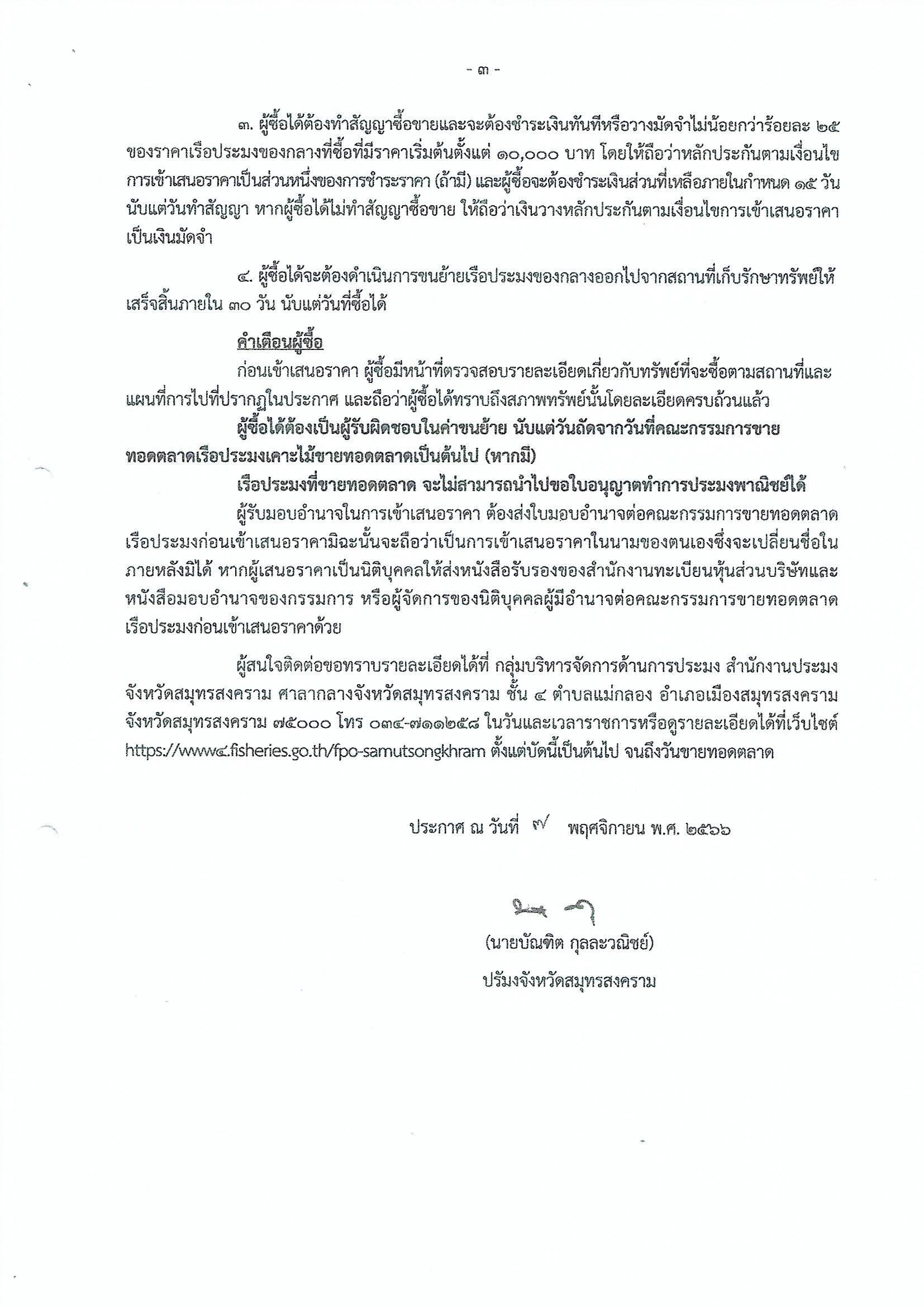 ประกาศคณะกรรมการขายทอดตลาดเรือประมง สำนักงานประมงจังหวัดสมุทรสงคราม เรื่อง ขายทอดตลาดเรือประมง จำนวน 7 รายการ นัดที่ 2..คลิก