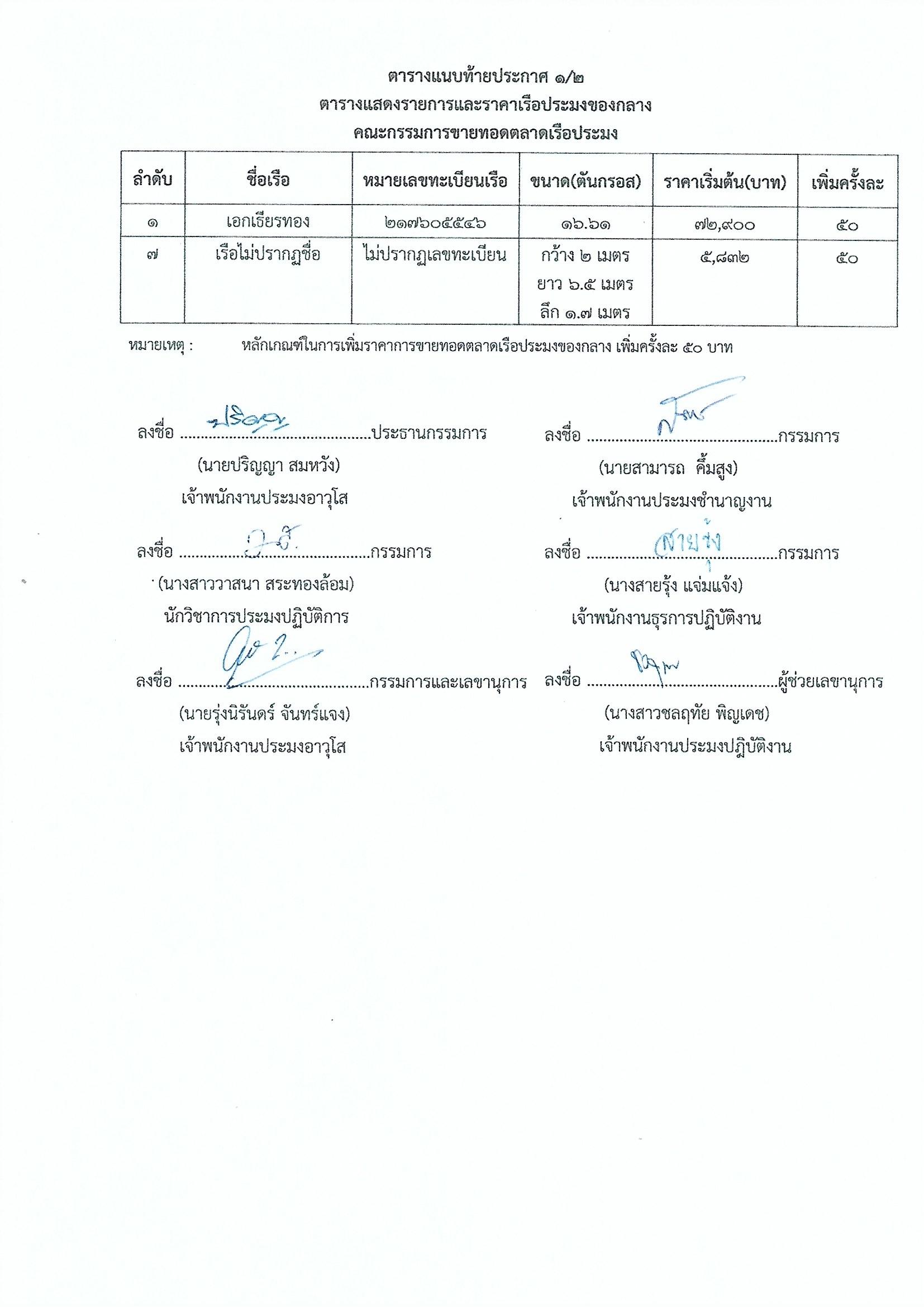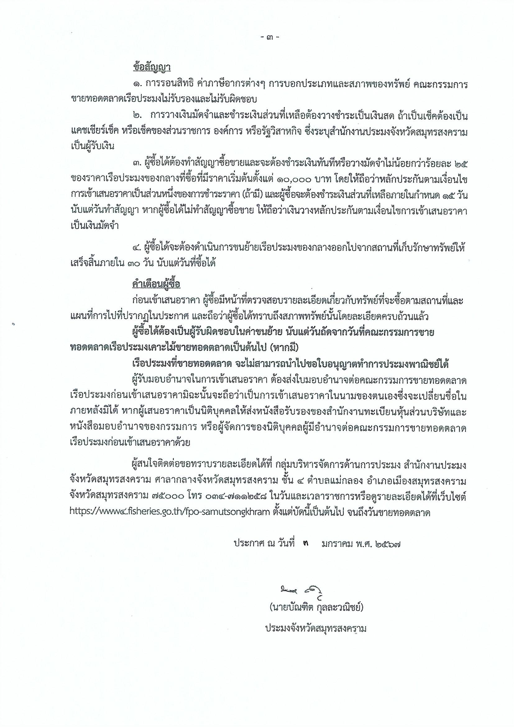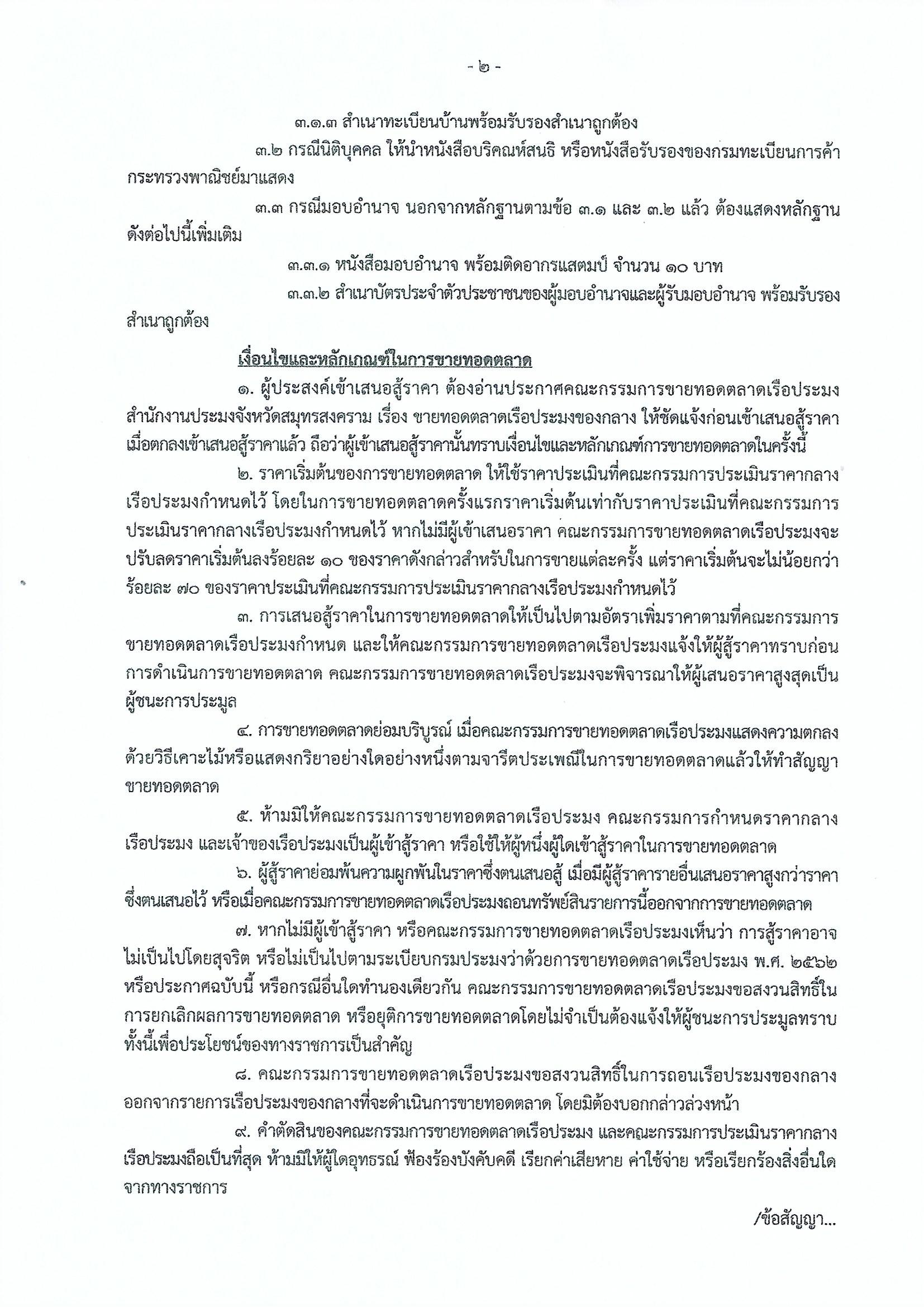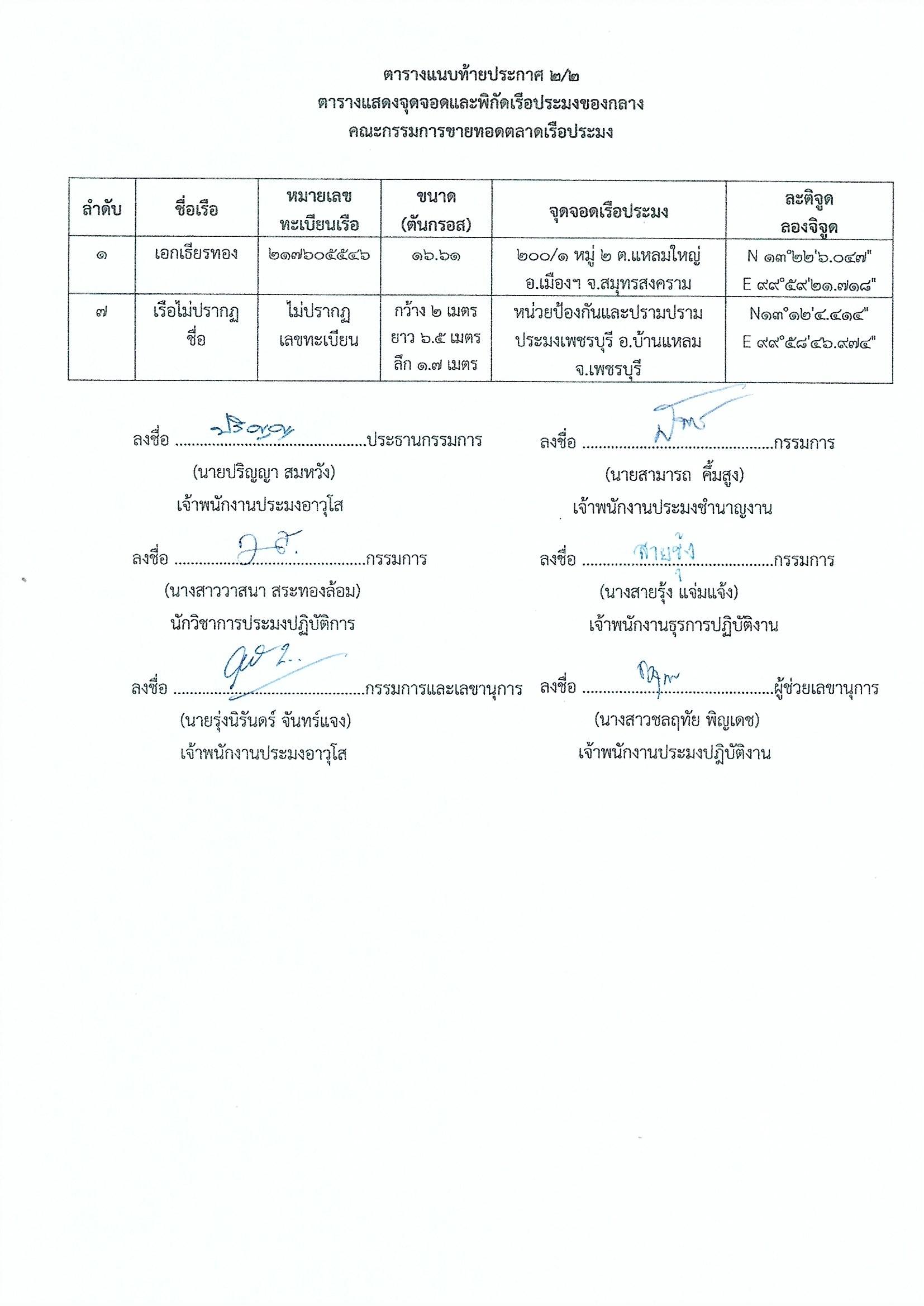 ประกาศคณะกรรมการขายทอดตลาดเรือประมง สำนักงานประมงจังหวัดสมุทรสงคราม เรื่อง ขายทอดตลาดเรือประมง จำนวน 7 รายการ (ฉบับที่ 2) นัดที่ 4..คลิก