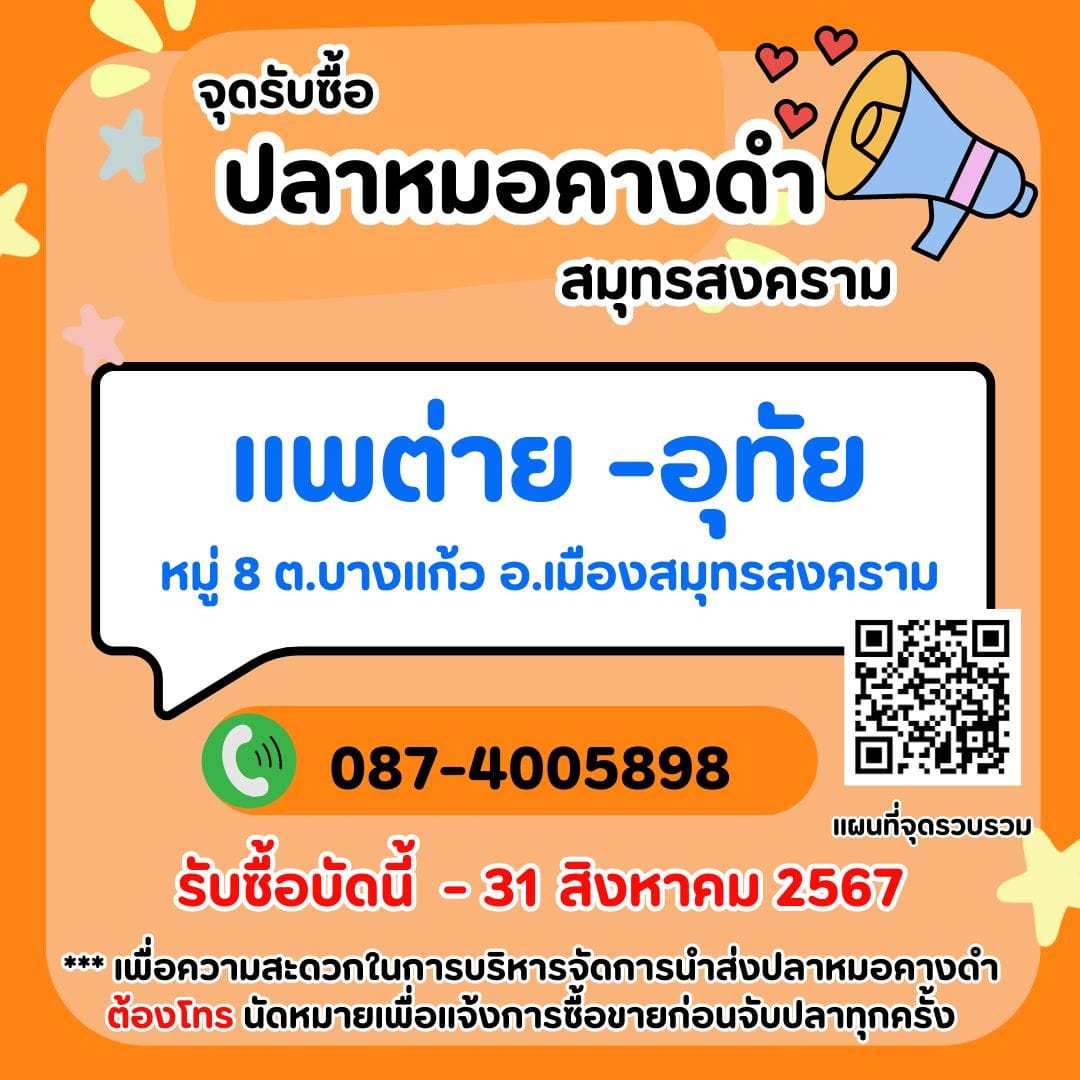 ประกาศรายชื่อผู้ที่ได้รับการคัดเลือกเป็นผู้รวบรวมวัตถุดิบและจำหน่ายวัตถุดิบ (ปลาหมอคางดำ) เพิ่มเติม โครงการผลิตน้ำหมักชีวภาพเพื่อเกษตรกรชาวสวนยาง ในพื้นที่จังหวัดสมุทรสงคราม