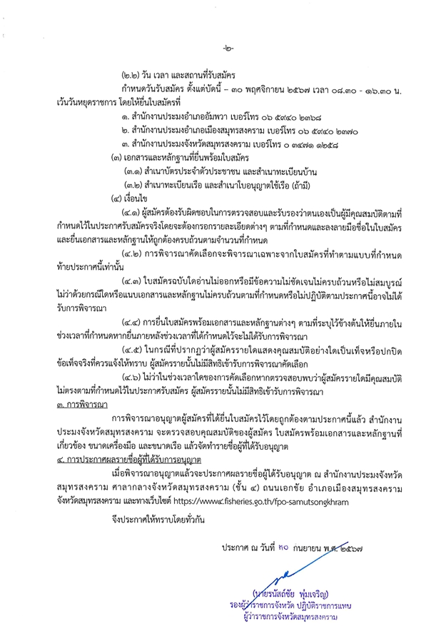 ประกาศจังหวัดสมุทรสงคราม เรื่อง การรับสมัครผู้ที่จะใช้ใช้เครื่องมืออวนรุนกำจัดปลาหมอคางดำในพื้นที่จังหวัดสมุทรสงคราม