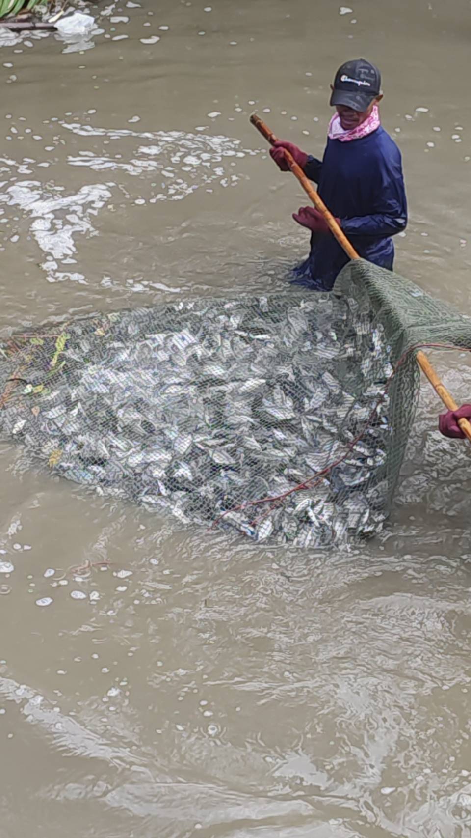 ณ บริเวณคลองมอญ ตำบลบางเกร็ง อำเภอเมืองฯ จังหวัดสมุทรสงคราม ปริมาณปลาหมอคางดำที่ได้ จำนวน 1,300 กิโลกรัม ได้มอบให้ผู้นำชุมชน ประชาชนในพื้นที่ และนำส่งโรงงาน