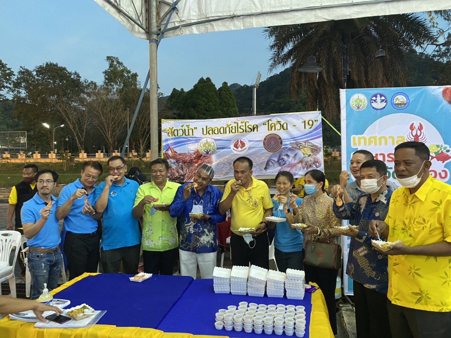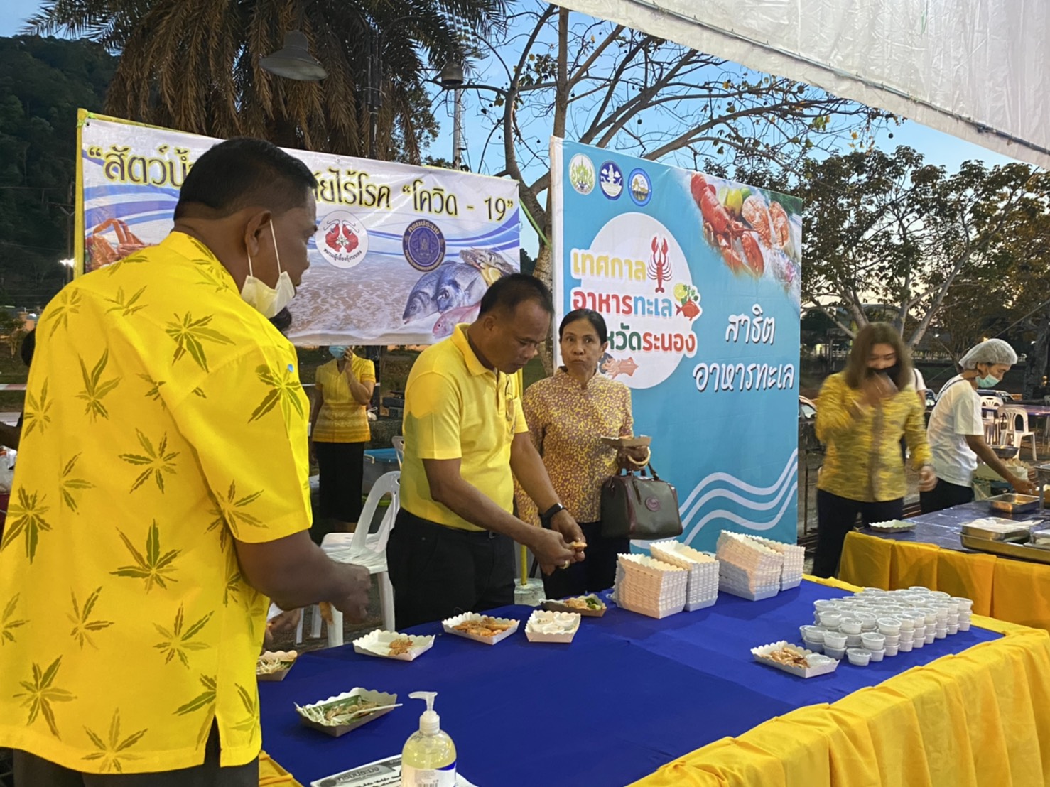 สำนักงานประมงจังหวัดระนอง ร่วมกับชมรมผู้เลี้ยงกุ้งระนอง พร้อมคณะเจ้าหน้าที่ฯ นำกุ้งจากชมรมผู้เลี้ยงกุ้งจังหวัดระนองทำเมนูกุ้งเพื่อแจกให้ประชาชนผู้เข้าร่วมงานเทศกาลอาหารทะเลจังหวัดระนอง 27-29 ธ.ค. 2563 ตามโครงการเพิ่มศักยภาพกิจกรรมด้านการท่องเที่ยวจังหวัดระนอง ทั้งนี้เพื่อสร้างความมันใจให้กับประชาชนในการบริโภคอาหารทะเล ที่ปลอดภัยจากการแพร่ระบาทของโรคติดเชื้อไว้รัสโคโรนา 2019 (โควิด -19)รอบใหม่ ทั้งนี้ ในการภายในงานดังกล่าว นายสมเกียรติ ศรีษะเนตร ผู้ว่าราชการจังหวัดระนอง รองผู้ว่าราชการฯ และหัวหน้าส่วนราชการ ชิมเมนูกุ้งเพื่อสร้างความมั่นใจให้กับประชาชนในการบริโภคอาหารทะเล อีกด้วย
