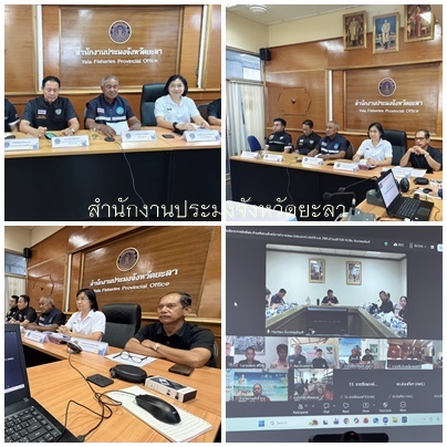 1.2  นางจุไลวรรณ รุ่งกำเนิดวงศ์ ประมงจังหวัดยะลา พร้อมด้วยนายสมชาย ชุณหภากร หัวหน้ากลุ่มบริหารจัดการด้านการประมง เจ้าหน้าที่สำนักงานประมงจังหวัดยะลา ร่วมกับนายวัยวุฒิ ศันติวิชยะ หัวหน้าหน่วยป้องกันและปราบปรามประมงน้ำจืดเขื่อนบางลาง (ยะลา) เจ้าหน้าที่หน่วยป้องกันและปราบปรามประมงน้ำจืดเขื่อนบางลาง (ยะลา) และนายจรัส คำแสนโต ผู้เข้ารับการคัดเลือกอาสาสมัครดีเด่น เข้าร่วมประชุมการพิจารณาการคัดเลือกอาสาสมัครดีเด่น ด้านเครือข่ายเฝ้าระวังการทำการประมง (ประมงอาสา) ประจำปี 2569 เพื่อส่งรายชื่อให้กับกรมพัฒนาสังคมและสวัสดิการ กระทรวงการพัฒนาสังคมและความมั่นคงของมนุษย์ คัดเลือกเป็นอาสาสมัครดีเด่นแห่งชาติต่อไป ผ่านระบบ Zoom Cloud Meetings ณ ห้องประชุมพลวงชมพู อาคาร 1 ชั้น 1 ศาลากลางจังหวัดยะลา