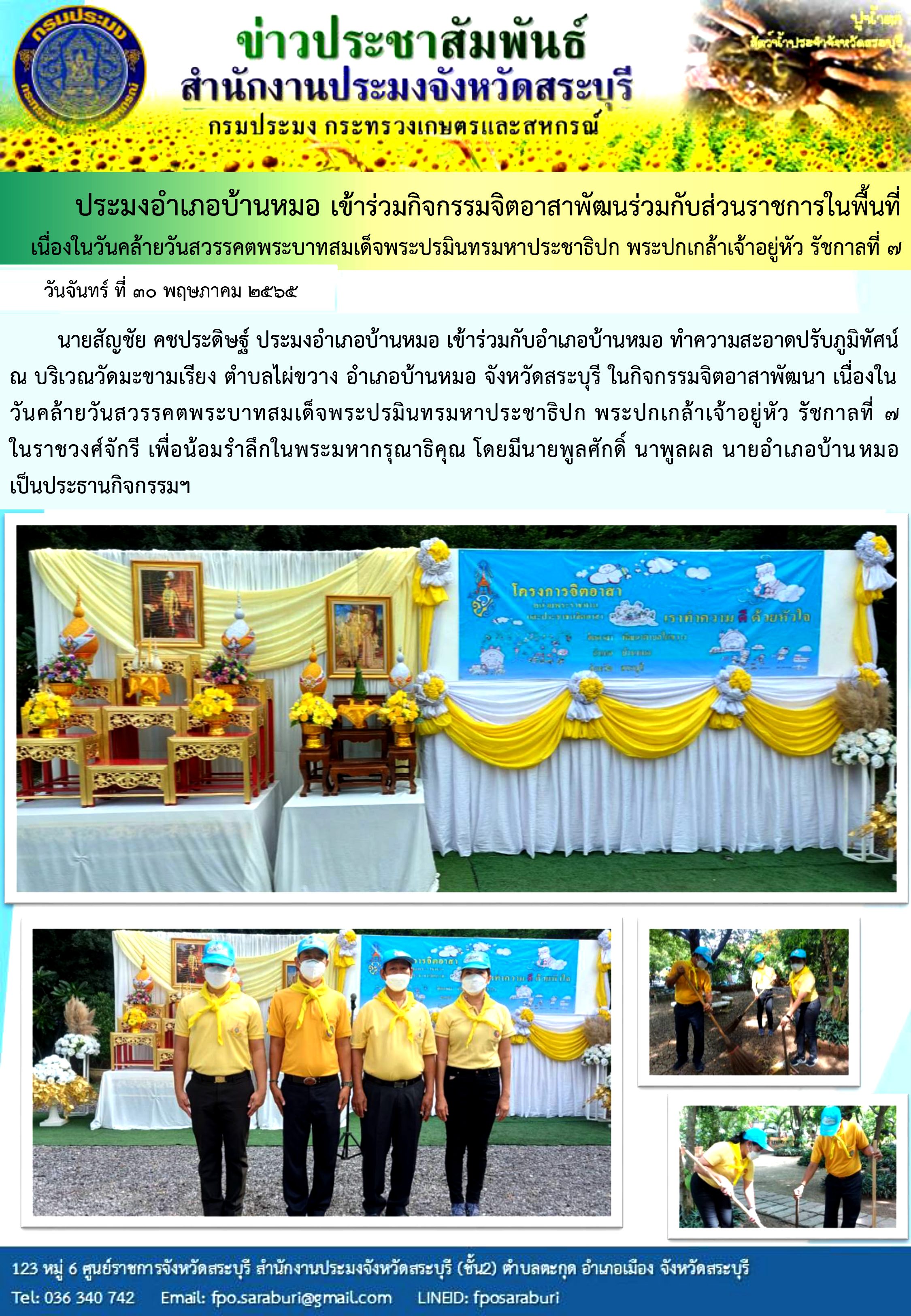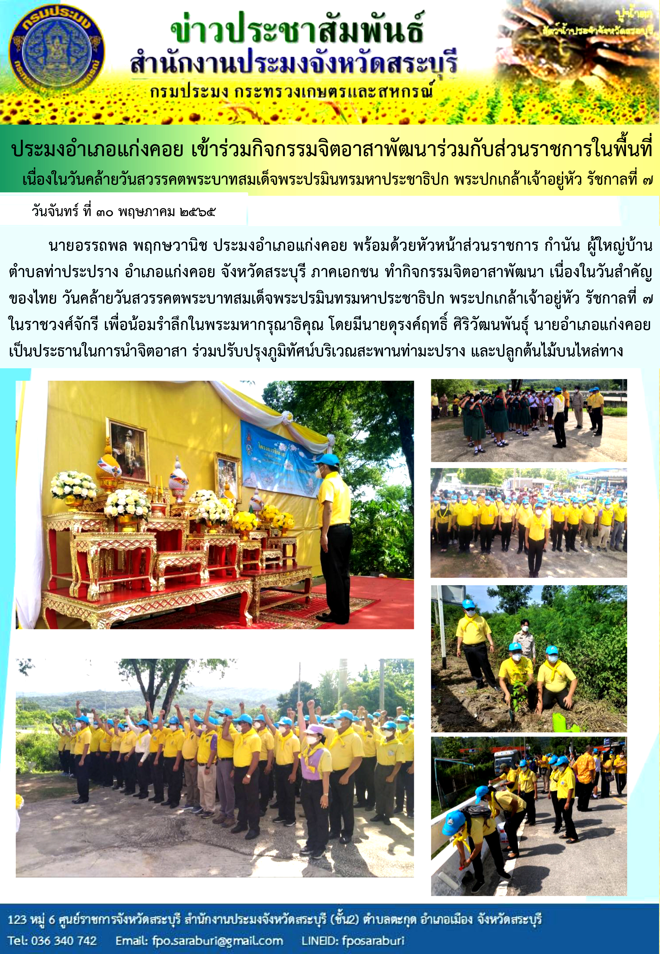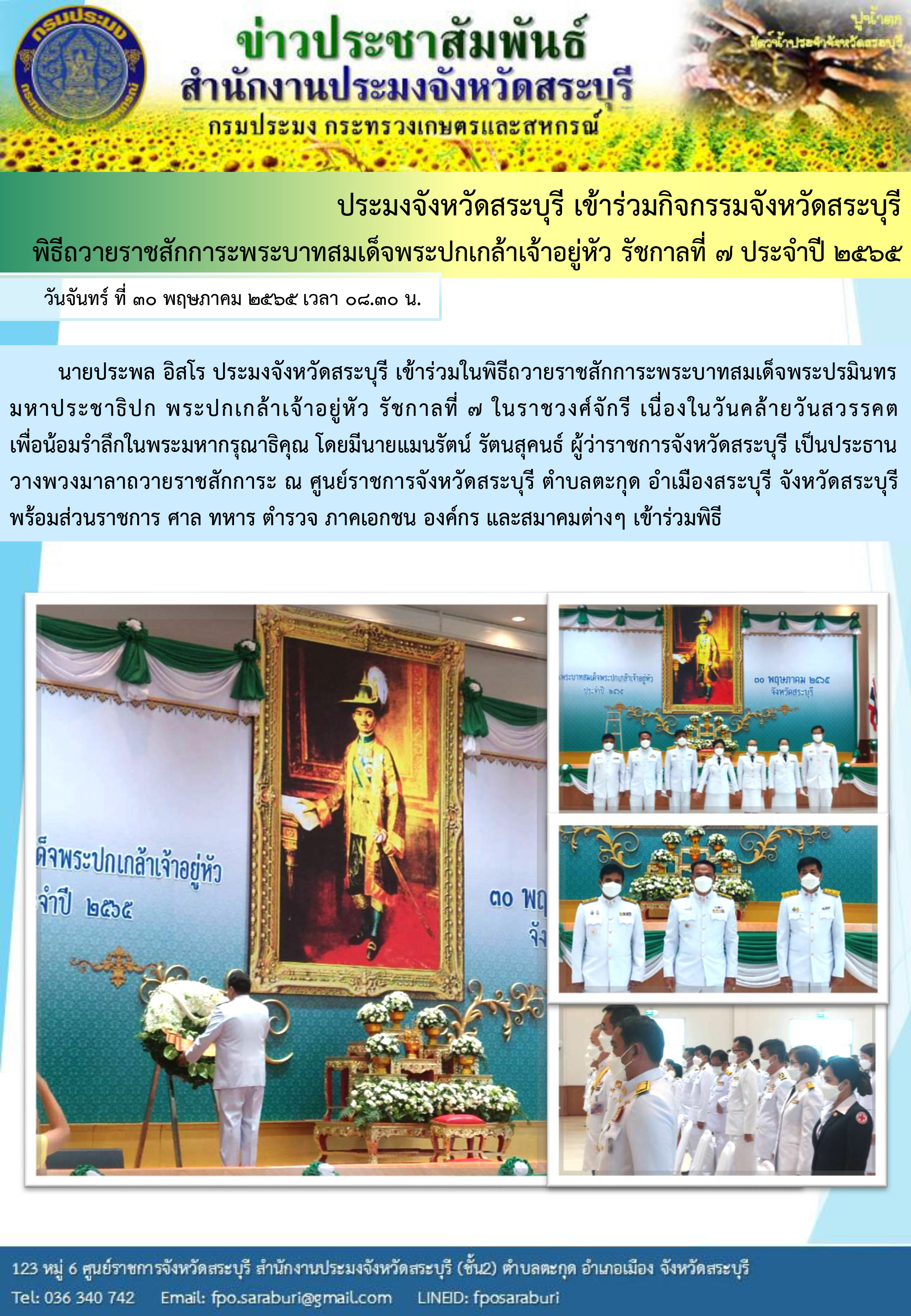 กิจกรรมจังหวัดสระบุรี เนื่องในวันสำคัญของชาติไทย วันคล้ายวันสวรรคตพระบาทสมเด็จพระปรมินทรมหาประชาธิปก พระปกเกล้าเจ้าอยู่หัว รัชกาลที่ 7