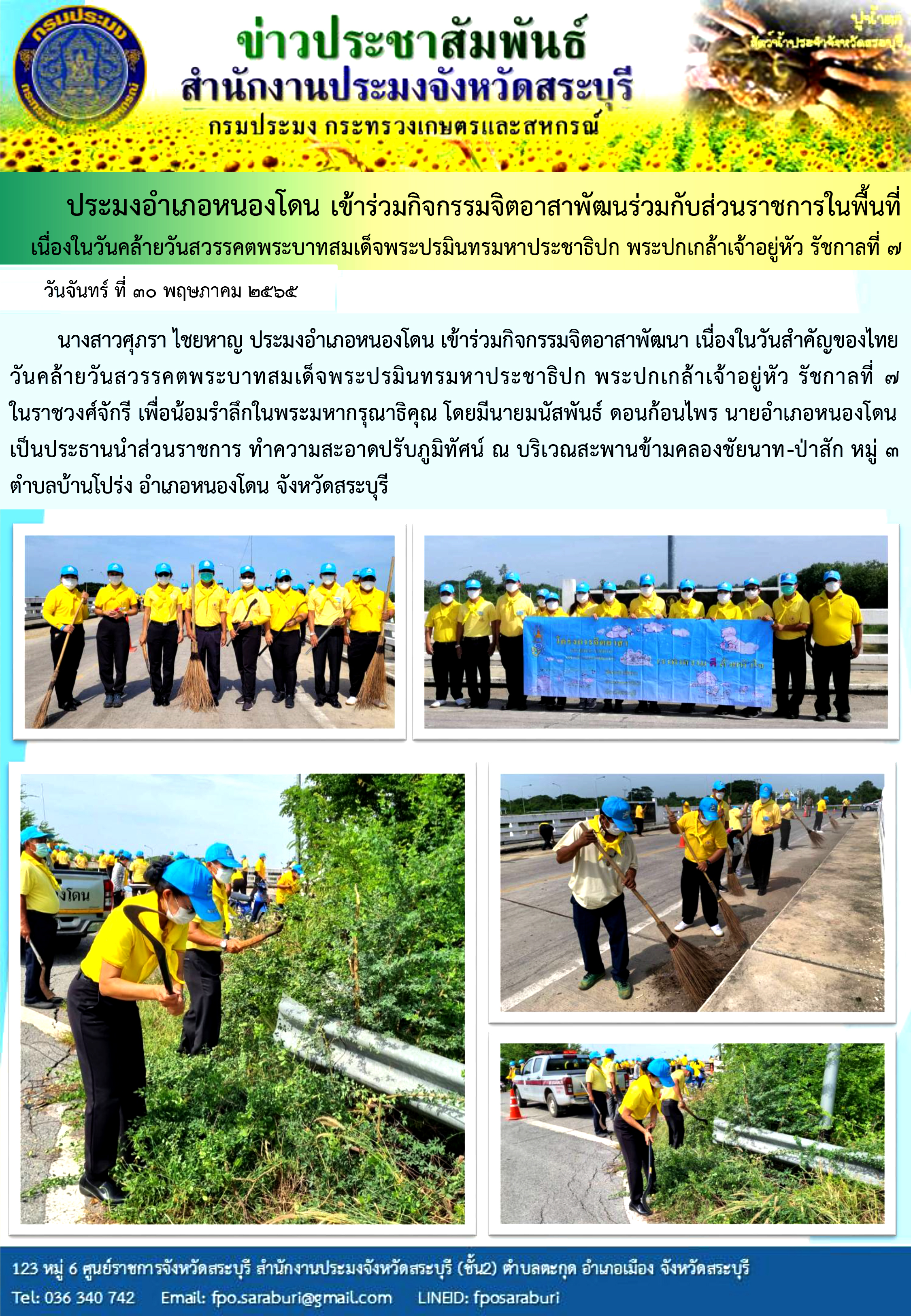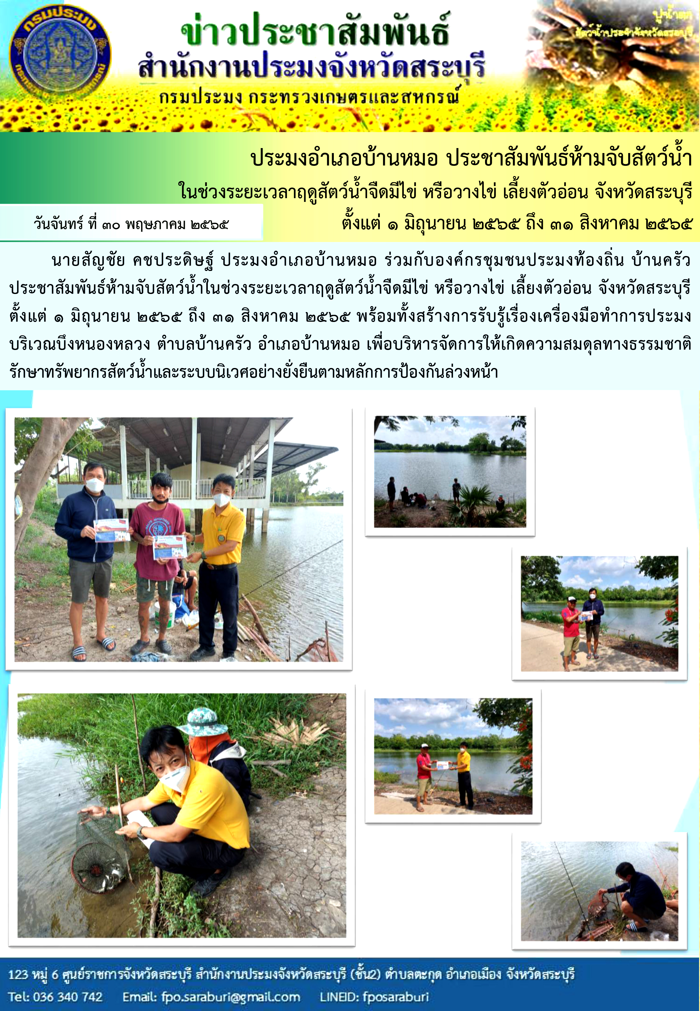 ภารกิจประจำวัน 30 พฤษภาคม 2565 สำนักงานประมงจังหวัดสระบุรี