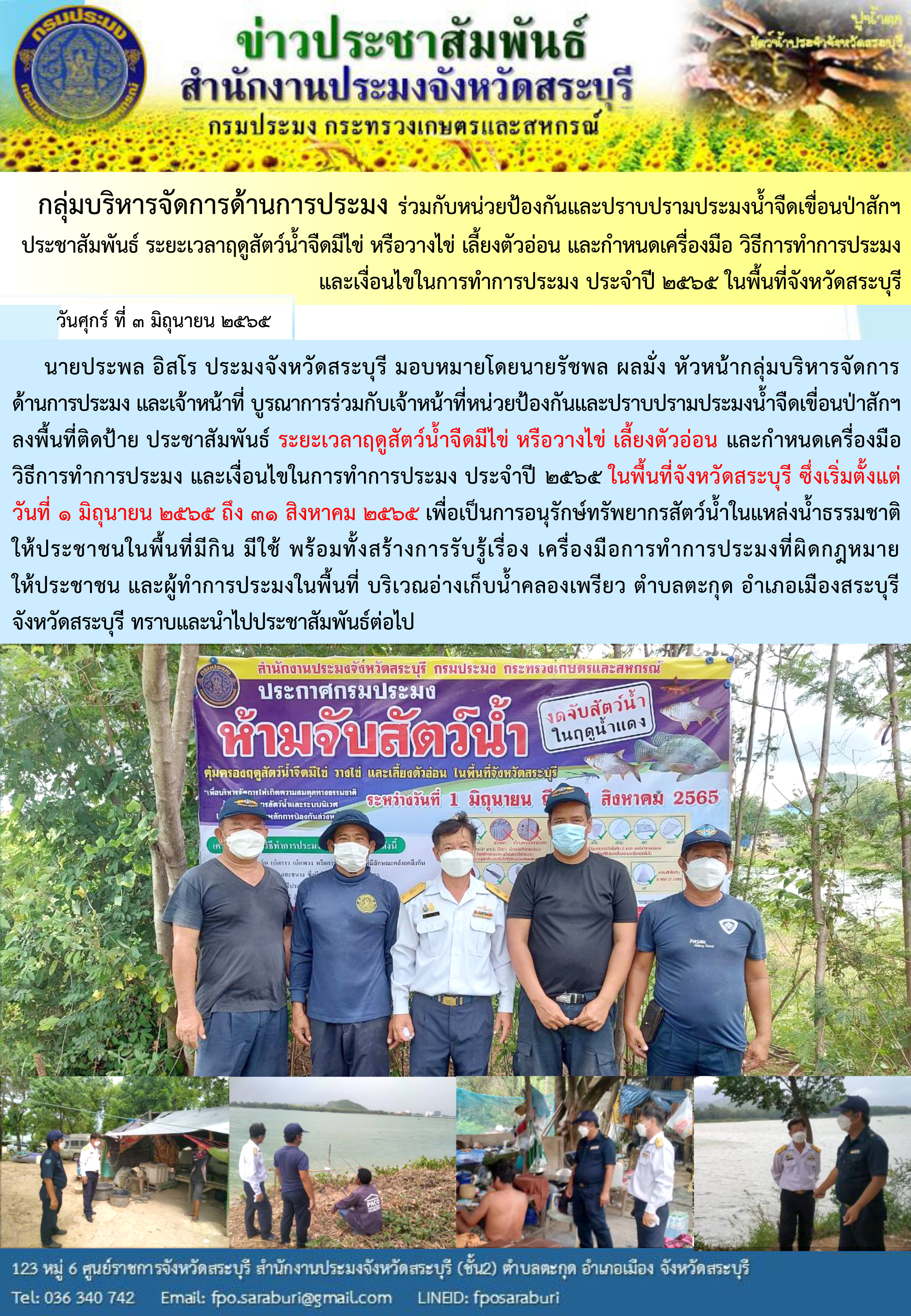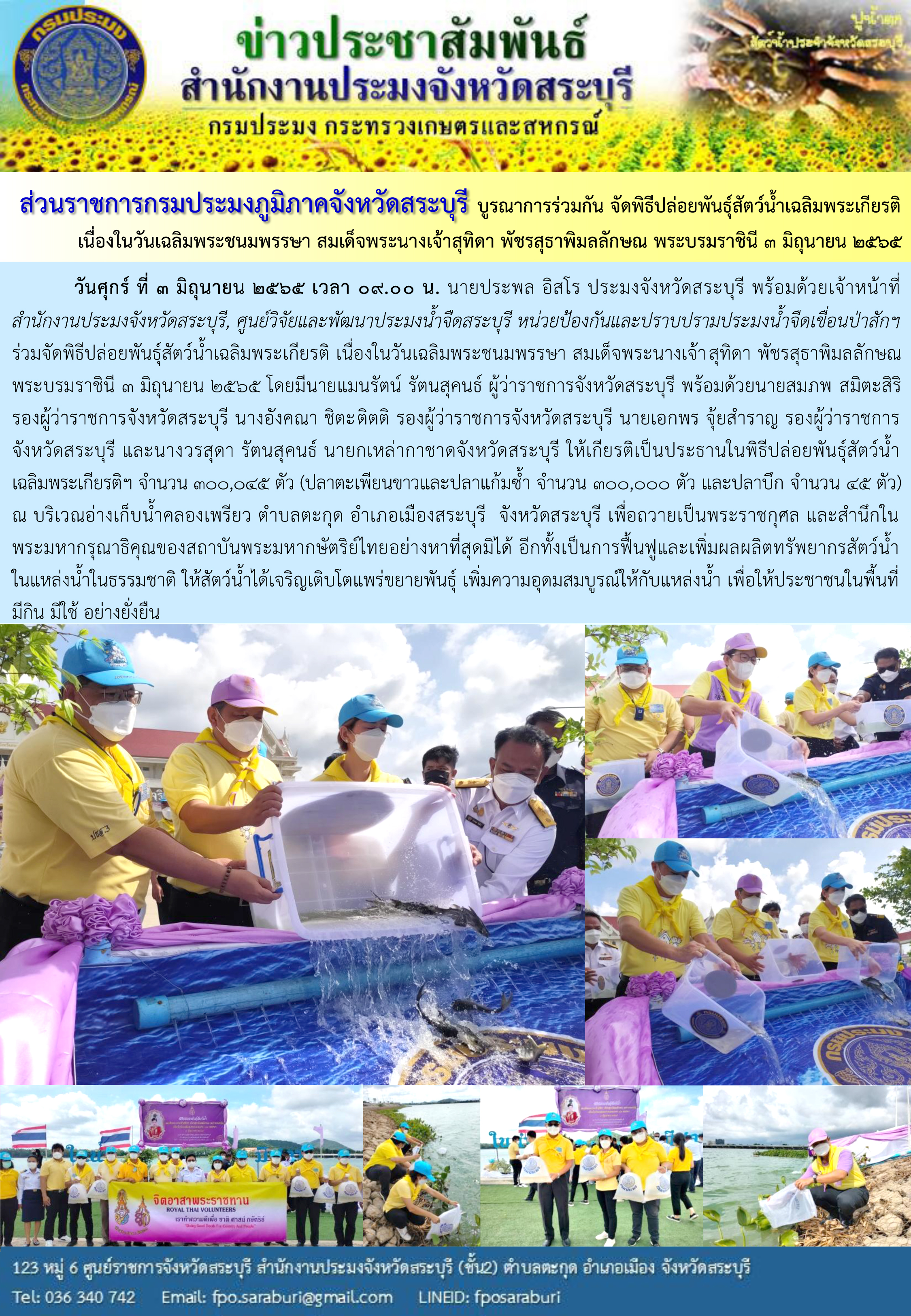 ภารกิจประจำวัน 3 มิถุนายน 2565 สำนักงานประมงจังหวัดสระบุรี