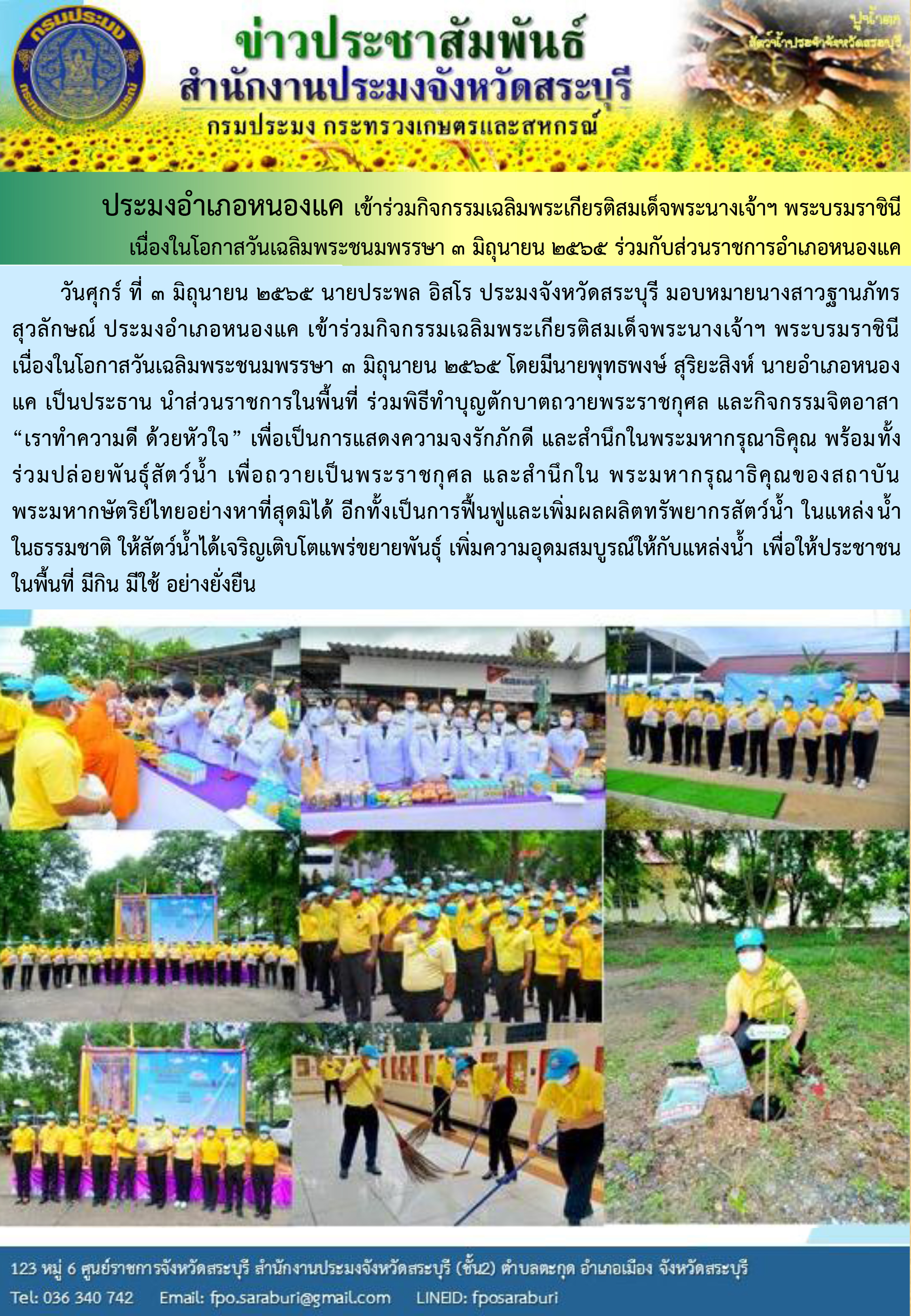 ภารกิจประจำวัน 3 มิถุนายน 2565 สำนักงานประมงจังหวัดสระบุรี..คลิก