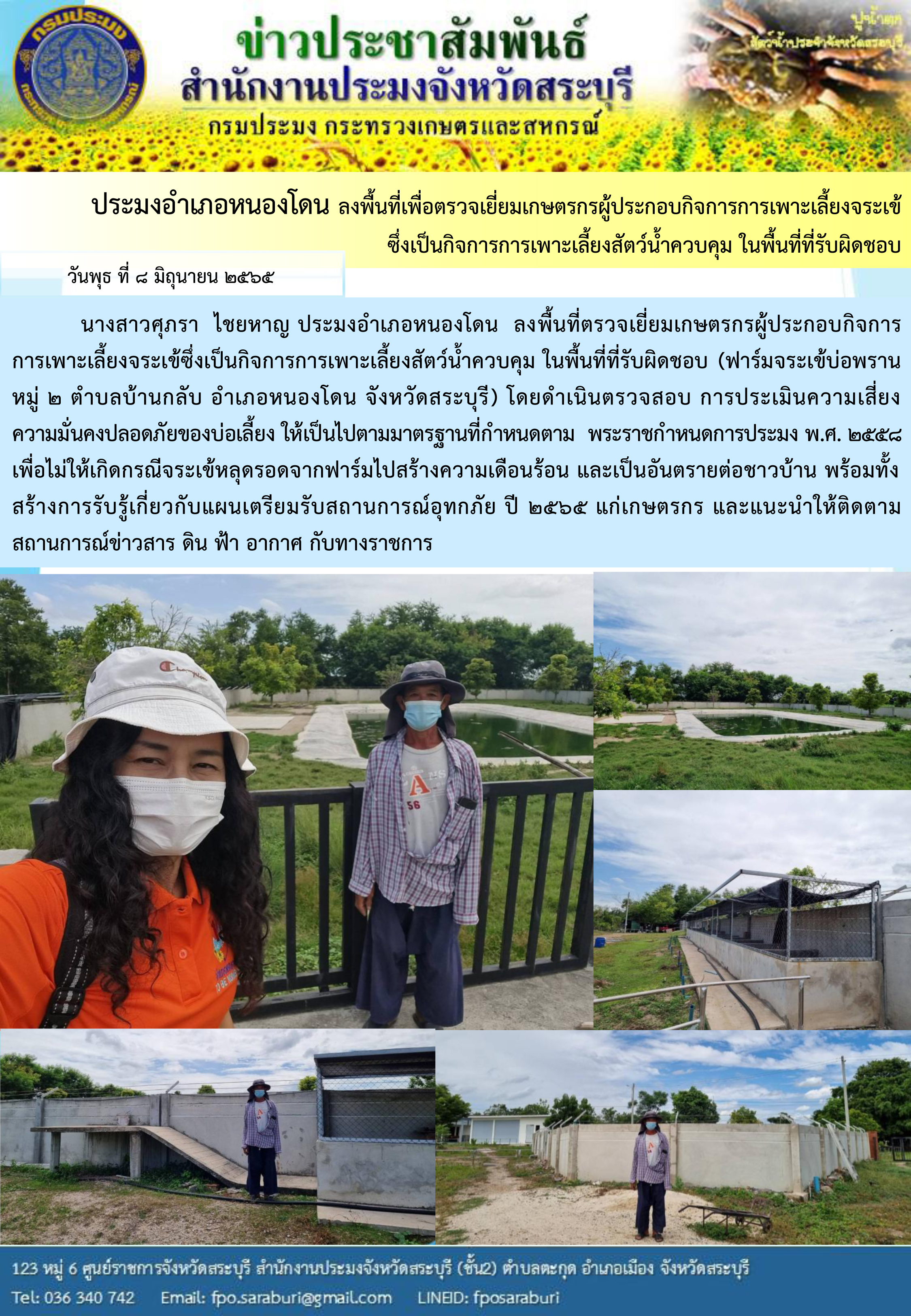 ภารกิจประจำวัน 8 มิถุนายน 2565 สำนักงานประมงจังหวัดสระบุรี..คลิก