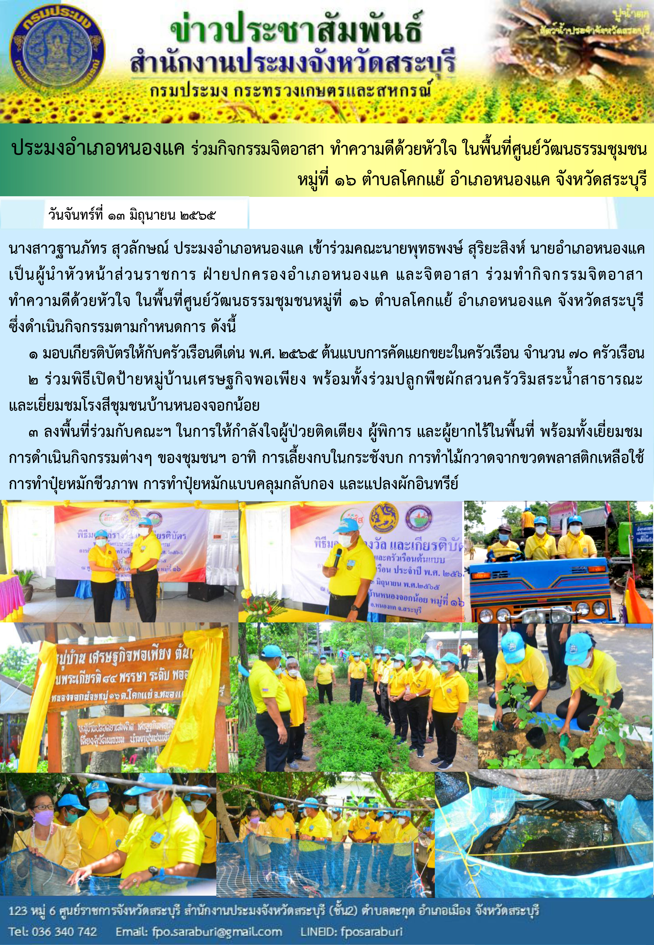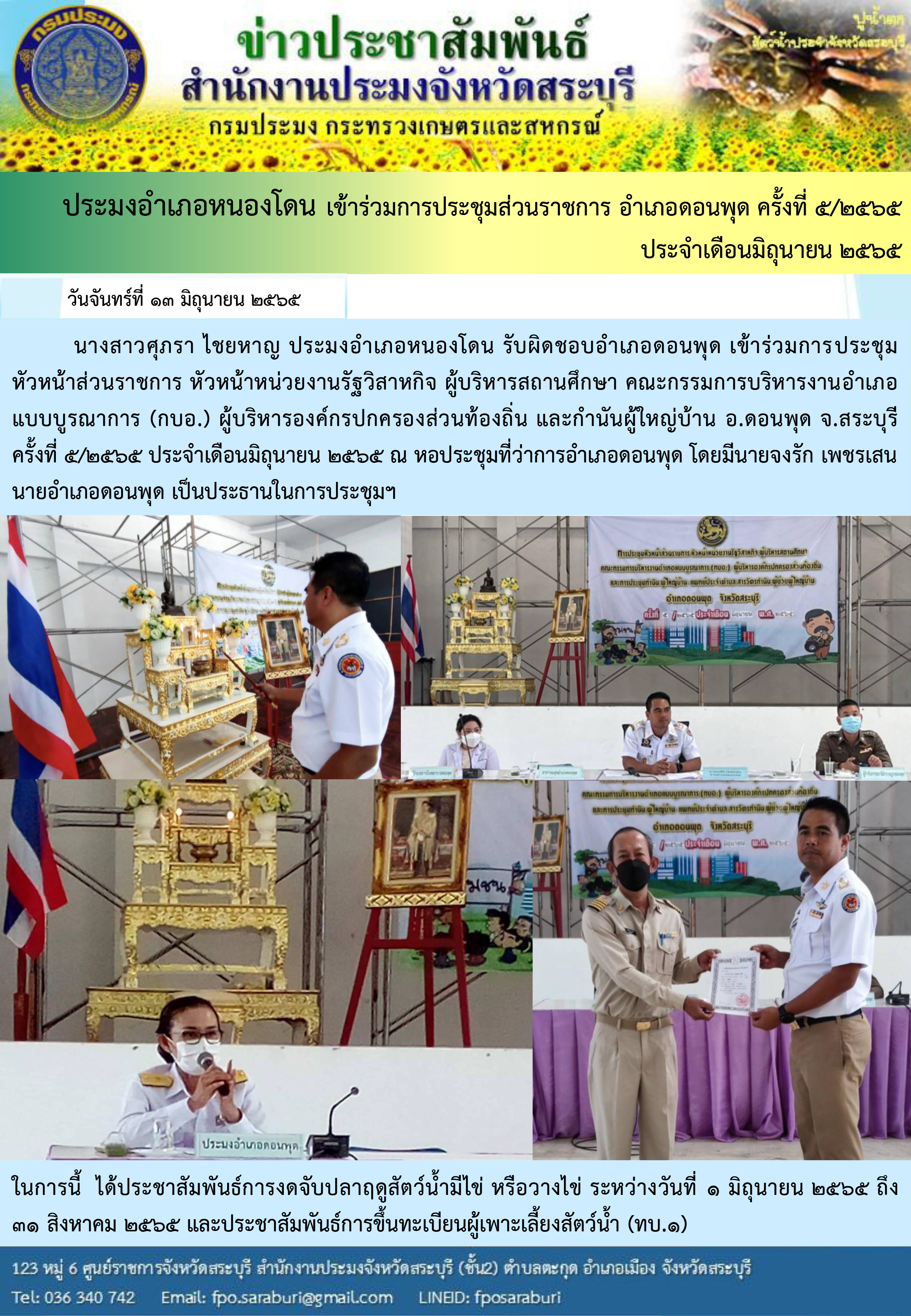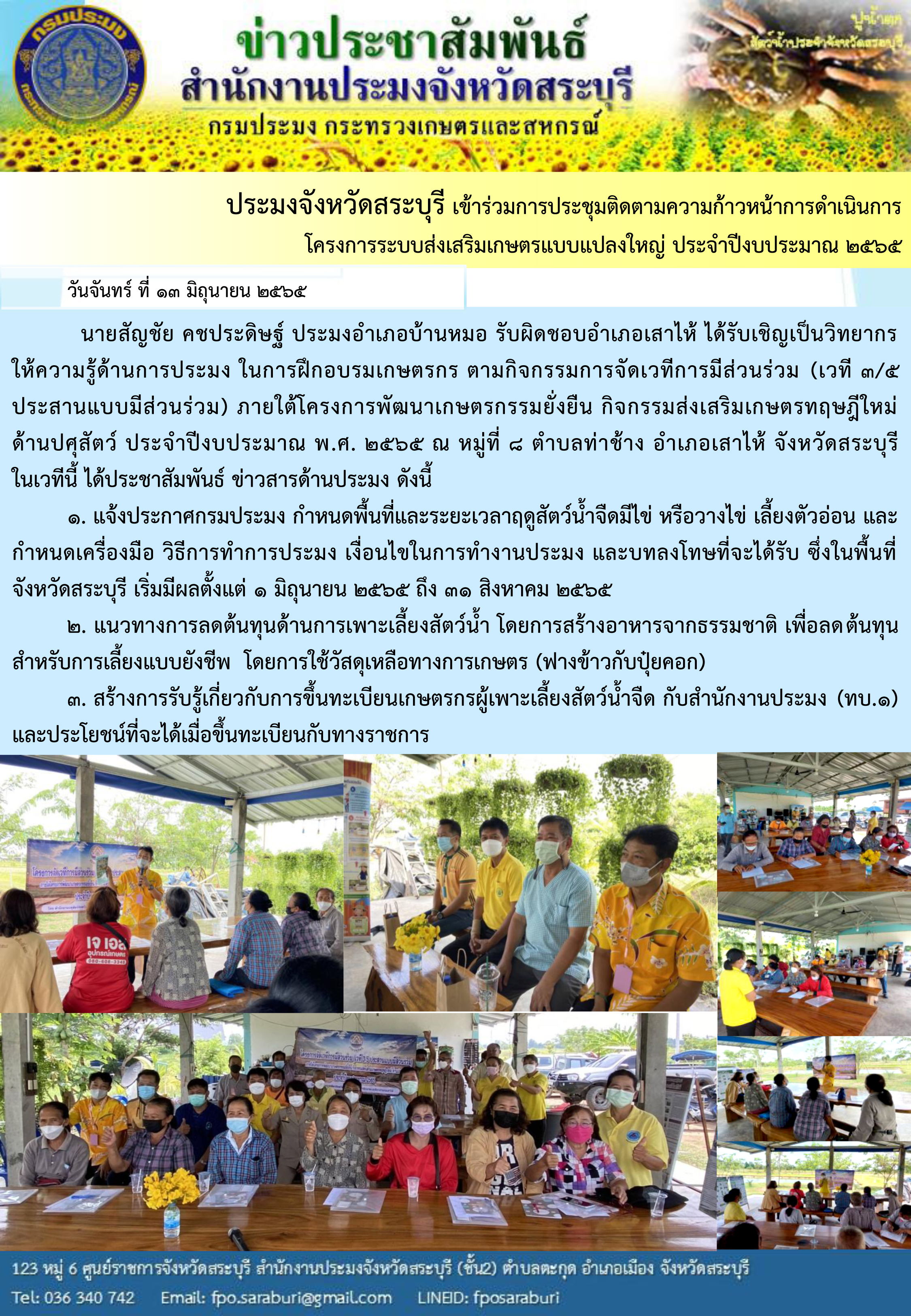 ภารกิจประจำวันที่ 13 มิถุนายน 2565 สำนักงานประมงจังหวัดสระบุรี