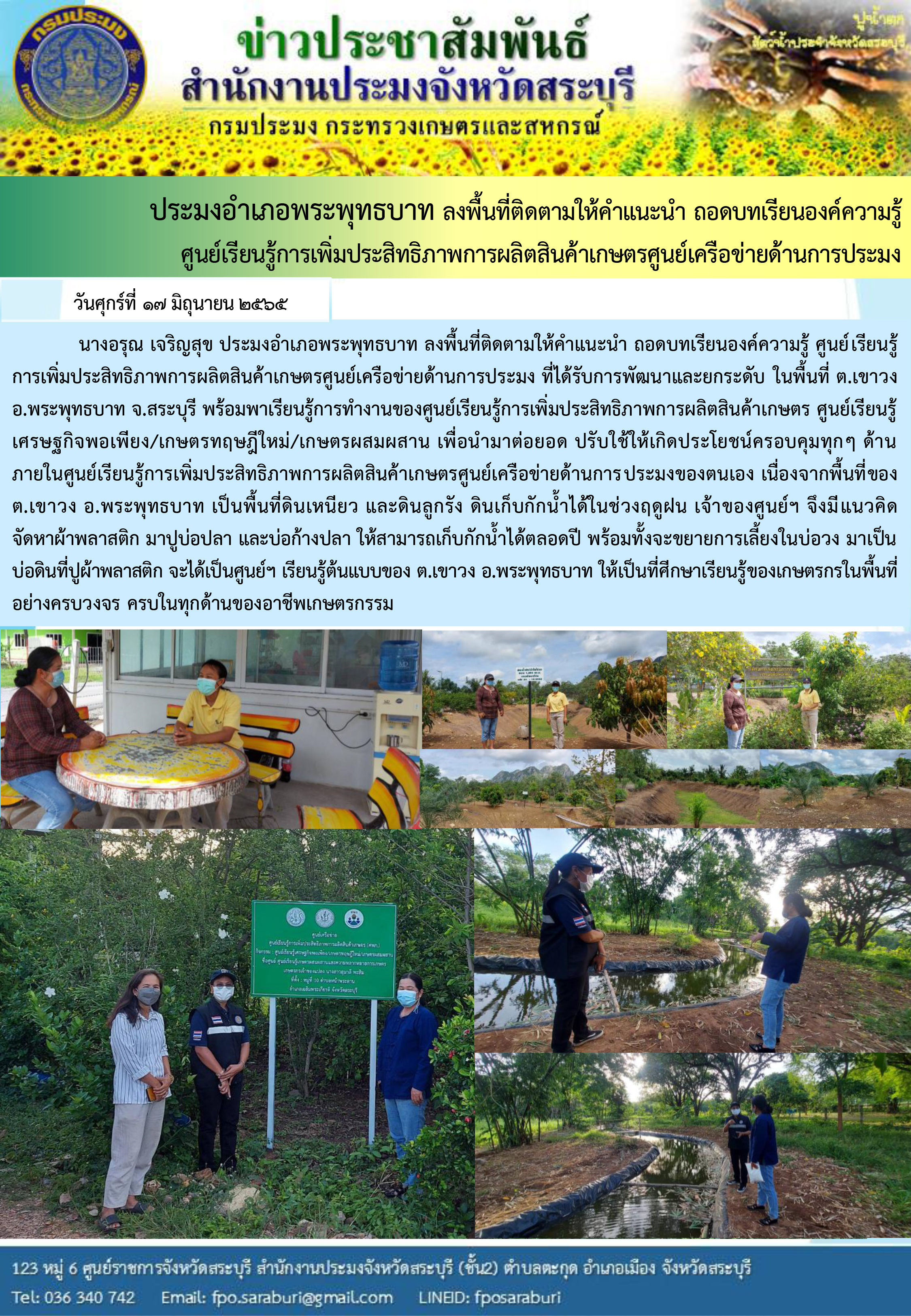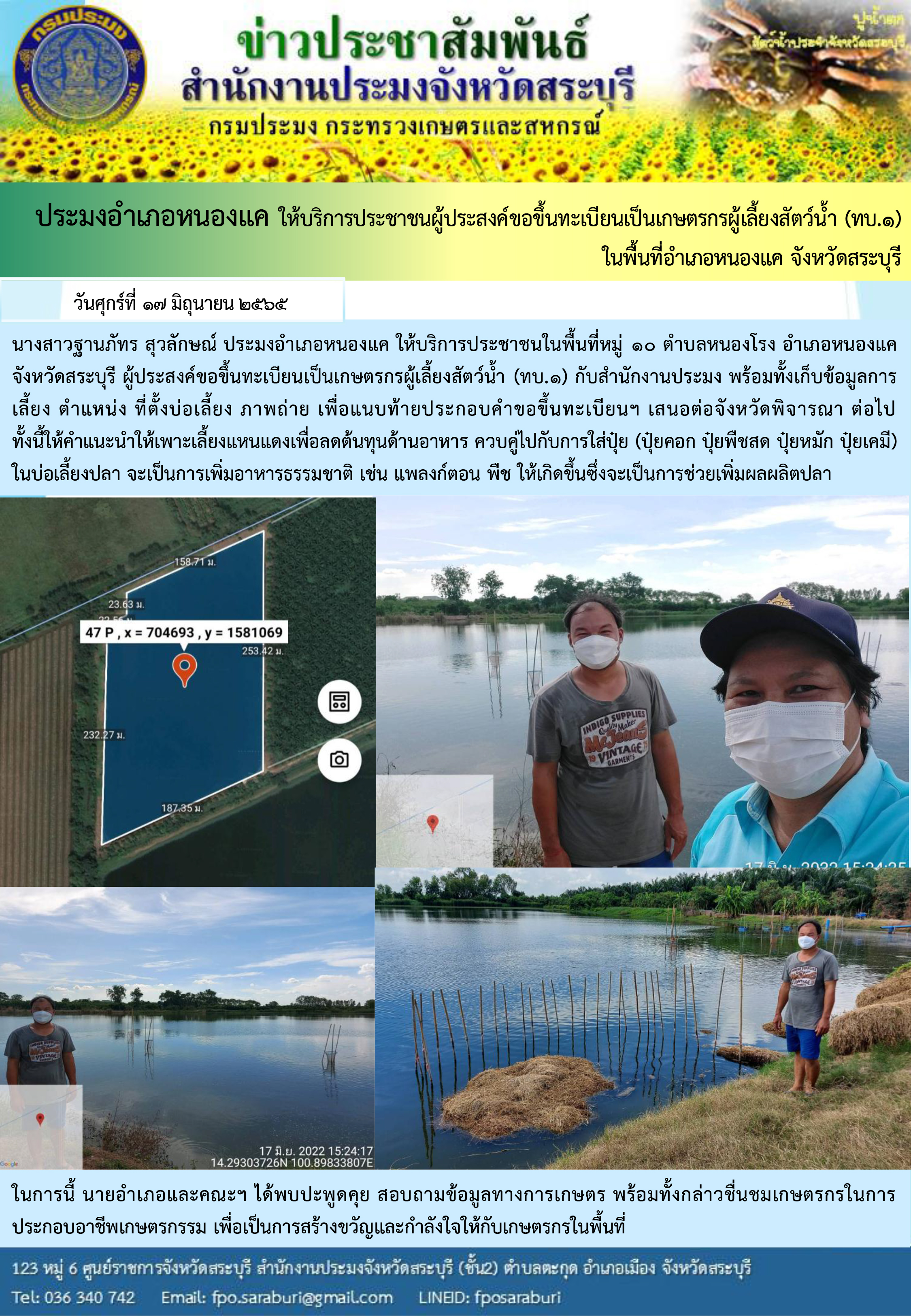 ภารกิจประจำวันที่ 17 มิถุนายน 2565 สำนักงานประมงจังหวัดสระบุรี