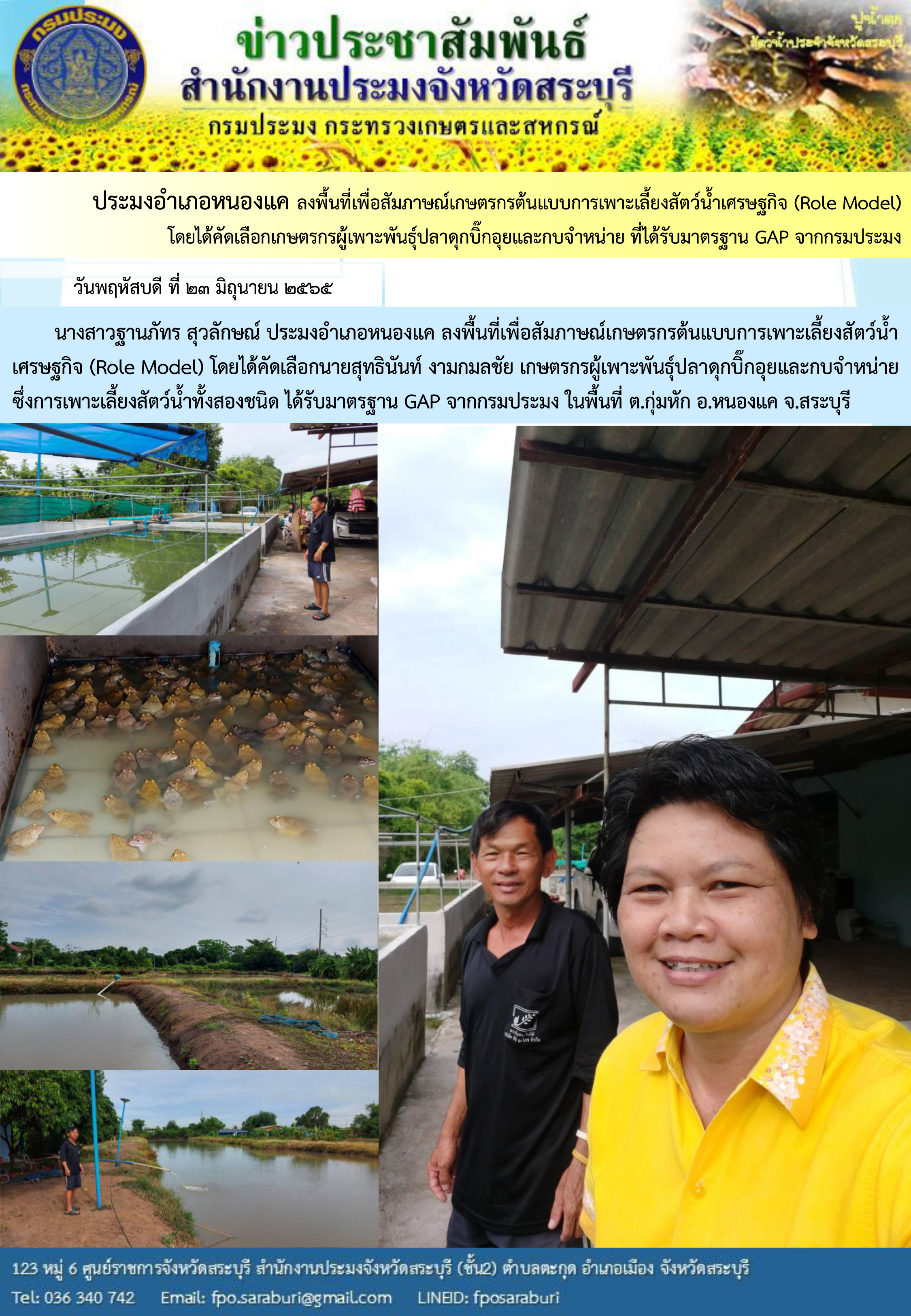 ภารกิจประจำวันที่ 23 มิถุนายน 2565 สำนักงานประมงจังหวัดสระบุรี