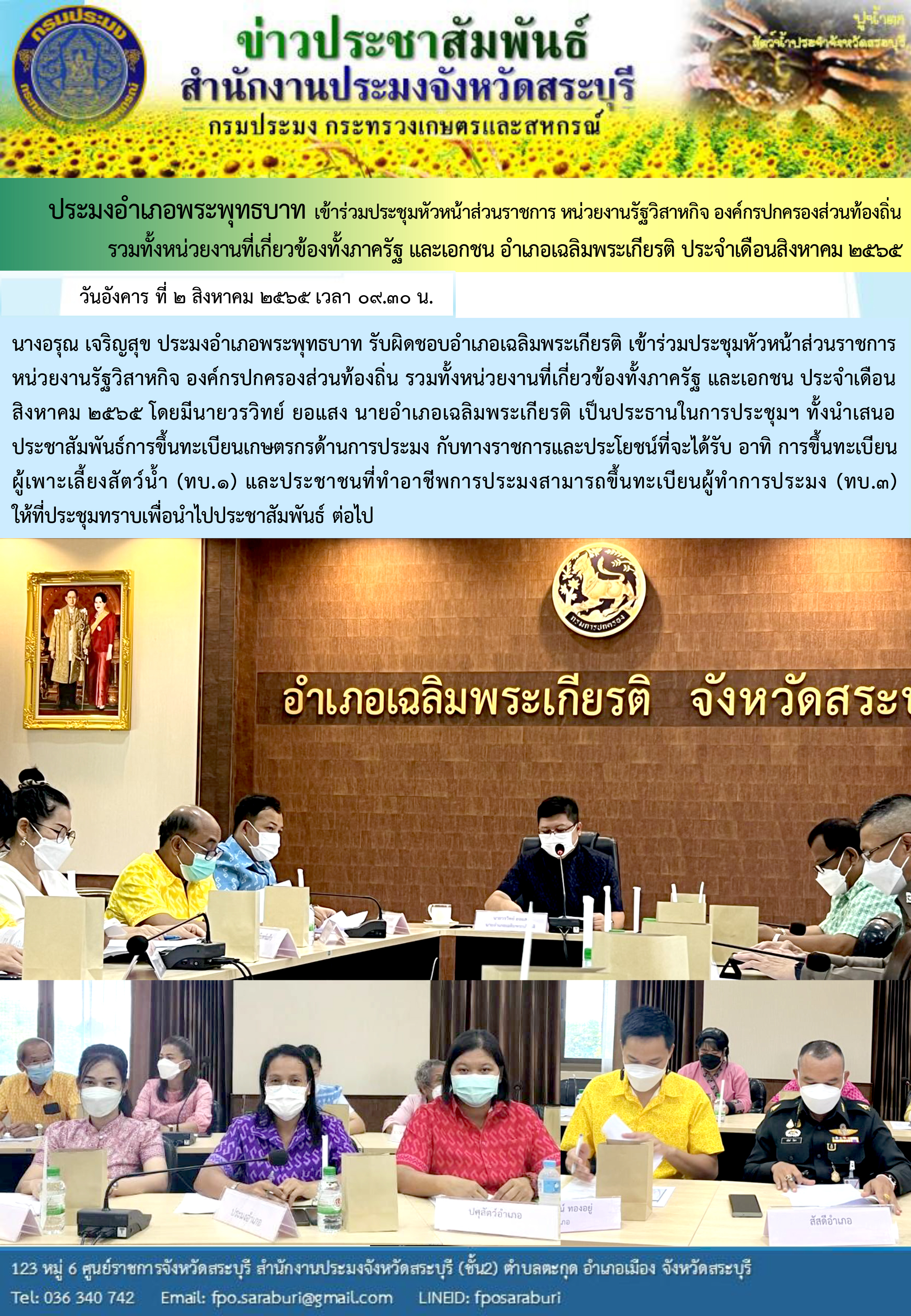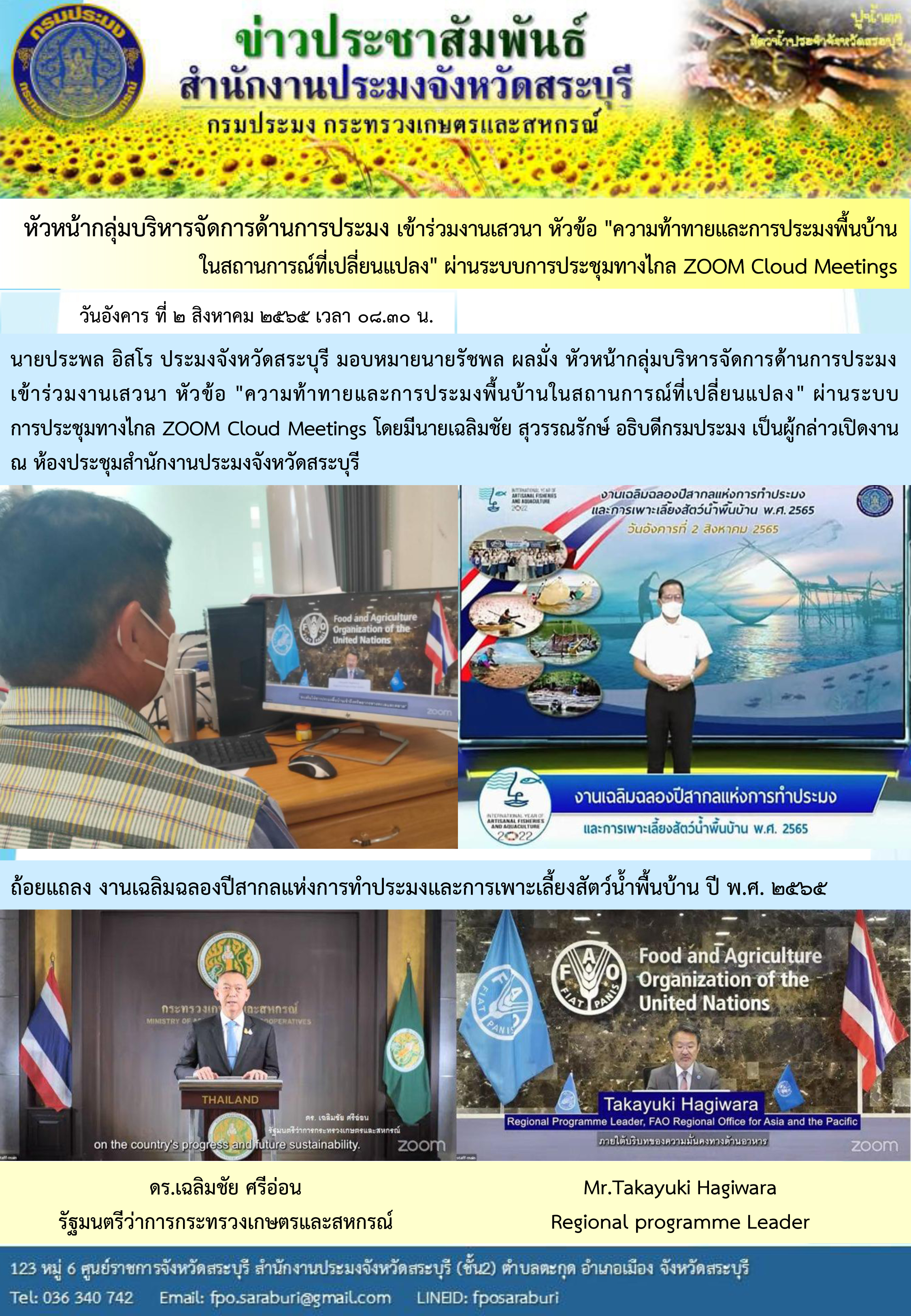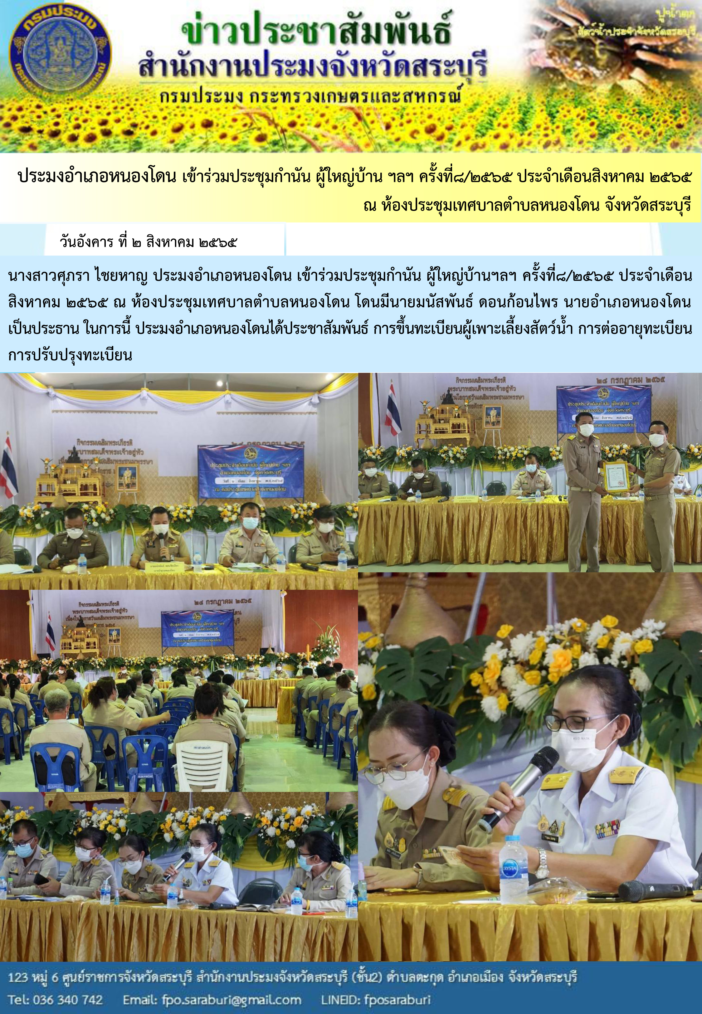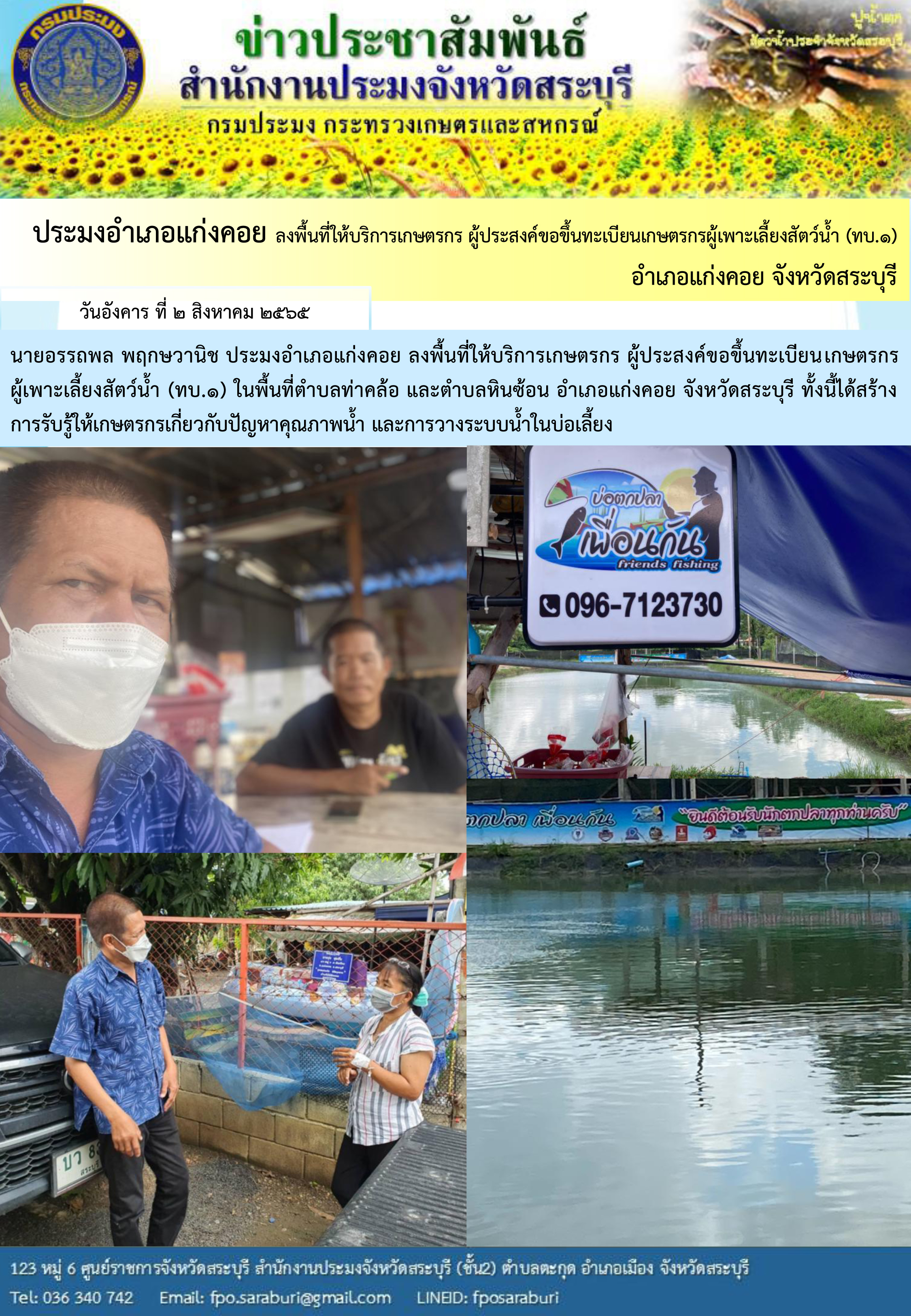 ภารกิจประจำวันที่ 2 สิงหาคม 2565 สำนักงานประมงจังหวัดสระบุรี