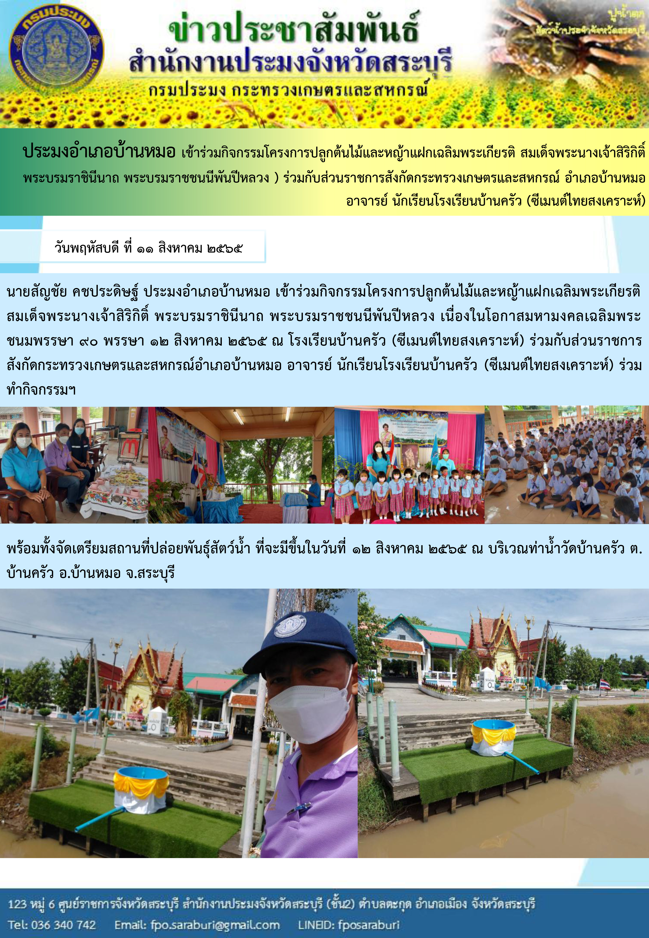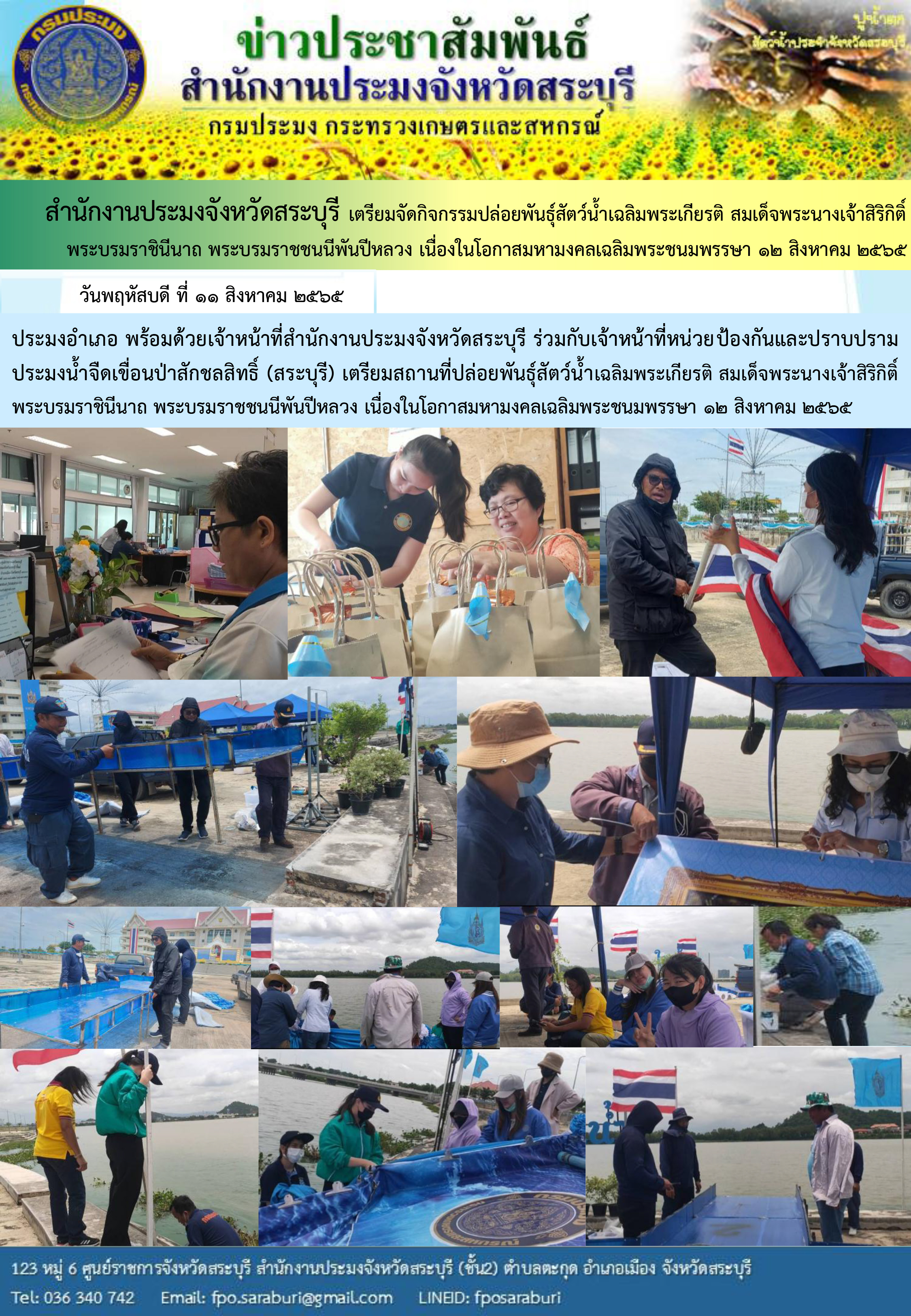 ภารกิจประจำวันที่ 11 สิงหาคม 2565 สำนักงานประมงจังหวัดสระบุรี