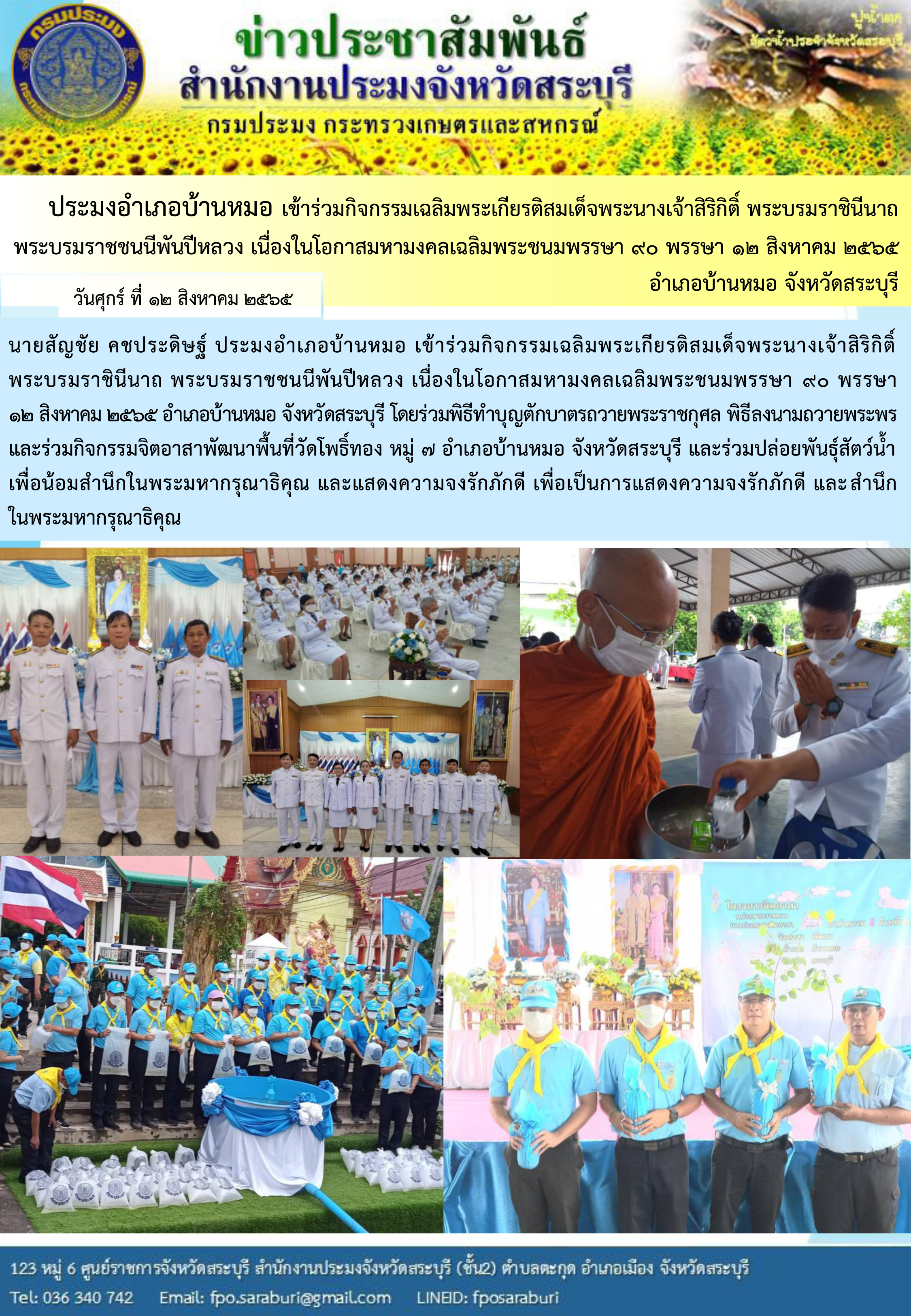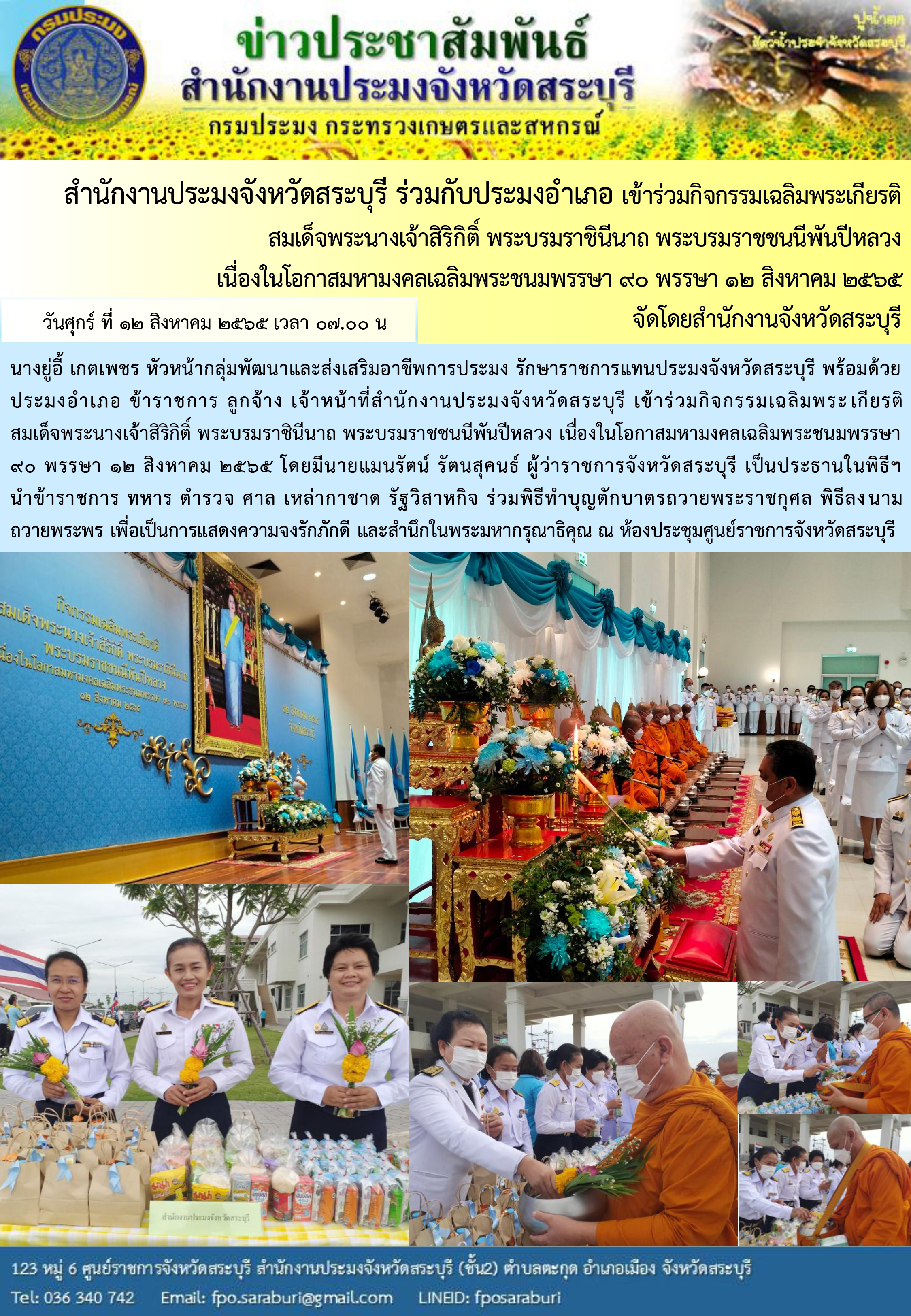 ภารกิจประจำวันที่ 12 สิงหาคม 2565 สำนักงานประมงจังหวัดสระบุรี