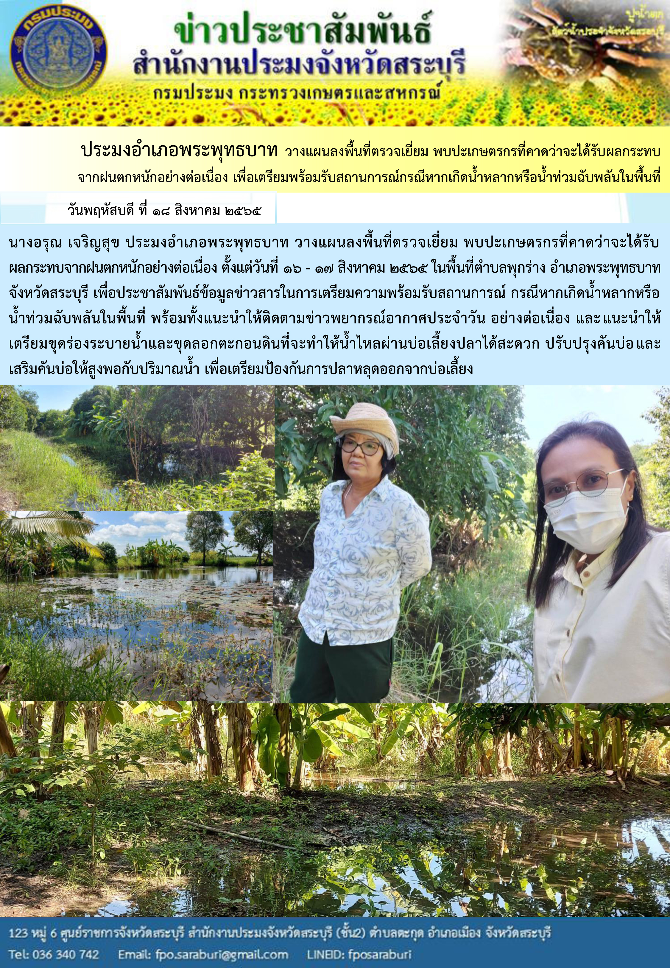 ภารกิจประจำวันที่ 18 สิงหาคม 2565 สำนักงานประมงจังหวัดสระบุรี