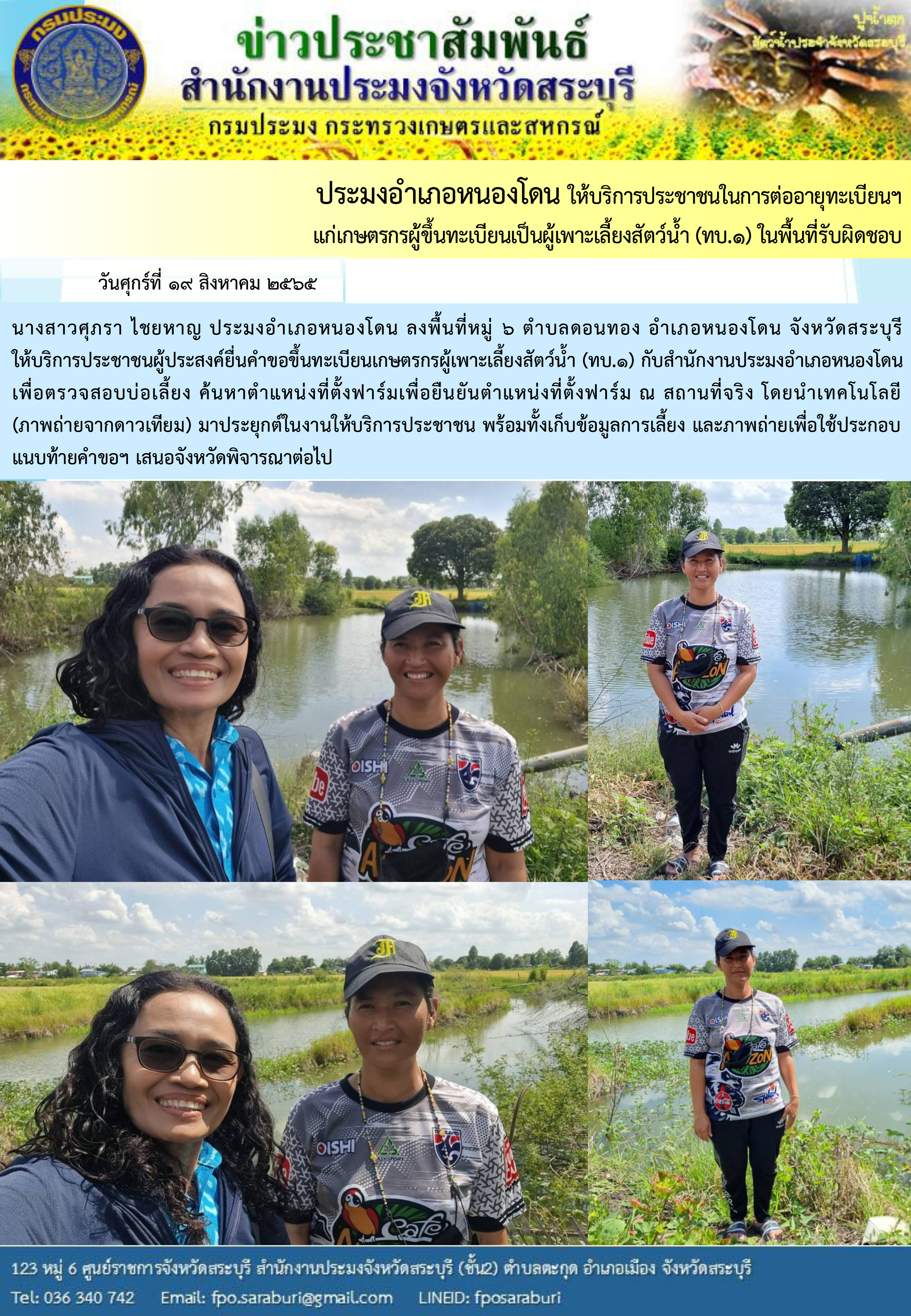 ภารกิจประจำวันที่ 19 สิงหาคม 2565 สำนักงานประมงจังหวัดสระบุรี
