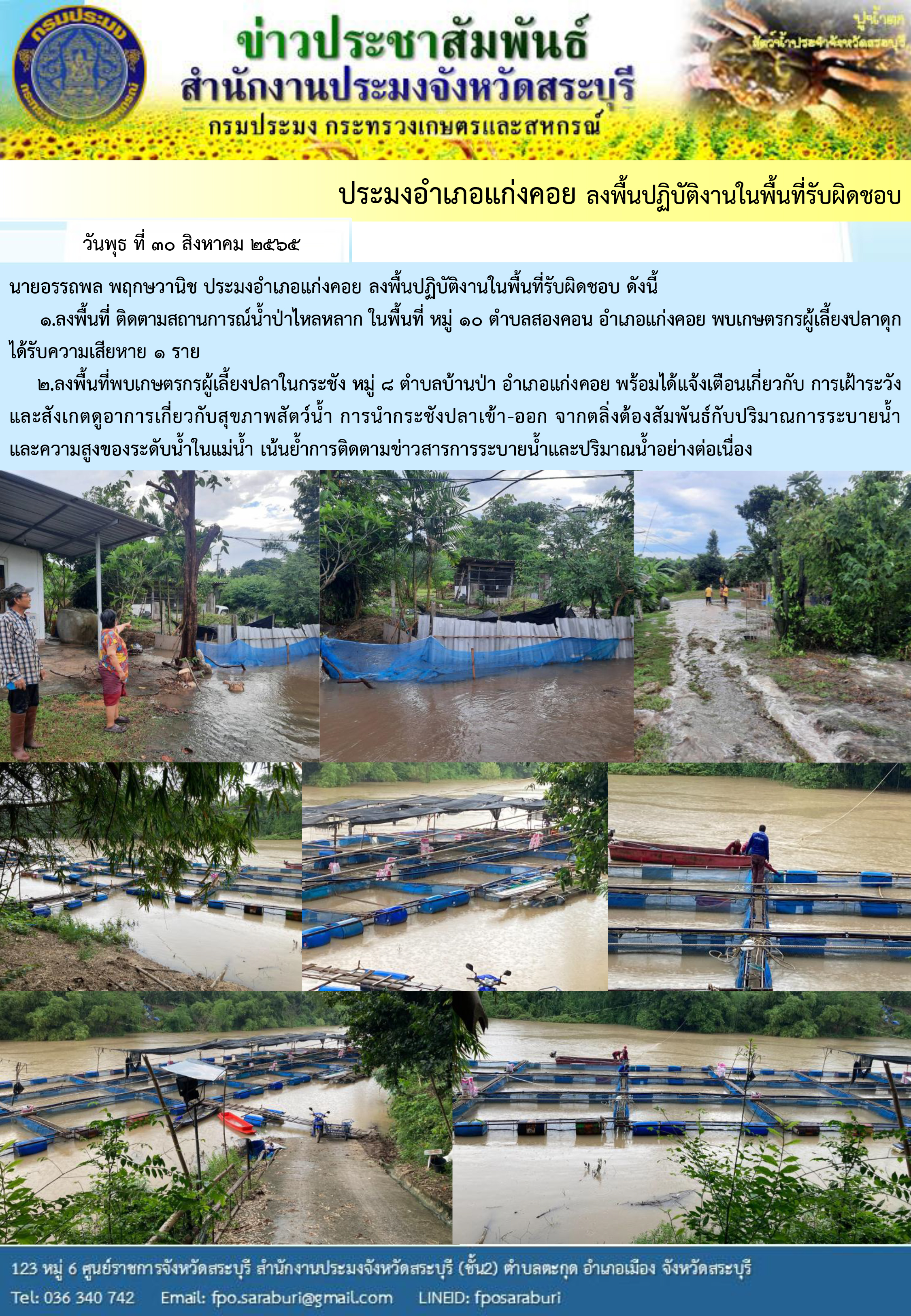 ภารกิจประจำวันที่ 30 สิงหาคม 2565 สำนักงานประมงจังหวัดสระบุรี