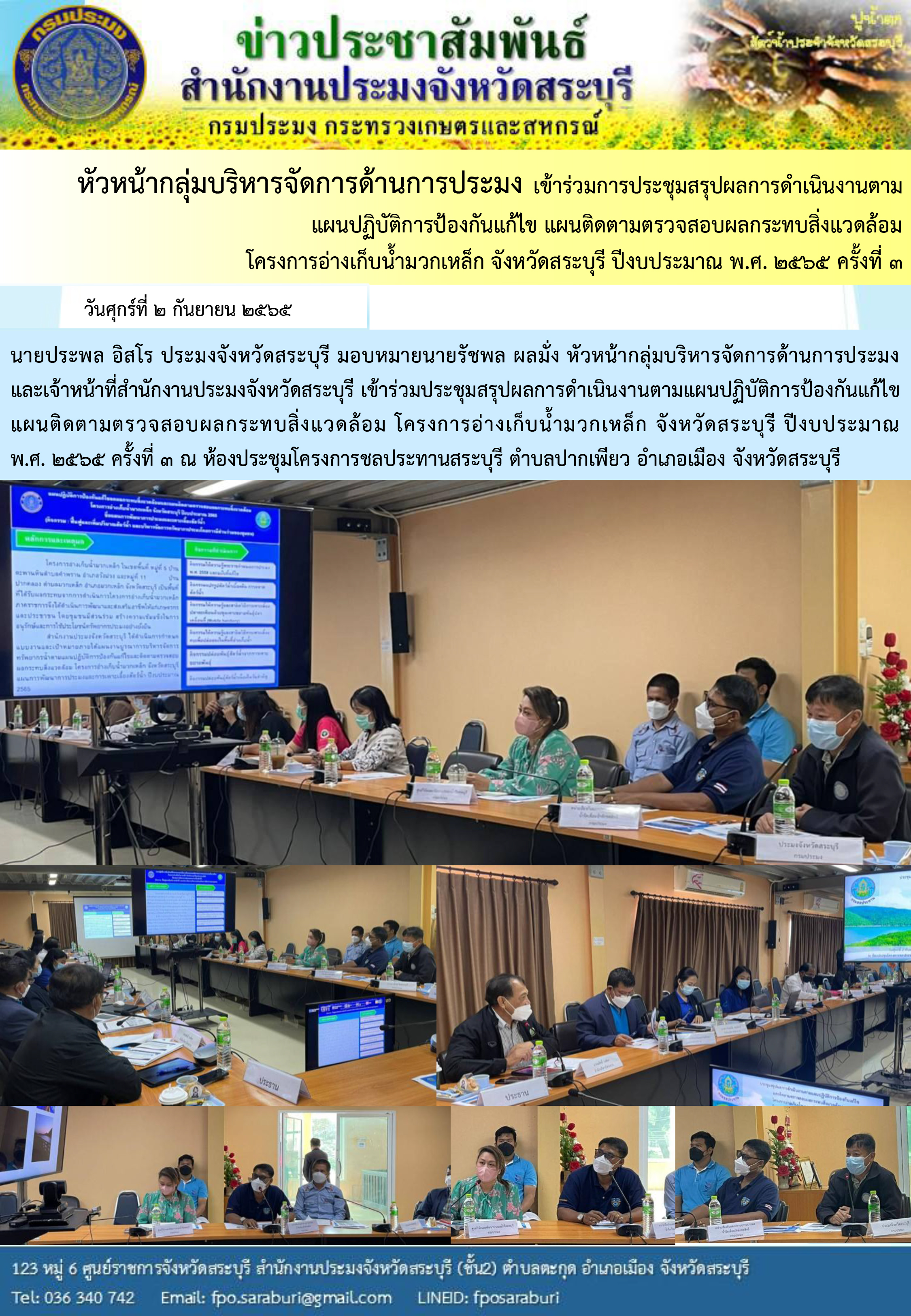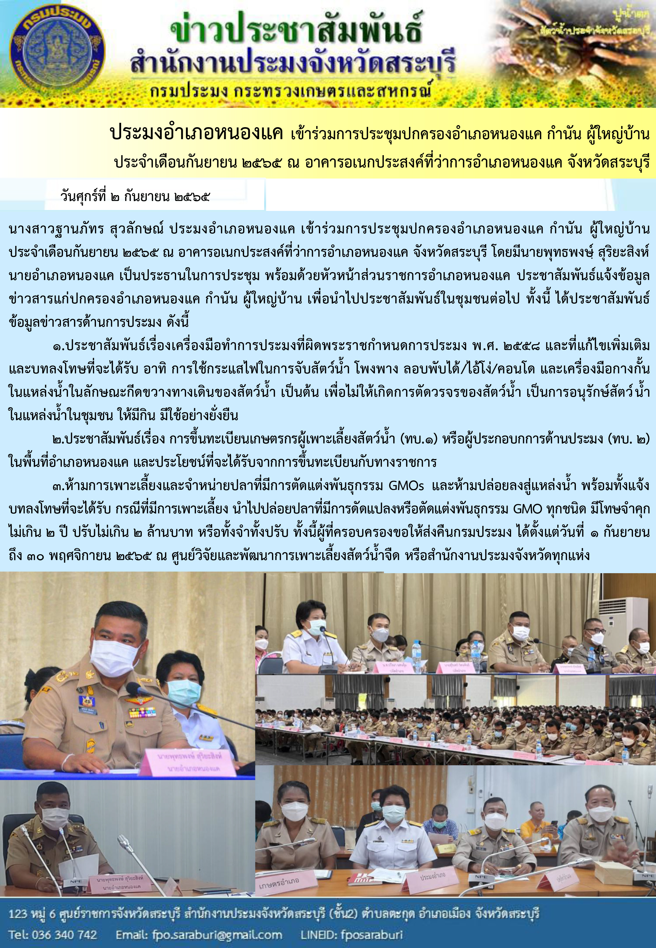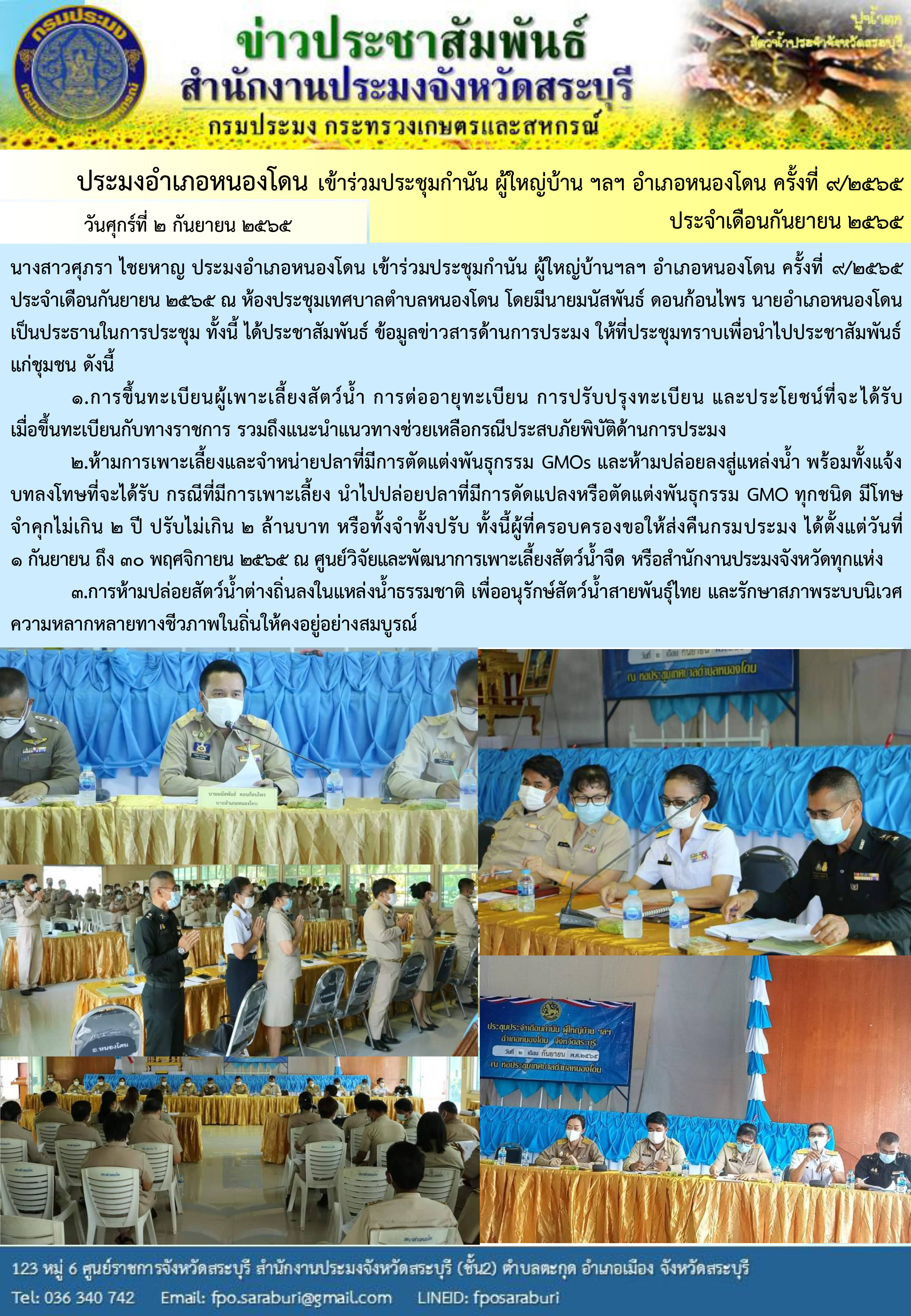ภารกิจประจำวันที่ 2 กันยายน 2565 สำนักงานประมงจังหวัดสระบุรี