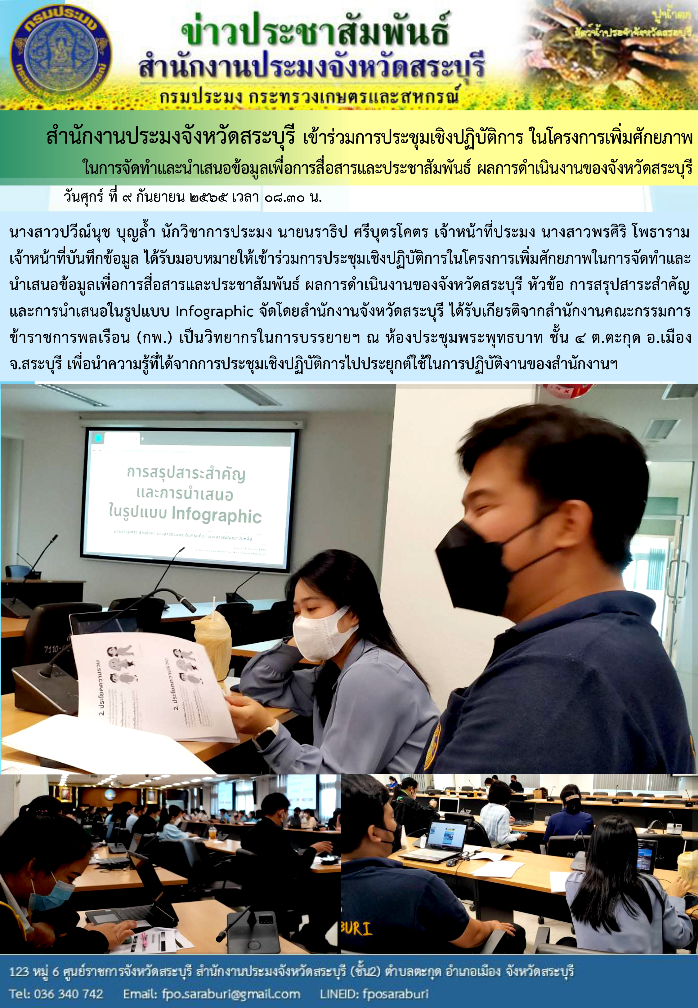 ภารกิจประจำวันที่ 9 กันยายน 2565 สำนักงานประมงจังหวัดสระบุรี..คลิก