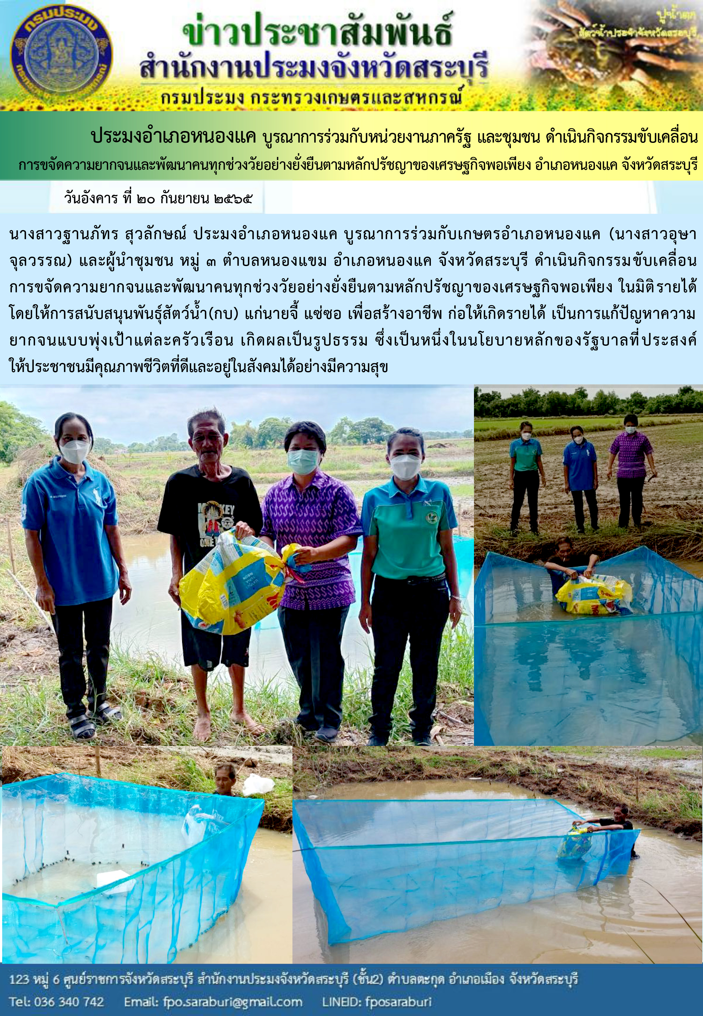 ภารกิจประจำวันที่ 20 กันยายน 2565 สำนักงานประมงจังหวัดสระบุรี