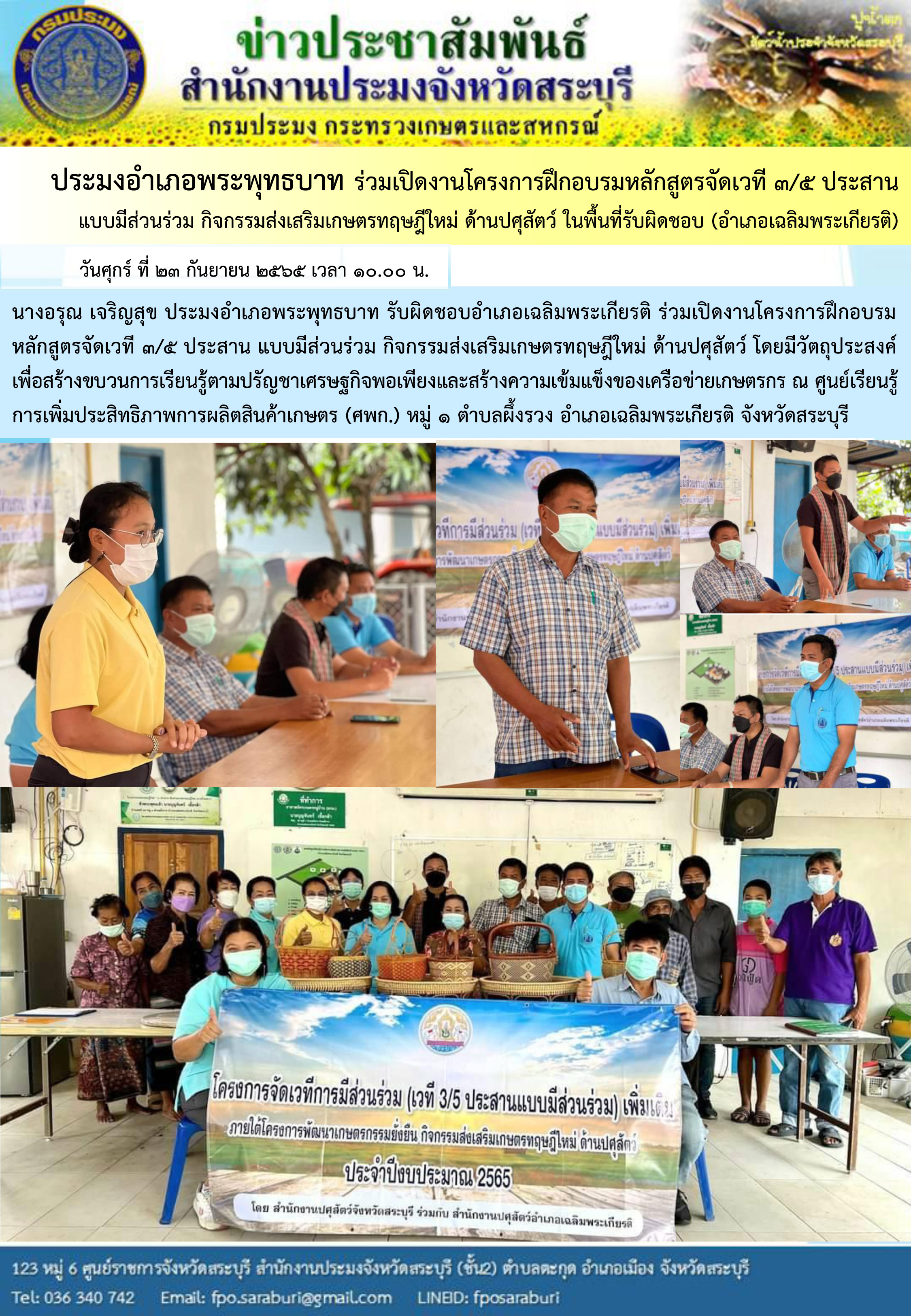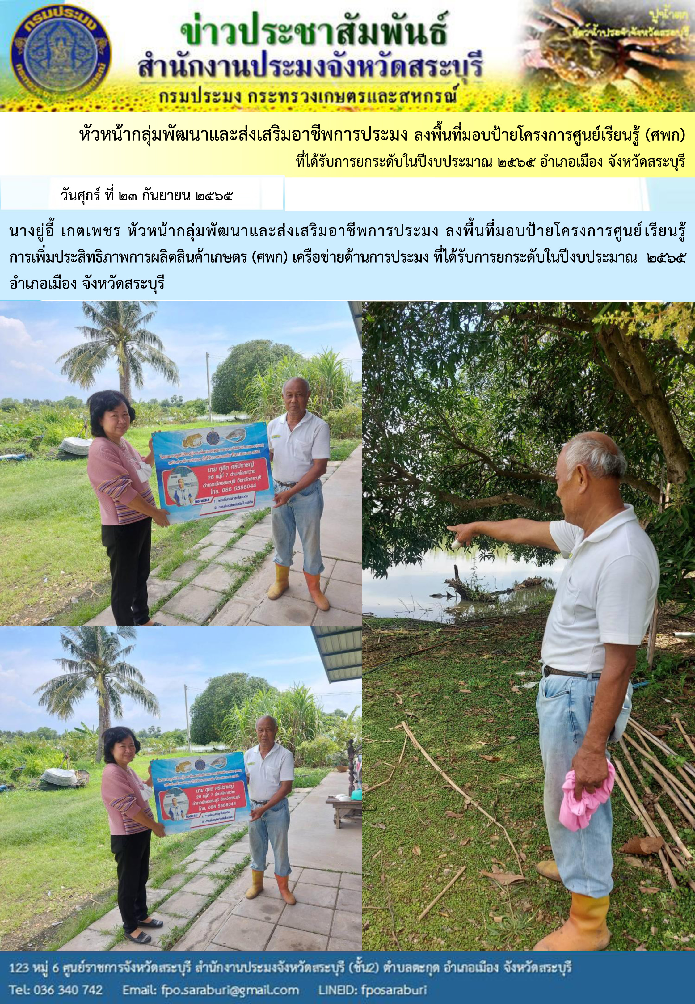 ภารกิจประจำวันที่ 23 กันยายน 2565 สำนักงานประมงจังหวัดสระบุรี