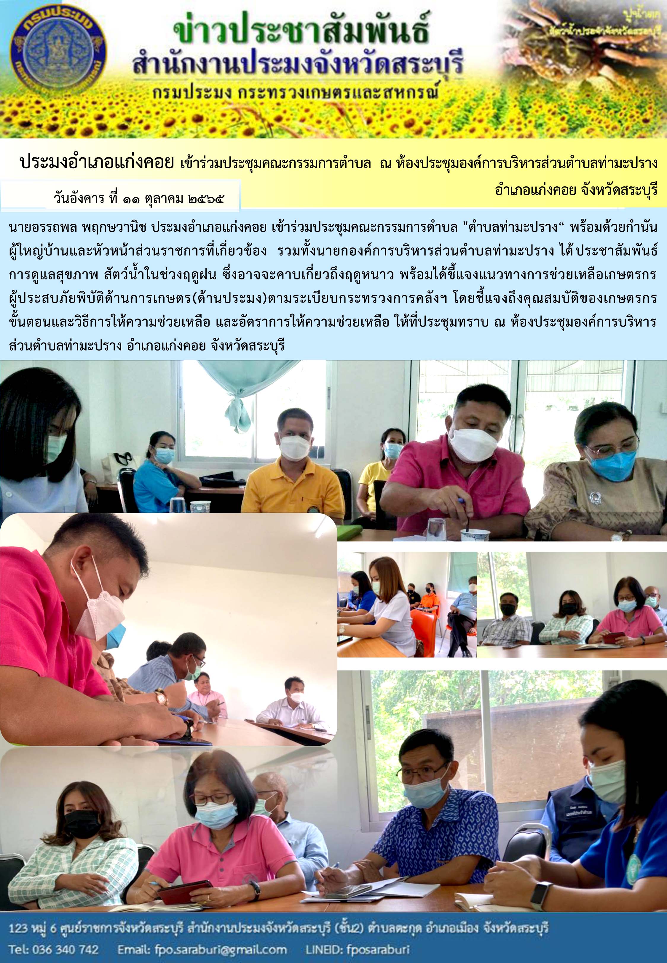 ภารกิจประจำวันที่ 11 ตุลาคม 2565 สำนักงานประมงจังหวัดสระบุรี