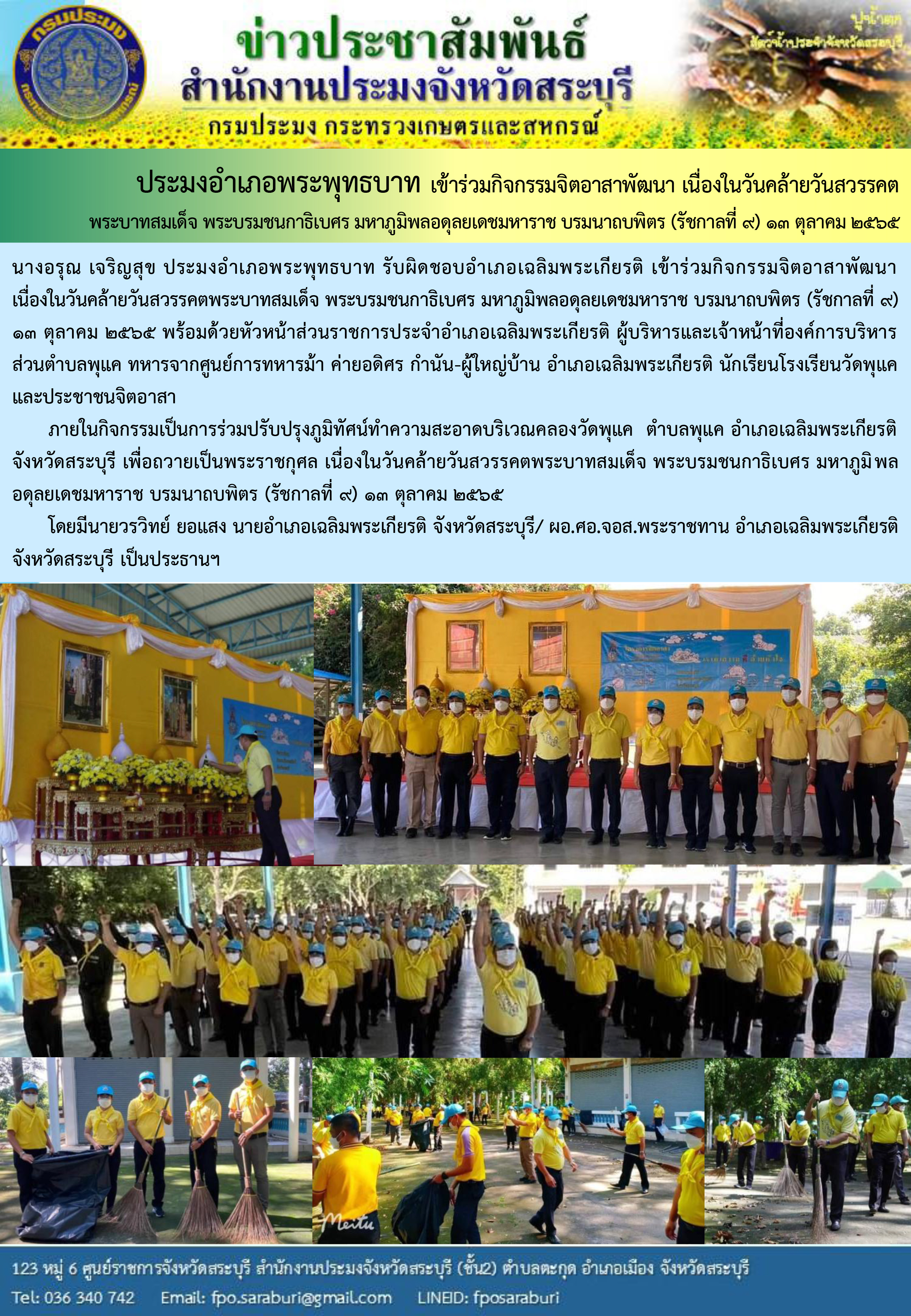ภารกิจประจำวันที่ 12 ตุลาคม 2565 สำนักงานประมงจังหวัดสระบุรี..คลิก