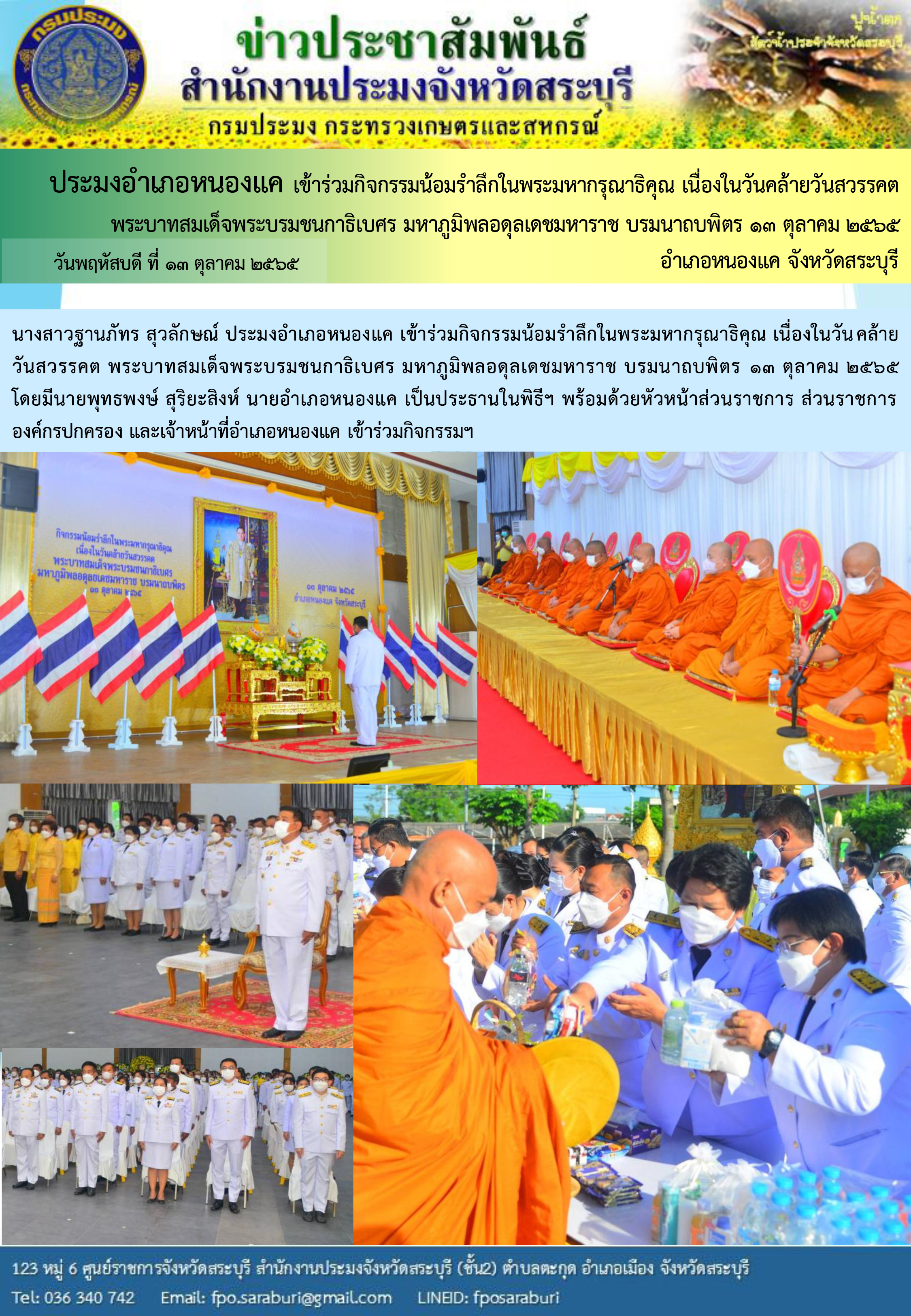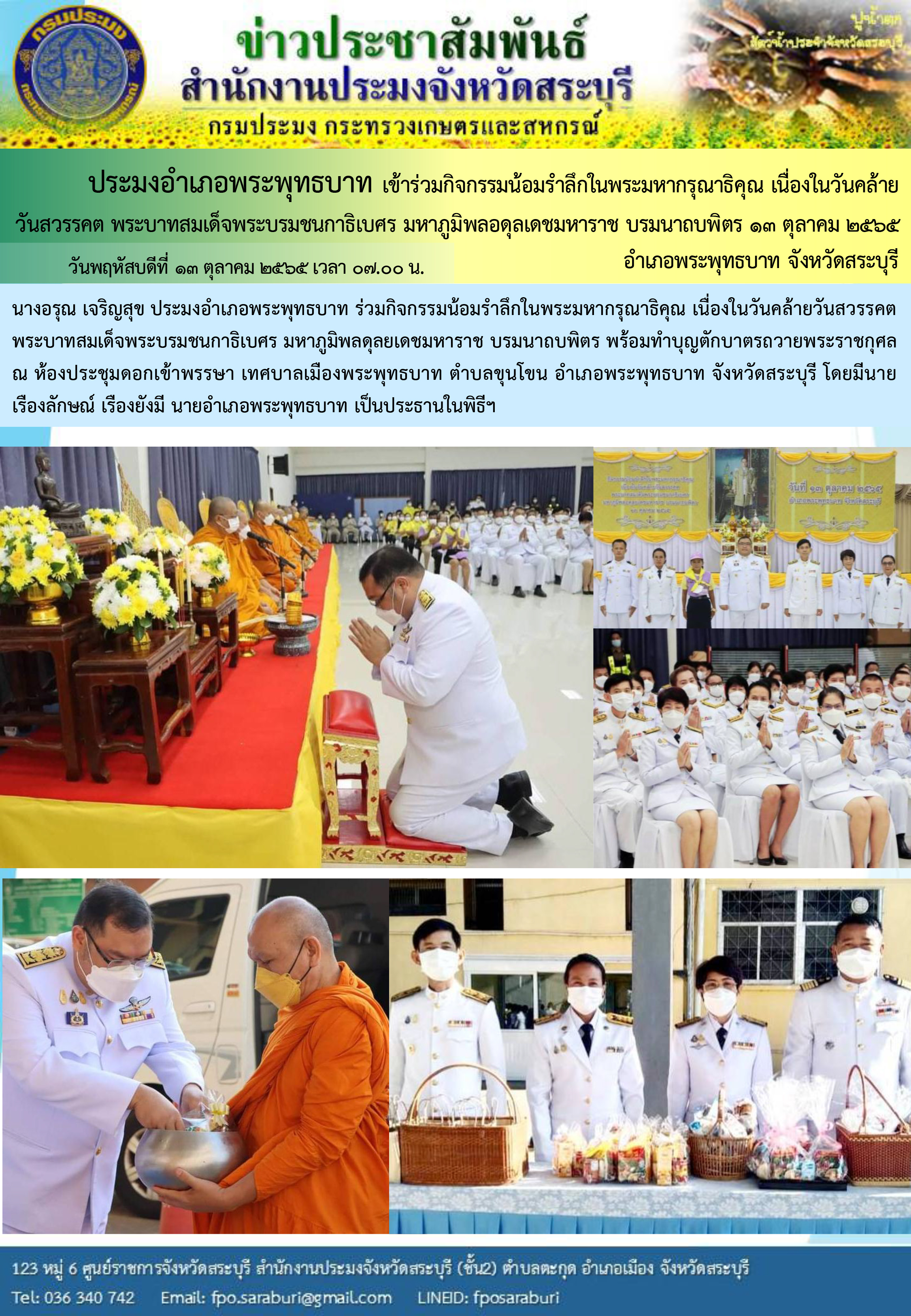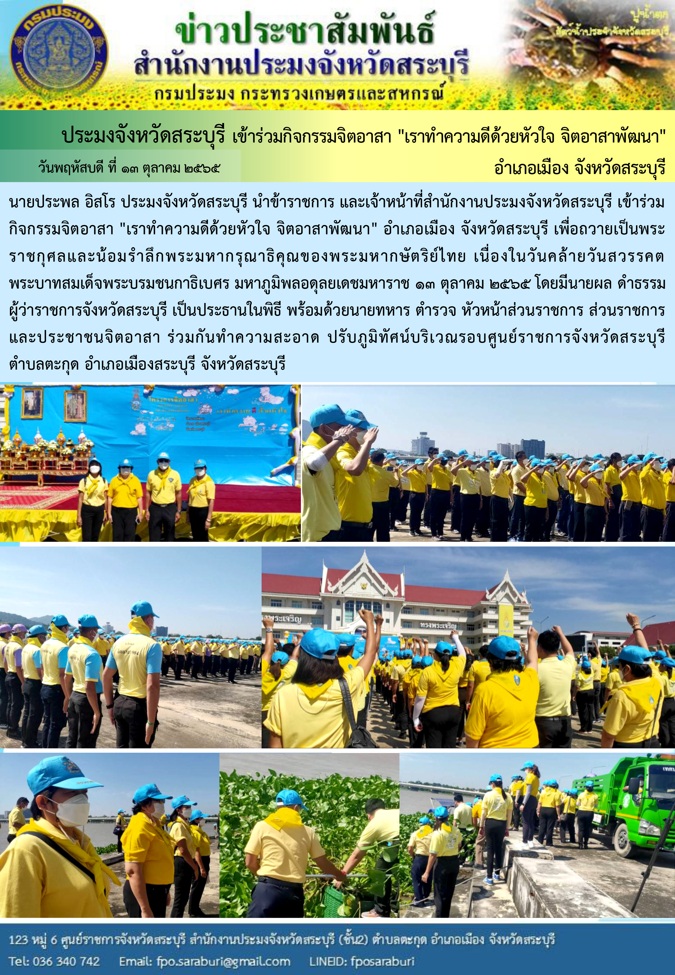 ภารกิจประจำวันที่ 13 ตุลาคม 2565 สำนักงานประมงจังหวัดสระบุรี..คลิก