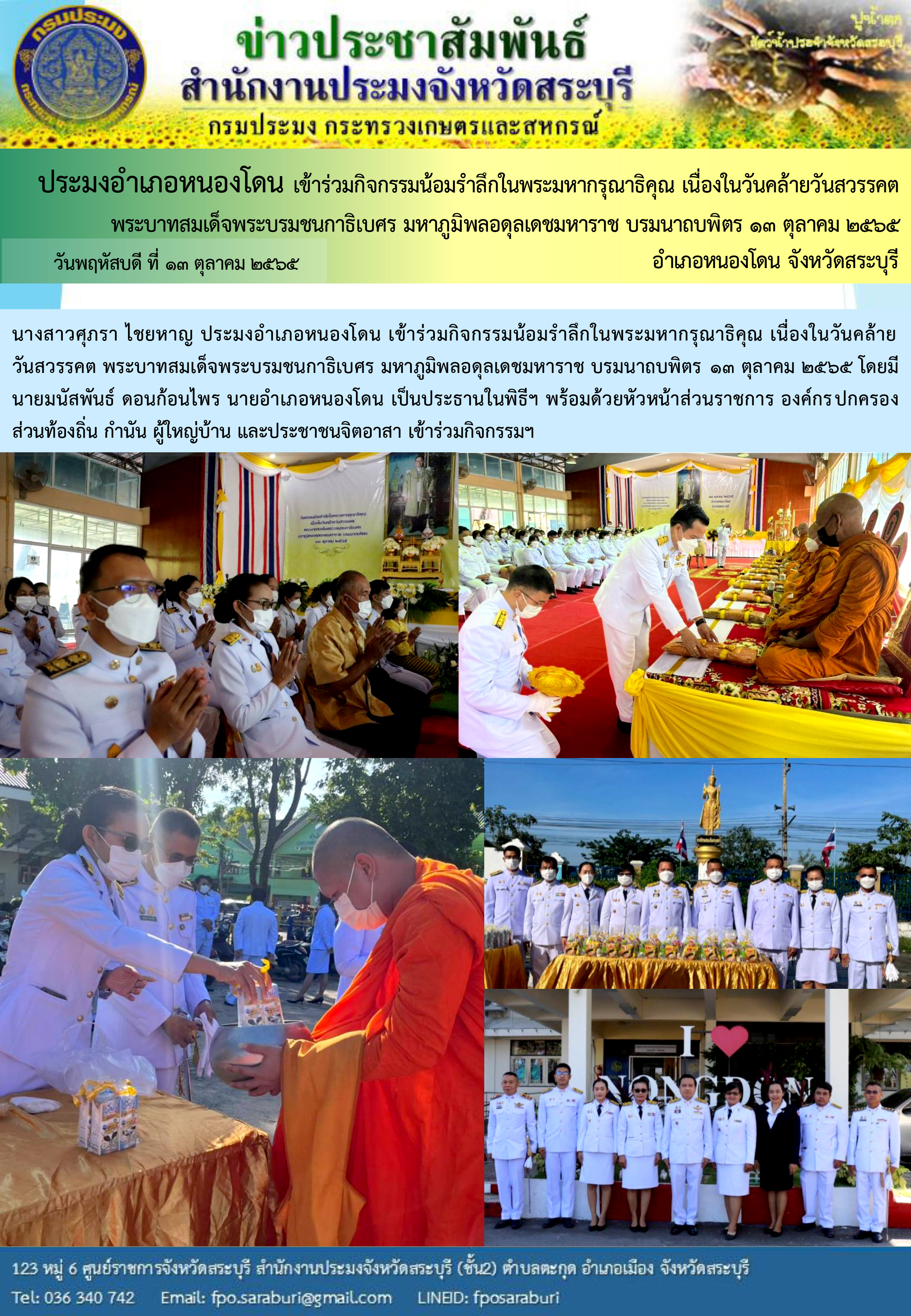 ภารกิจประจำวันที่ 13 ตุลาคม 2565 สำนักงานประมงจังหวัดสระบุรี
