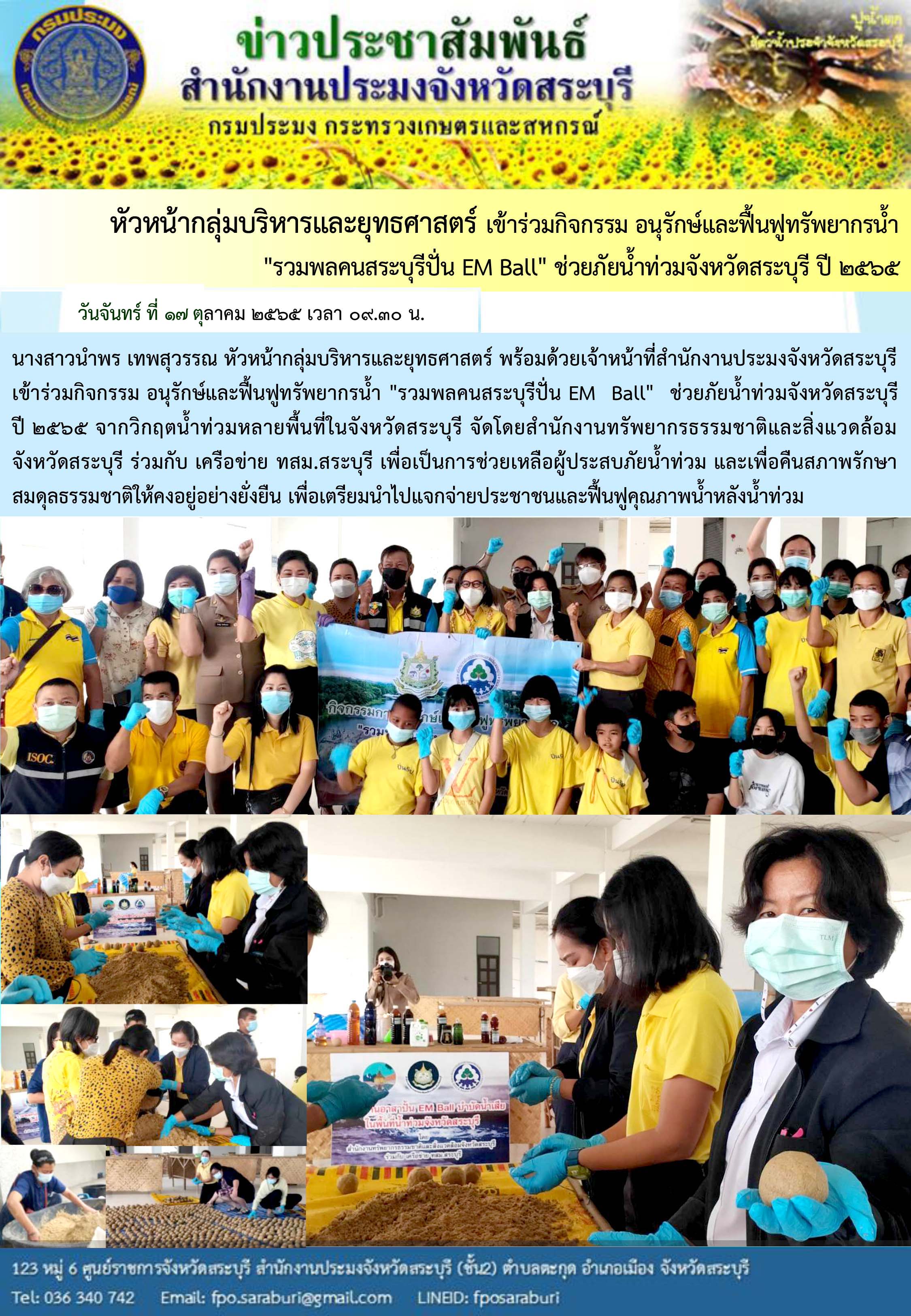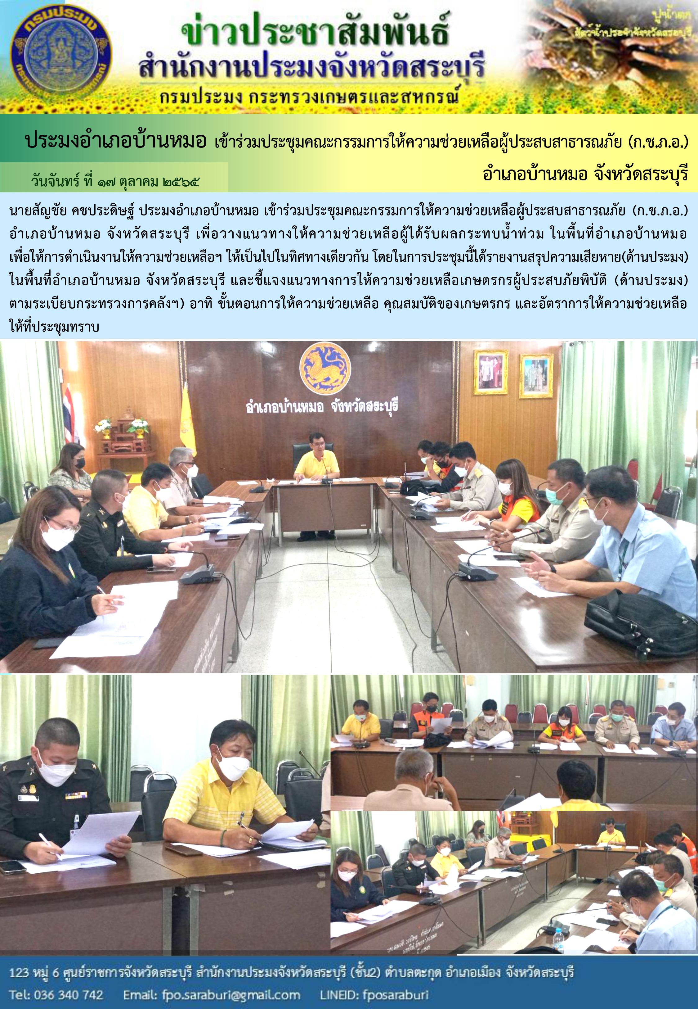 ภารกิจประจำวันที่ 17 ตุลาคม 2565 สำนักงานประมงจังหวัดสระบุรี